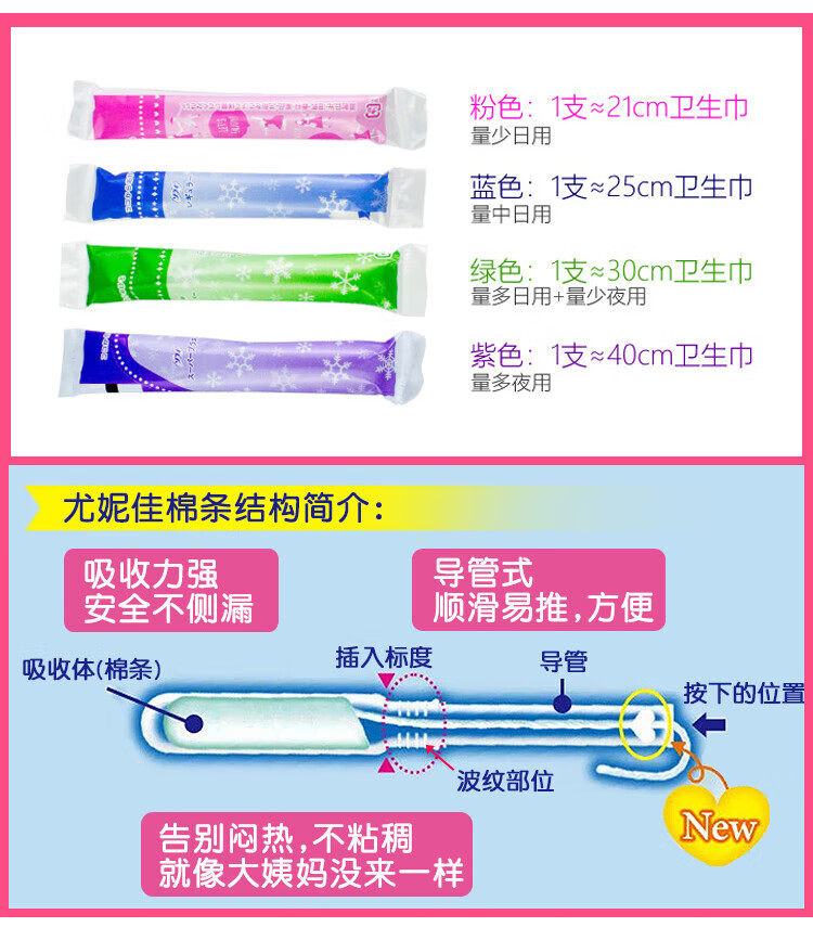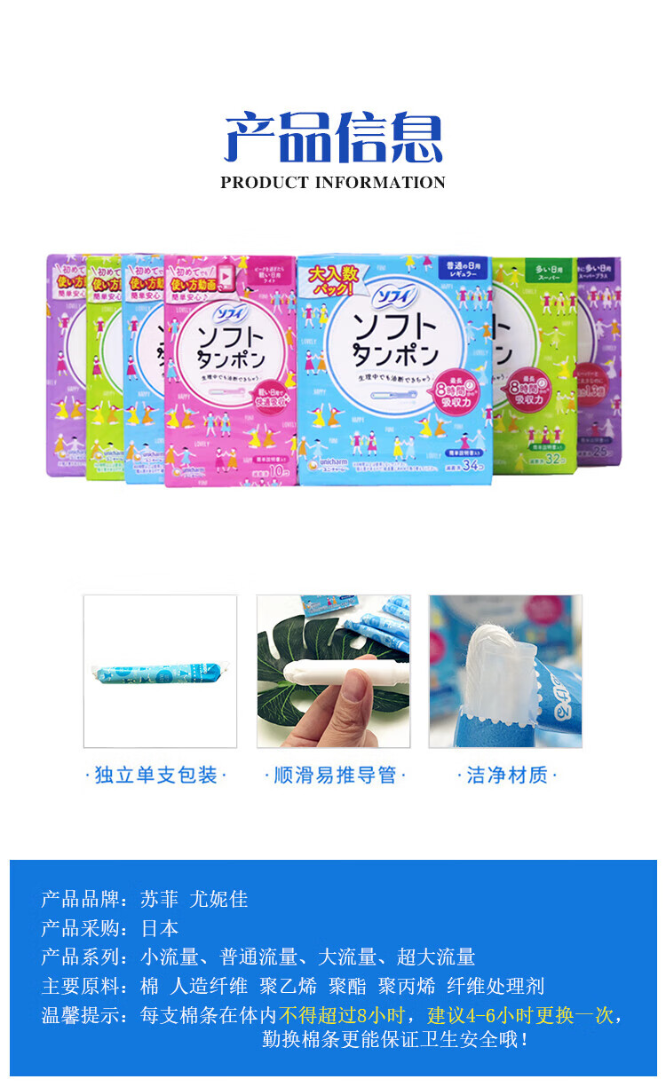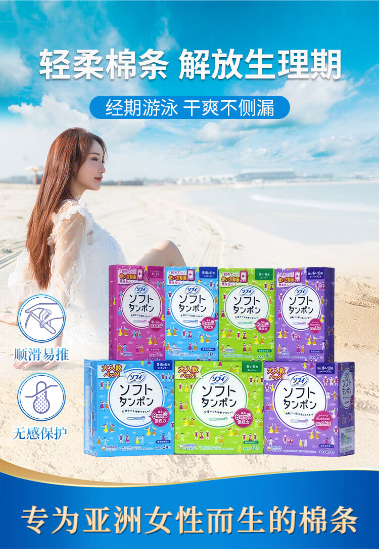 Unicharm Unicharm Long Catheter Tampons, Sensitive Refreshing Tampons, 10 Pack Blue