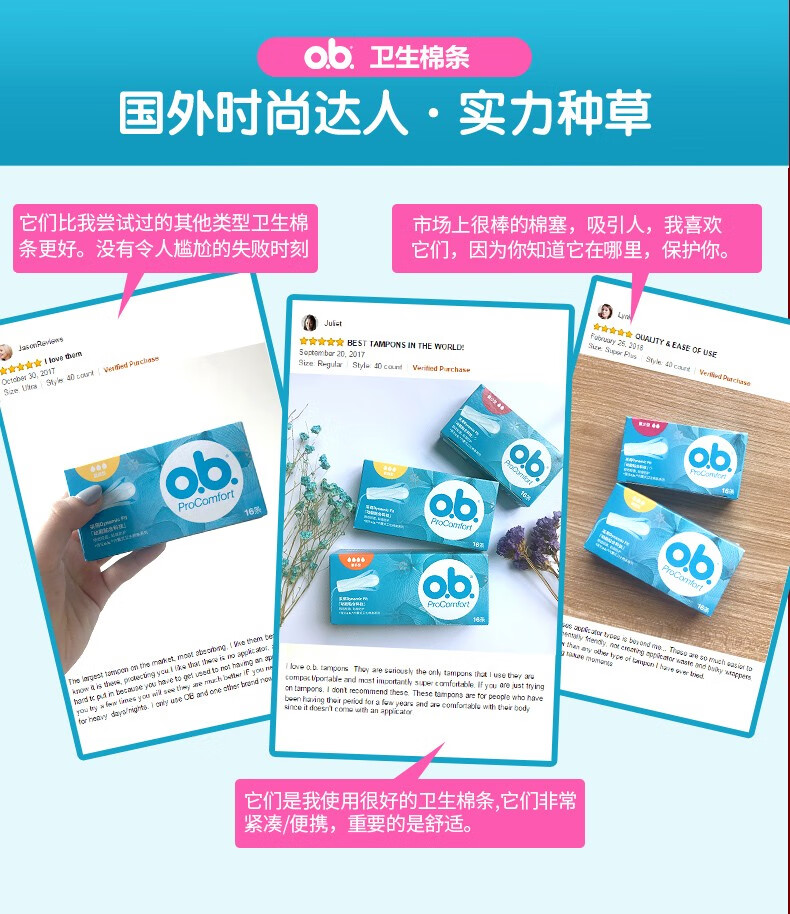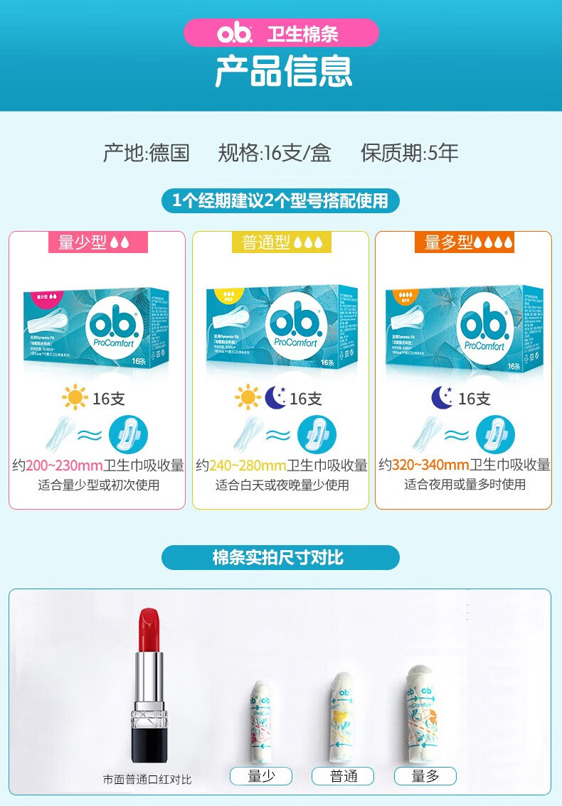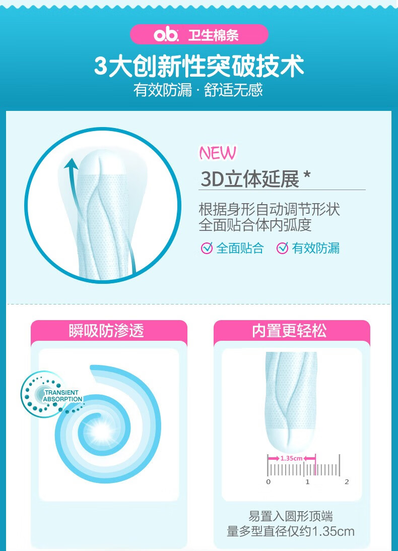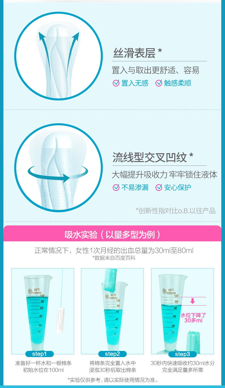 O.b. Imported ob tampons for women, multi-size, built-in finger-in type, day and night use, menstrual cup, swimming cup, ordinary type, 16 pieces * 5 boxes