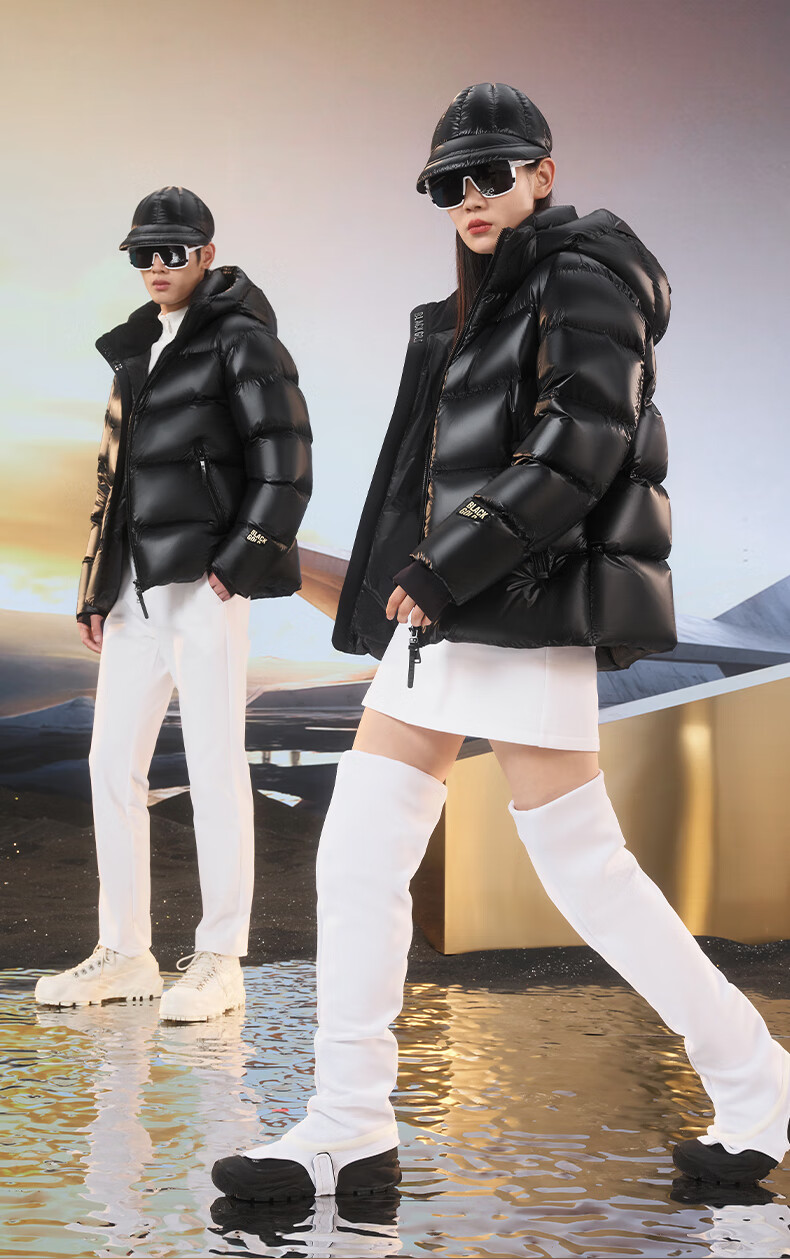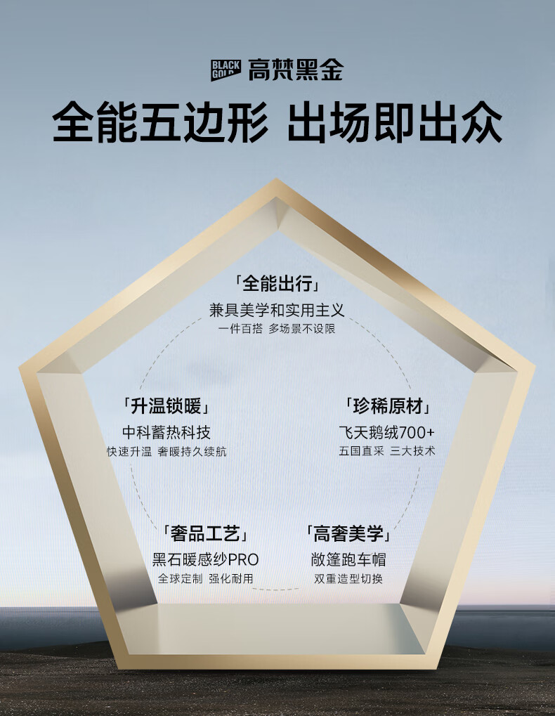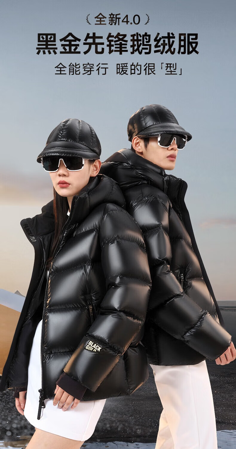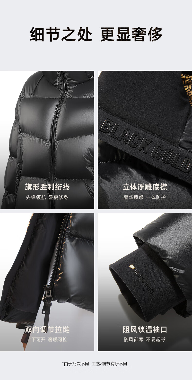 Govan Black Gold Goose Down Jacket Pioneer 4.0 Five-lattice Puff Down Jacket Unisex Short Winter Thick Jacket Premium Sense Black M