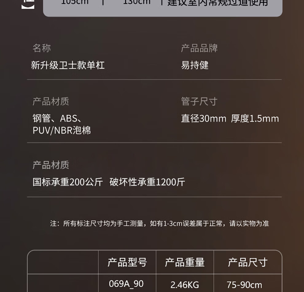 YICHIJIAN horizontal bar indoor pull-up device household horizontal bar indoor swing children's pull-up home fitness gold shield model installation distance 85-110CM