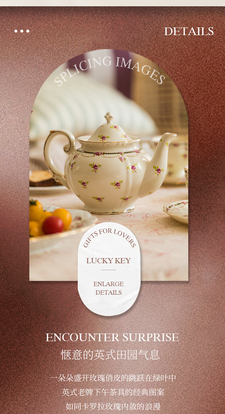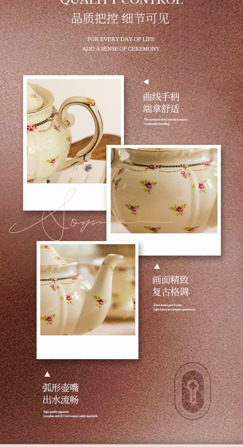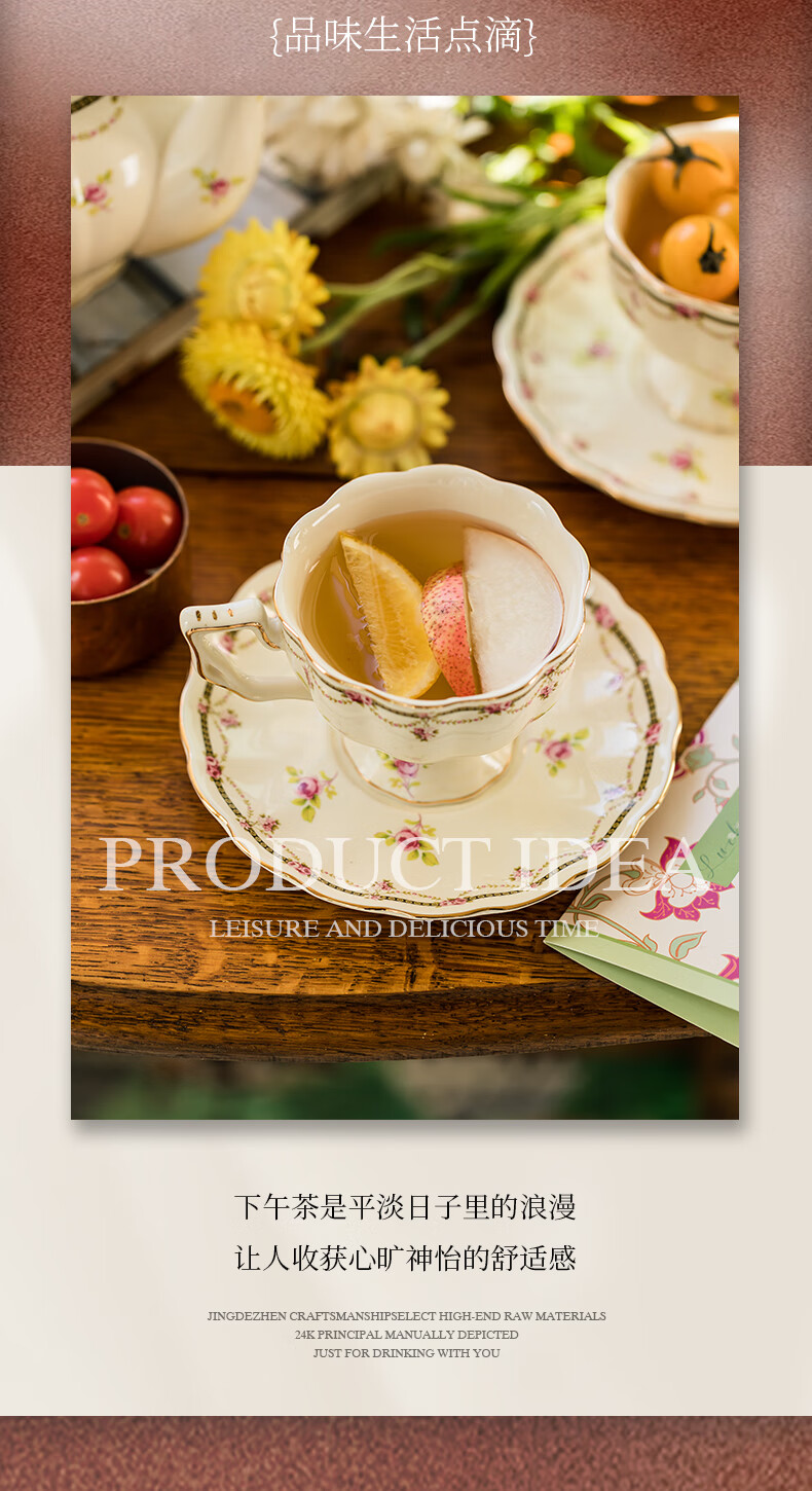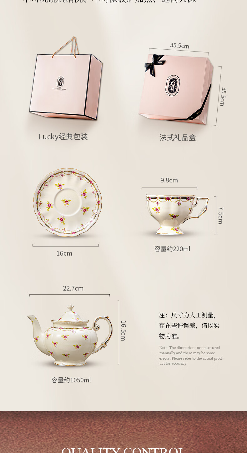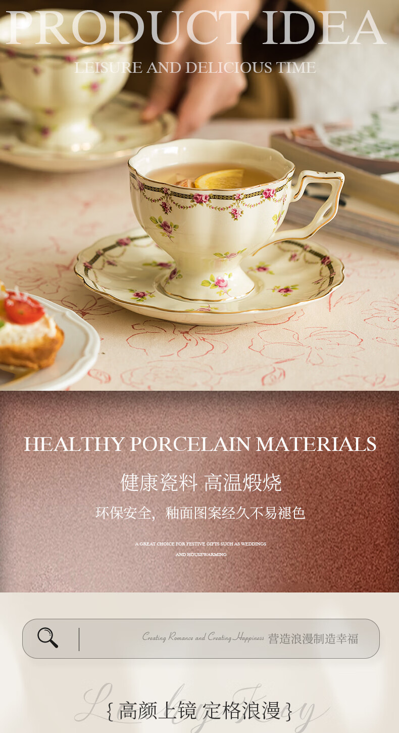 Lucky Key Garland Rose Ceramic Coffee Cup and Saucer Set High-end Afternoon Tea Set Cup Gift Box Housewarming and Wedding Gift Garland Rose-1 Pot 2 Cups and Saucers-Romantic Pink Gift Box