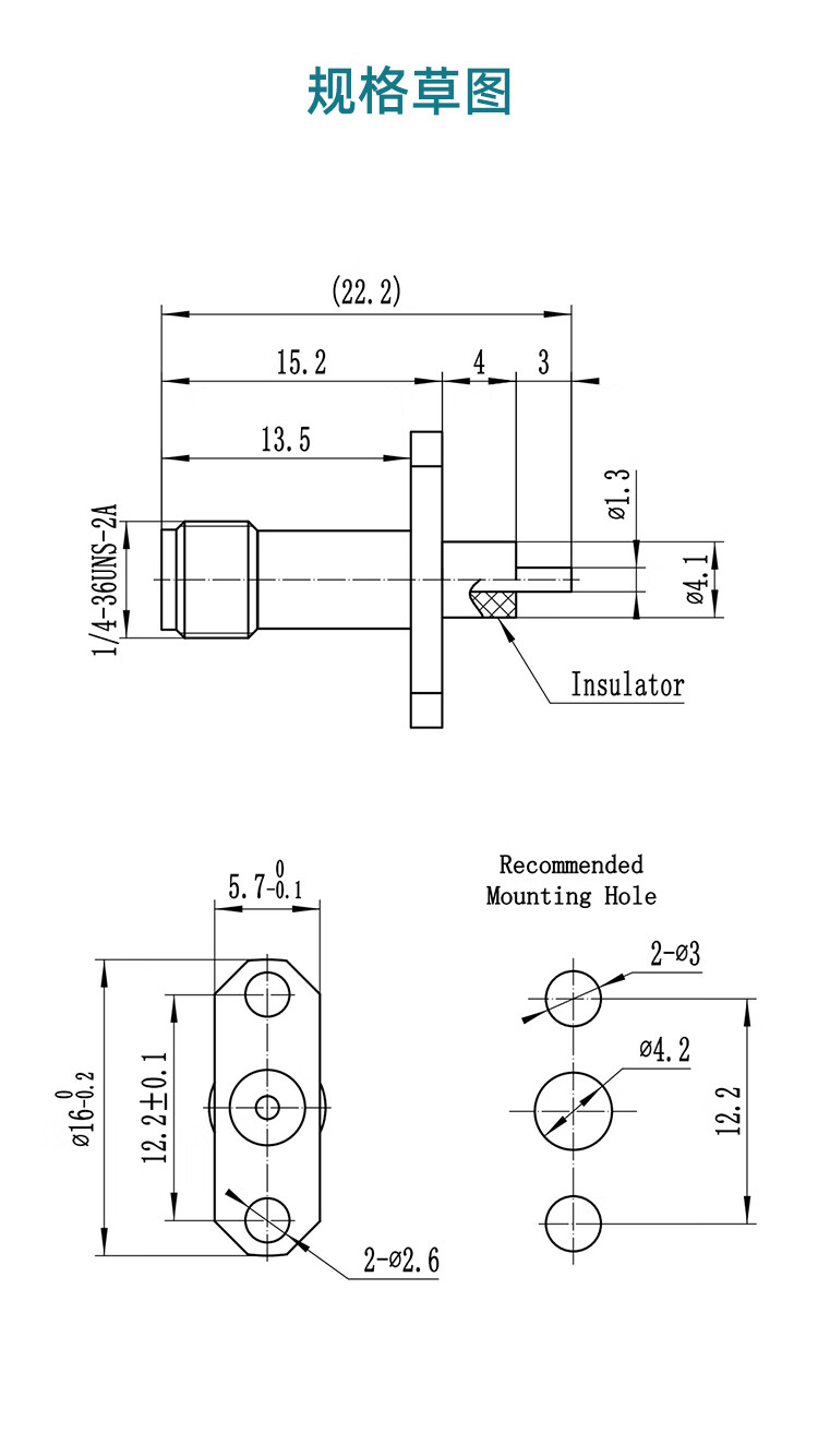 XINQY Xinqiyuan SMA RF coaxial connector 2-hole flange KFD microstrip test socket DC-6GHz extended conductor batch 12/piece (minimum order of 50 pieces)