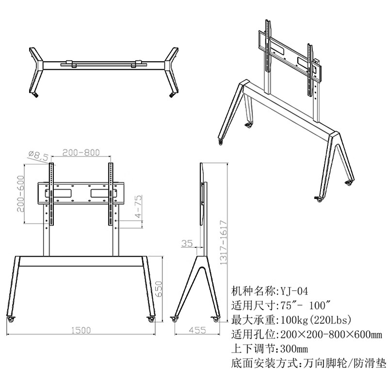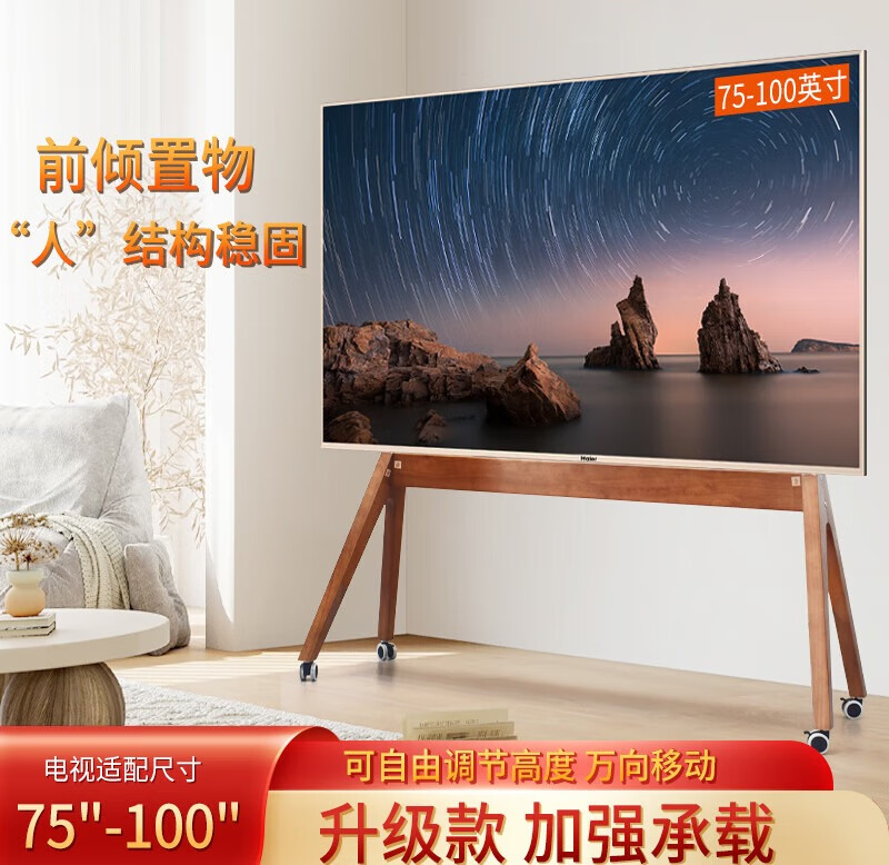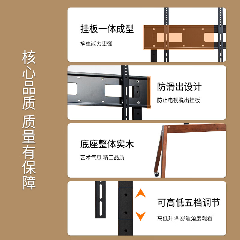 CASVET TV stand 43-75 inches TV floor stand 60-100 inches mobile stand solid wood large load-bearing medieval style household floor stand (including home installation) walnut color YJ02 universal 43-75 inches