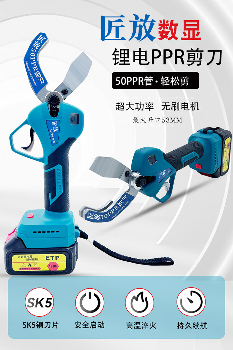 Jiangfang 50PPR electric pipe cutter water pipe quick cutter handheld lithium battery professional fast labor-saving pipe cutter scissors 68FV6.0 dual battery 1 charge