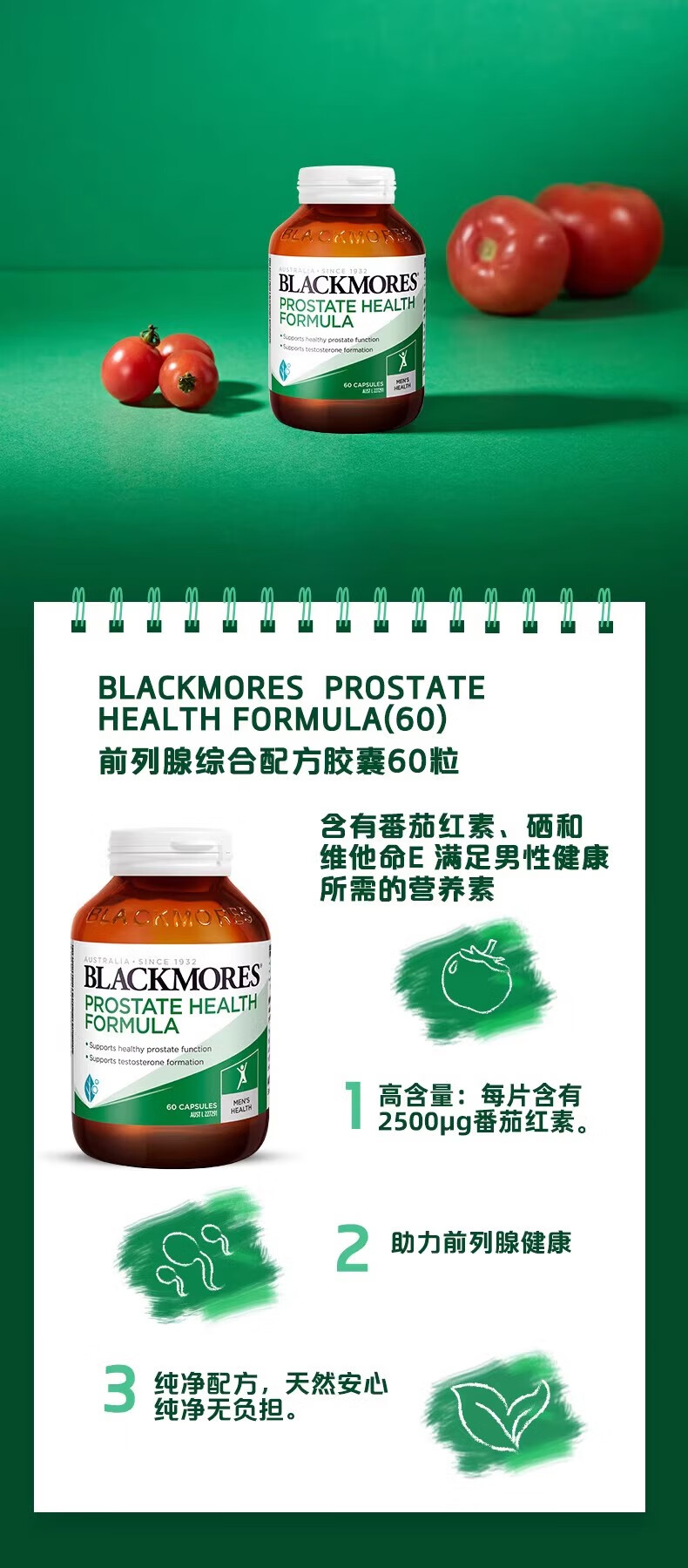 Blackmores Australia Jiabao Lycopene Saw Palmetto Progesterone Tablets 60 Tablets Men's Pregnancy Preparation Selenium Vitamin E