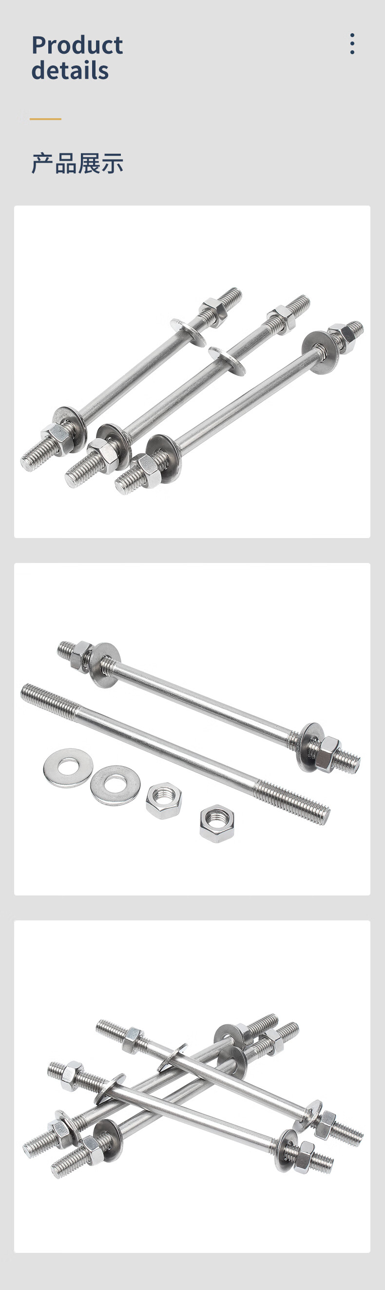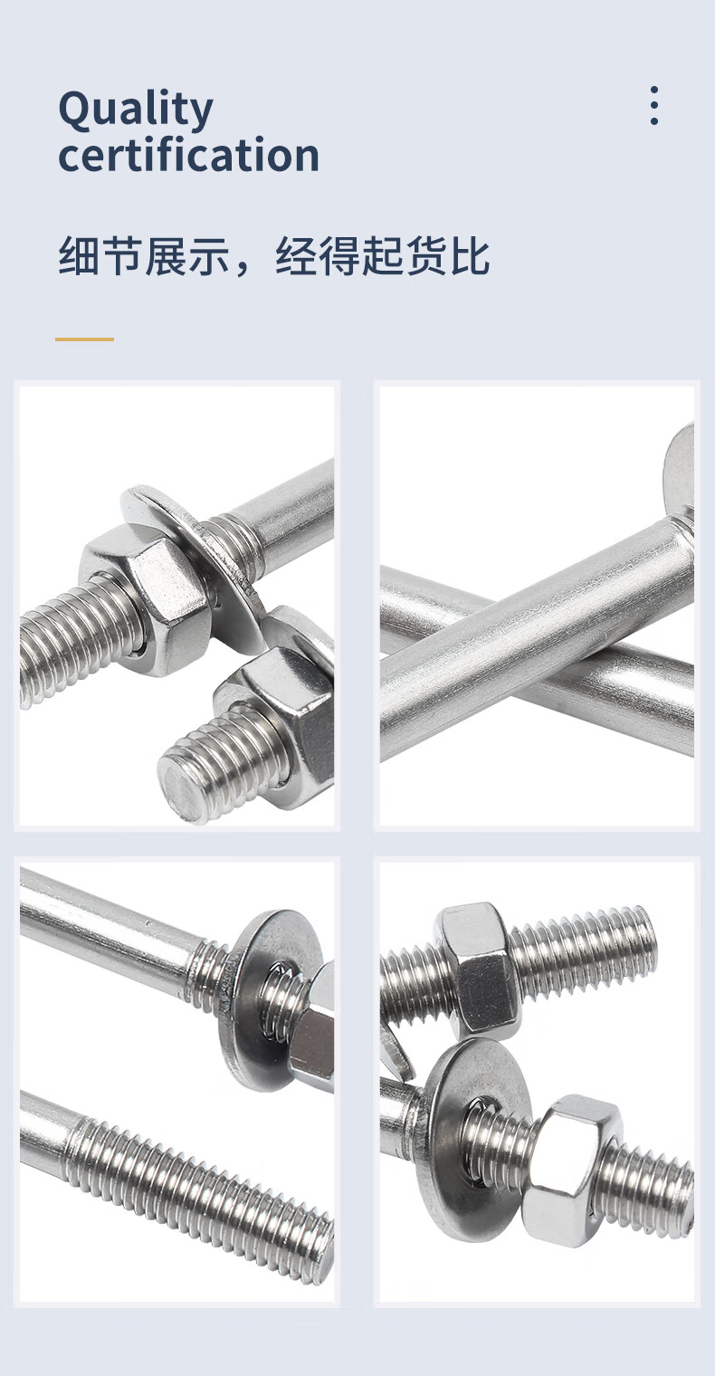Guwanji 304 stainless steel wall screw nut set extended stud bolt through screw nut nut screw collection M6x250 2 sets