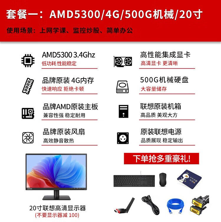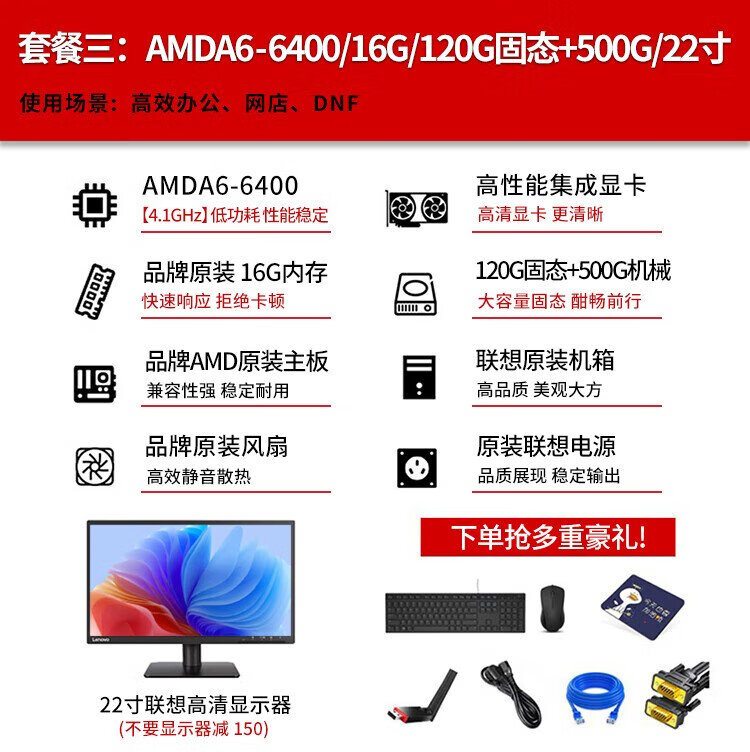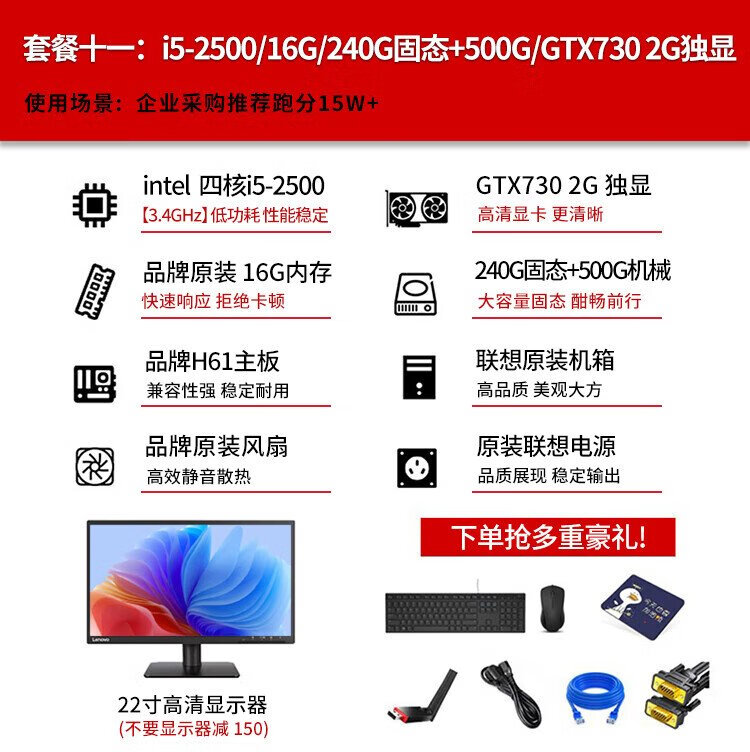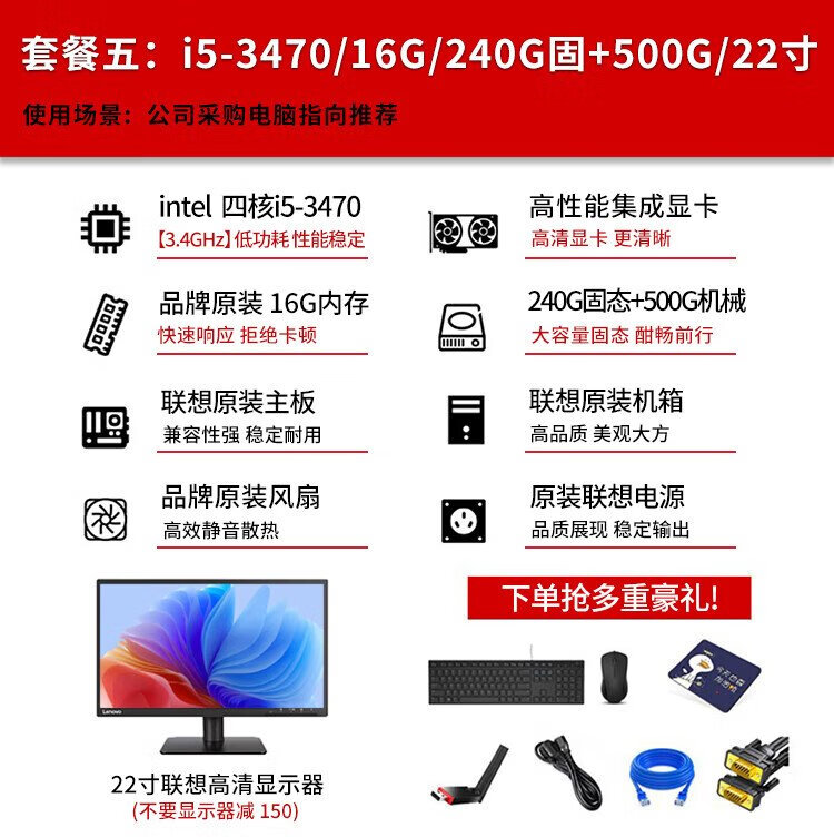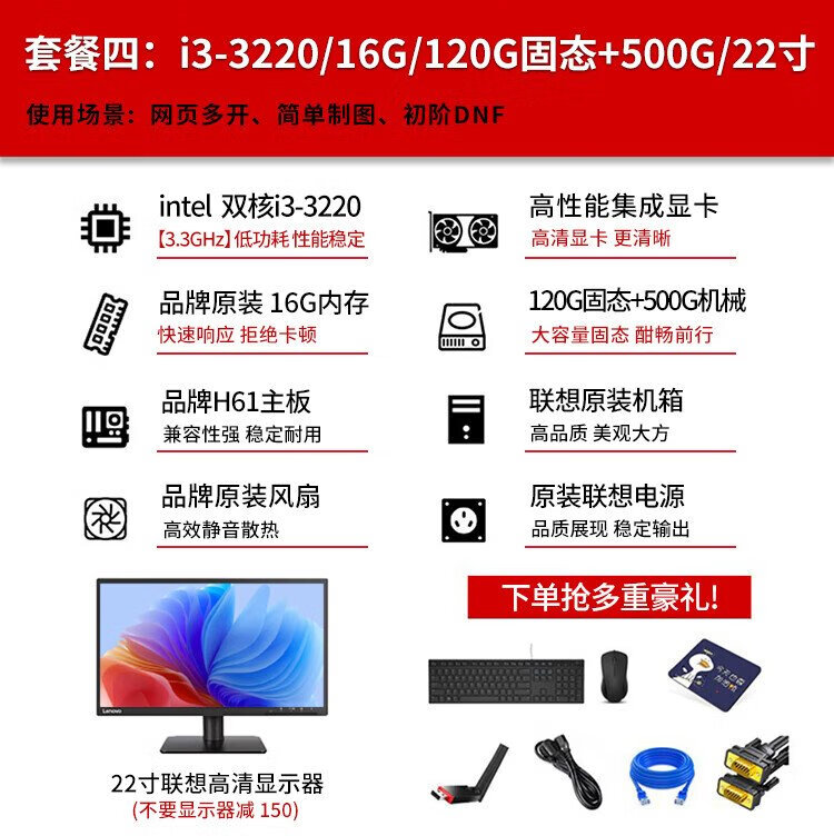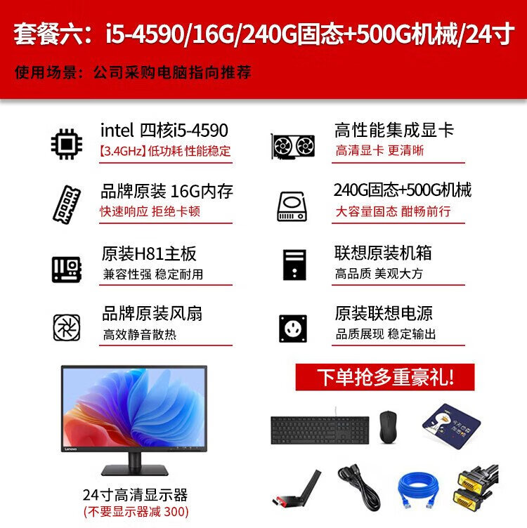 Lenovo Lenovo desktop host 8G monitor i3i5i7 game office home commercial mini machine independent display chicken computer second-hand desktop machine 10 i5-4460/16G/740G dual hard drive 22 inches