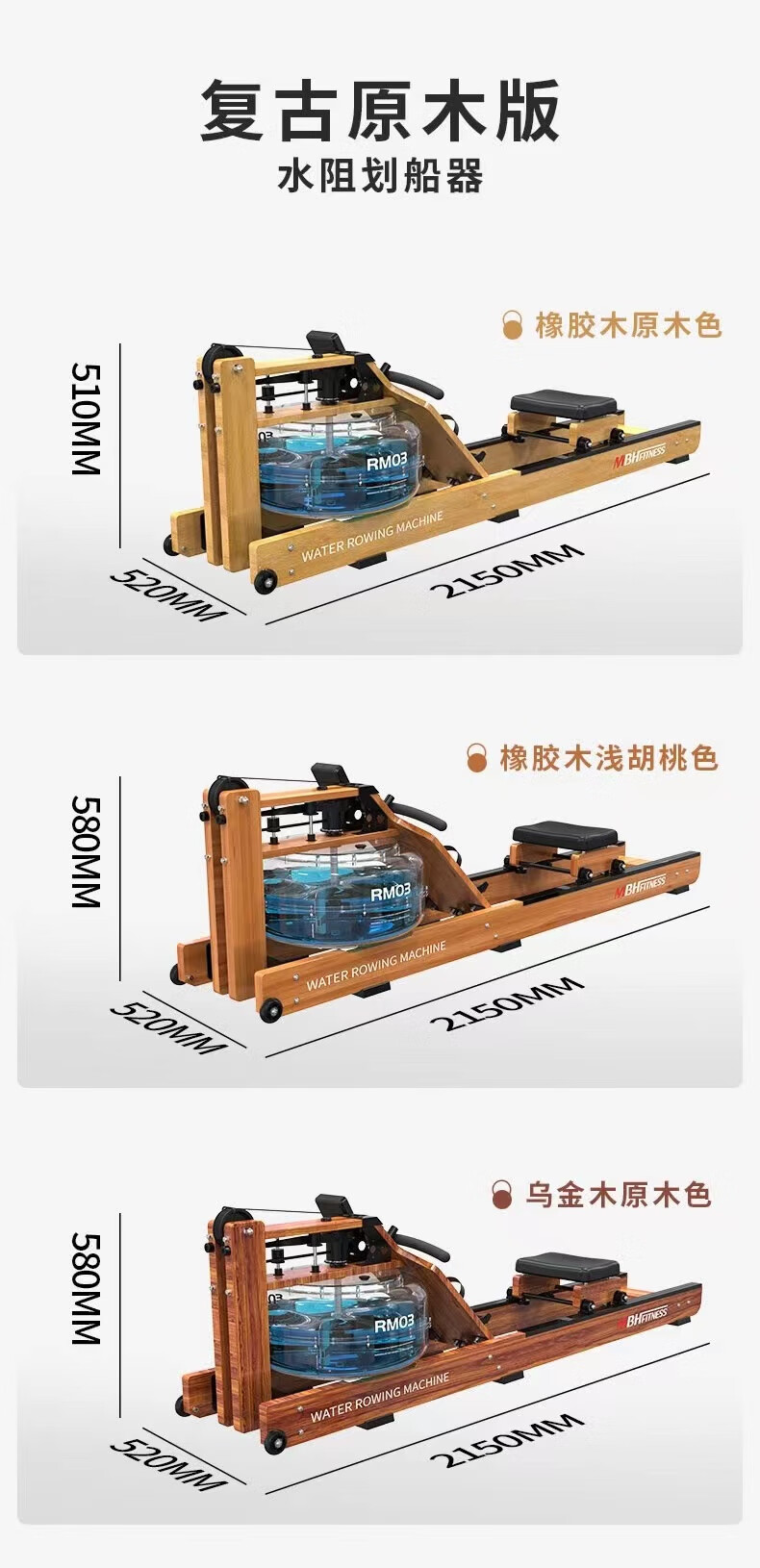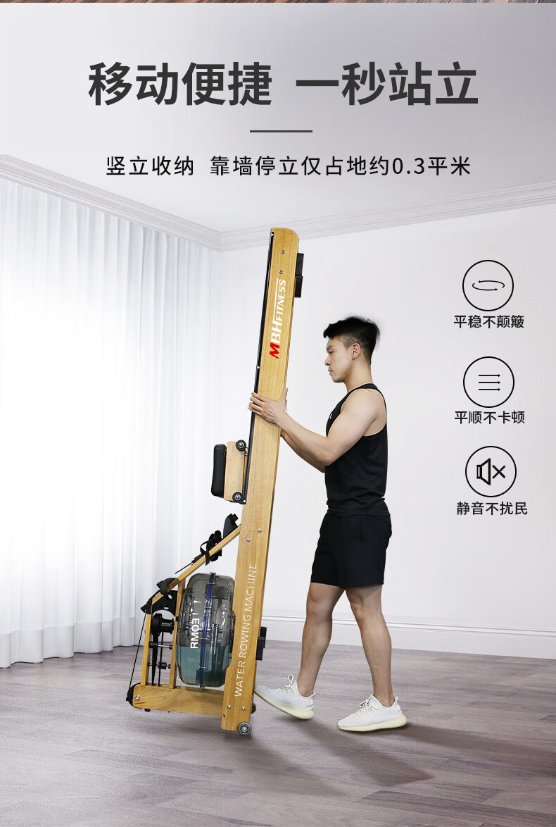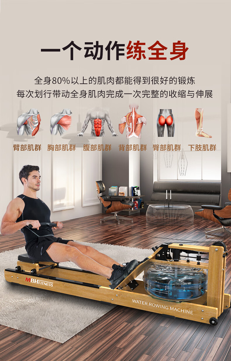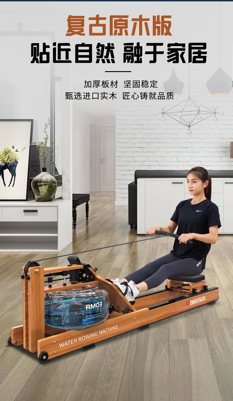 Maibaohe solid wood original mechanical water resistance rowing machine for home province aerobic fitness equipment silent foldable exclusive version data display/aviation grade material