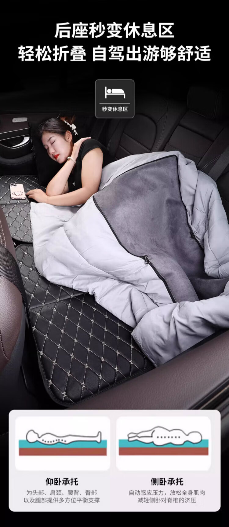 Sanduojiu such as car mattress non-inflatable rear sleeping pad car folding bed car back seat car sleeping artifact car SUV car bed folding black gold rhombus style