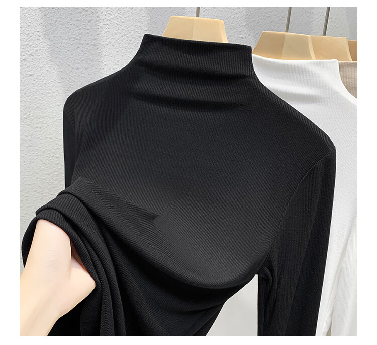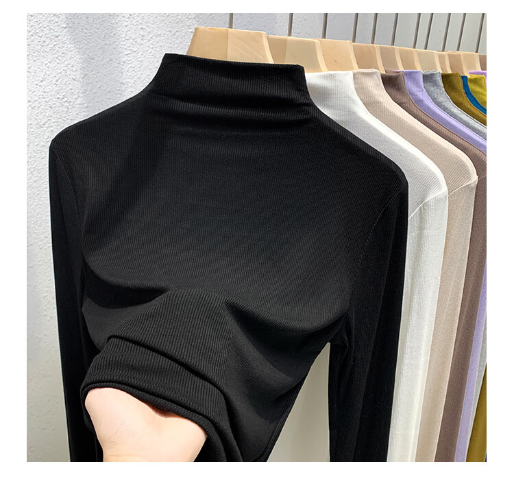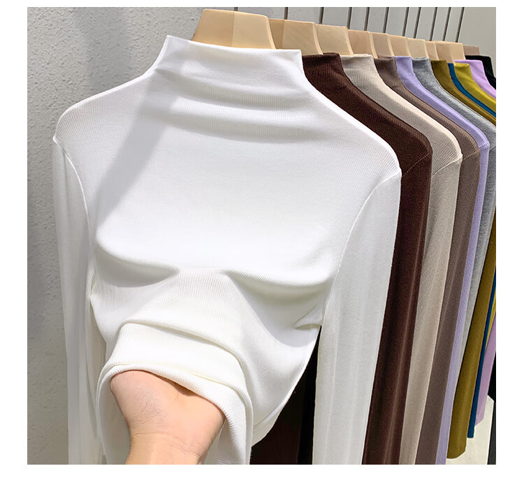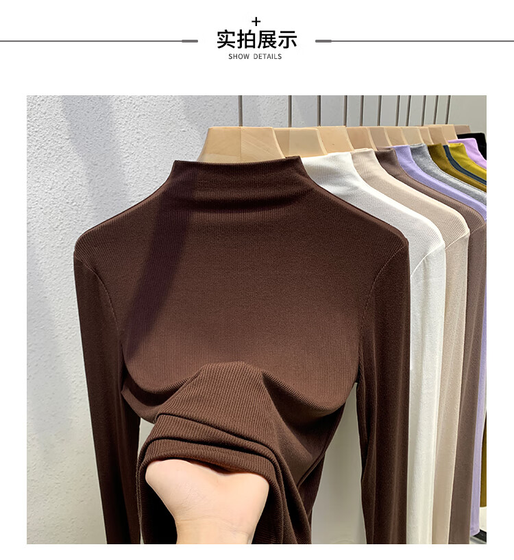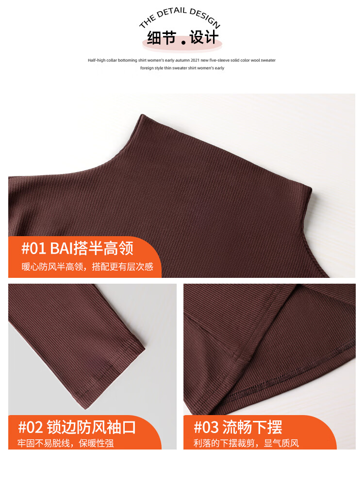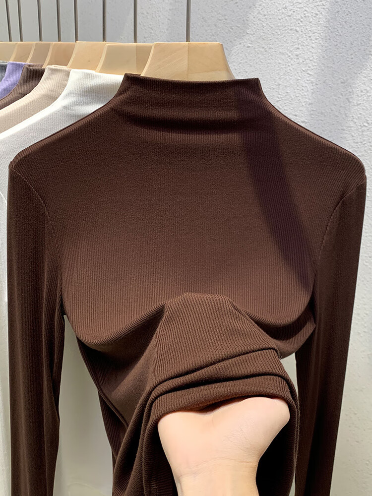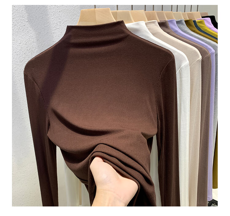Qiji half-high collar long-sleeved bottoming shirt for women to wear early autumn new knitted can be worn as a slim fit T-shirt top Brown L Recommended (102-114 pounds)