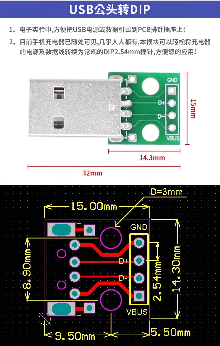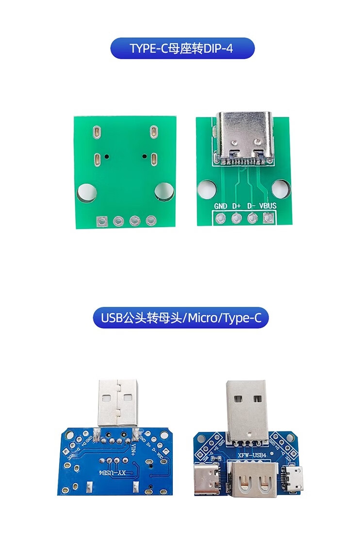Green Shen USB test adapter board to female socket male MICRO adapter board typec welded module circuit small board line Type-c male to female