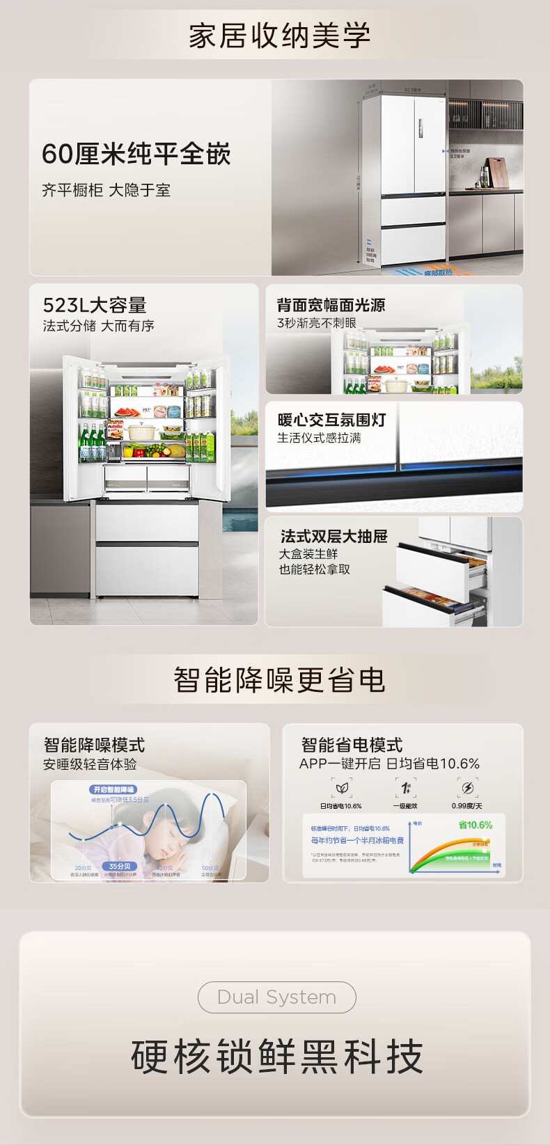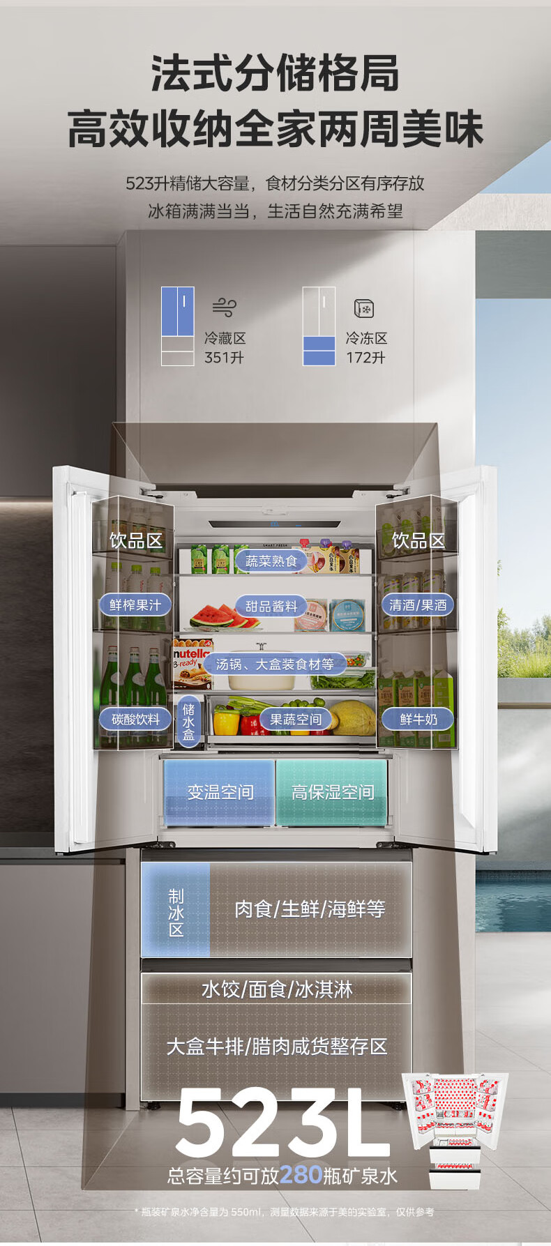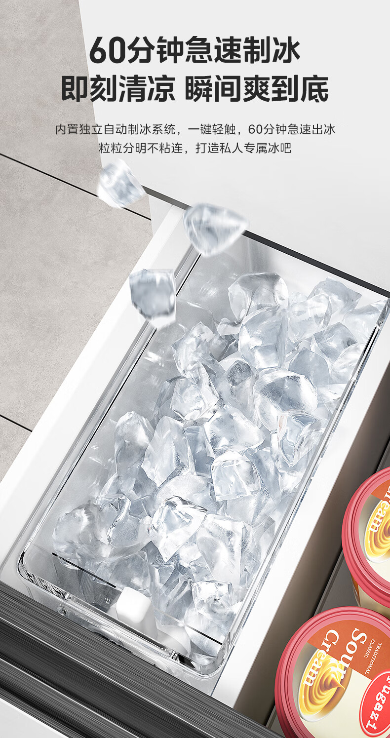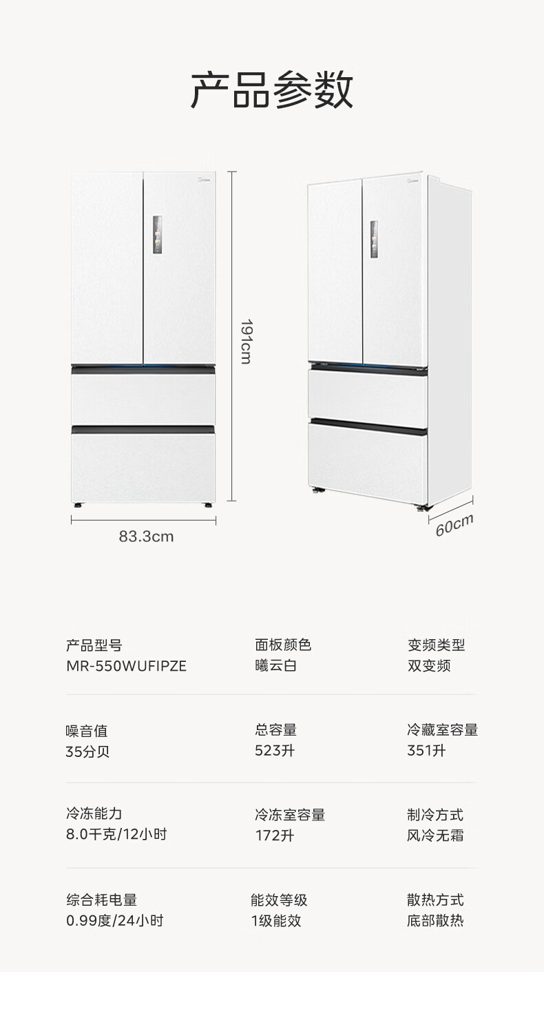 Midea M60 series 550 dual-system dual-cycle ultra-thin zero-embedded first-class energy-efficiency French multi-door air-cooled frost-free smart home refrigerator with built-in ice maker national subsidy Xiyunbai Midea Machine King