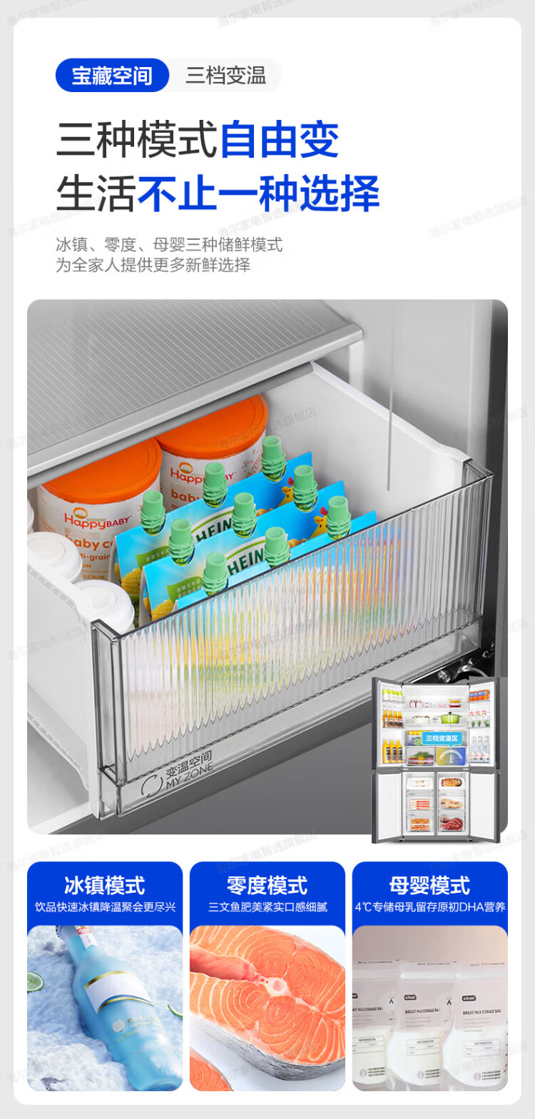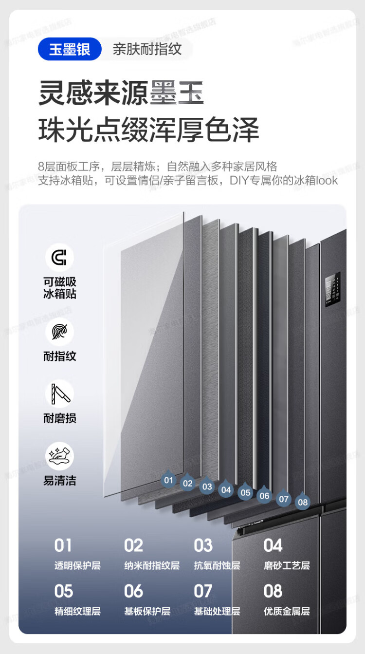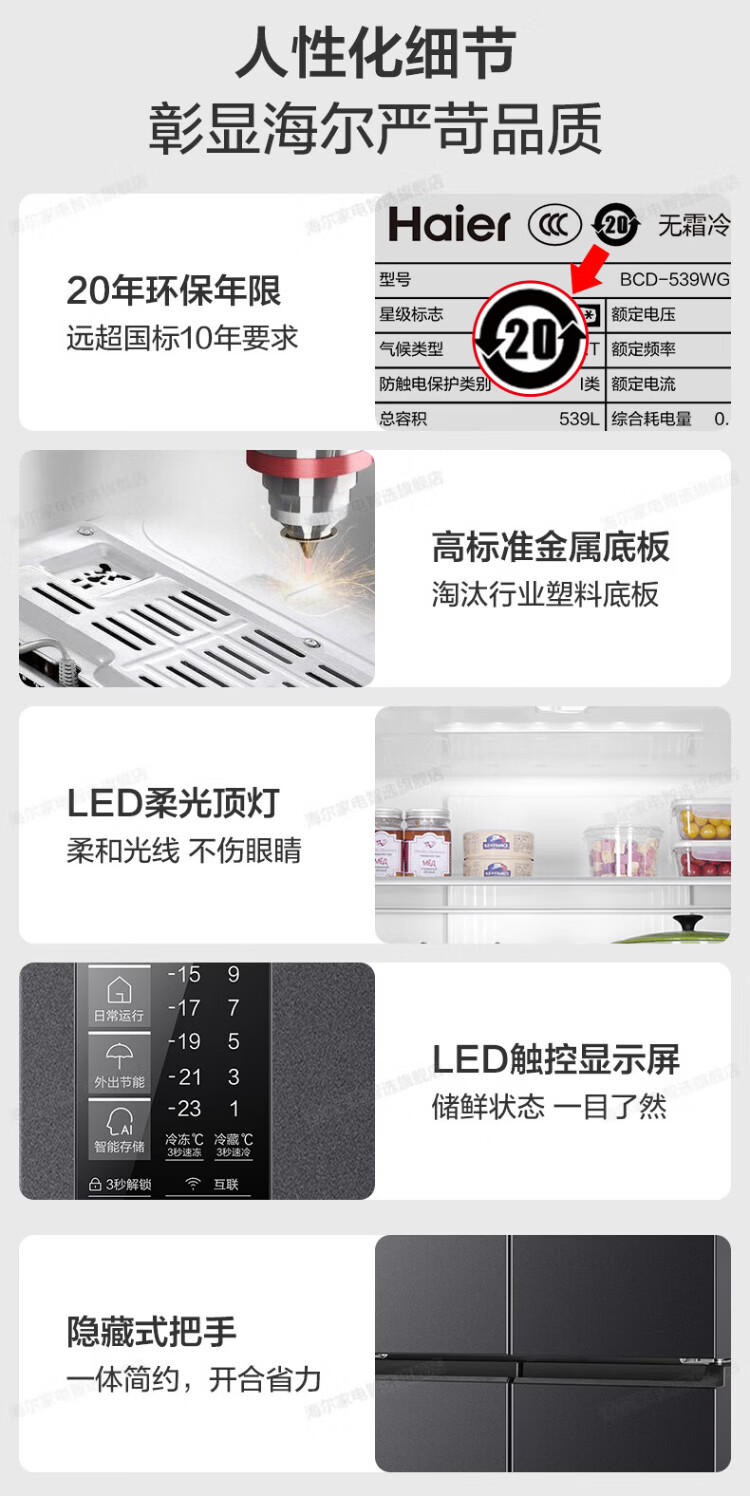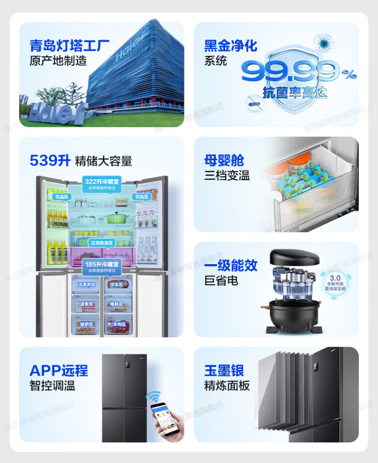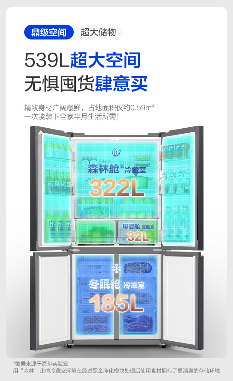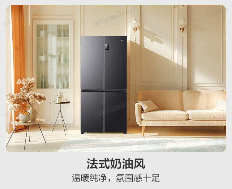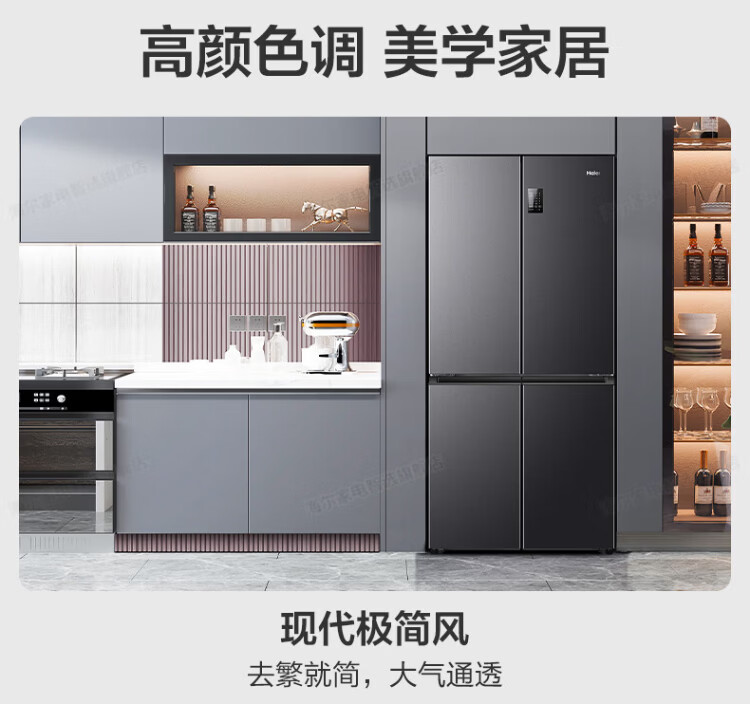 Haier refrigerator four-door cross-door double-door 539 upgraded to first-level energy efficiency dual frequency conversion dual cycle ultra-thin large capacity can be embedded in air-cooled frost-free household appliances state subsidy 539L+healthy black gold purification+networked intelligent control+jade ink silver hot selling hot model