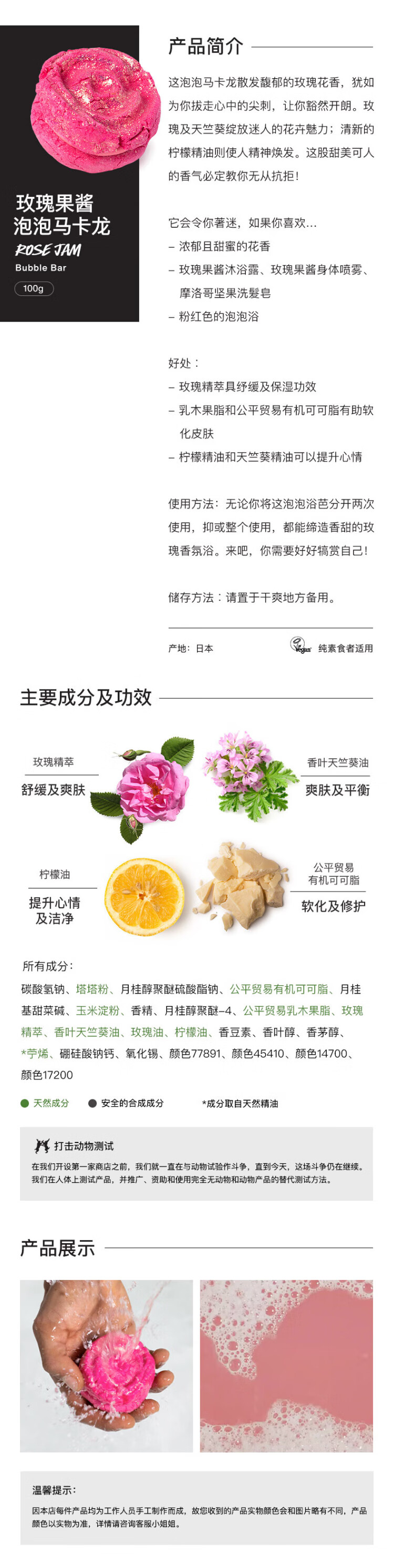 LUSH Official Authentic Rose Jam Bubble Macaron Essential Oil Bath Ball Moisturizing Bubble Bath 100g