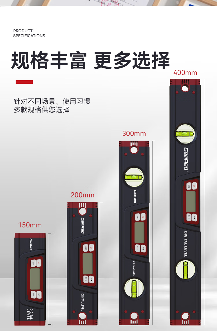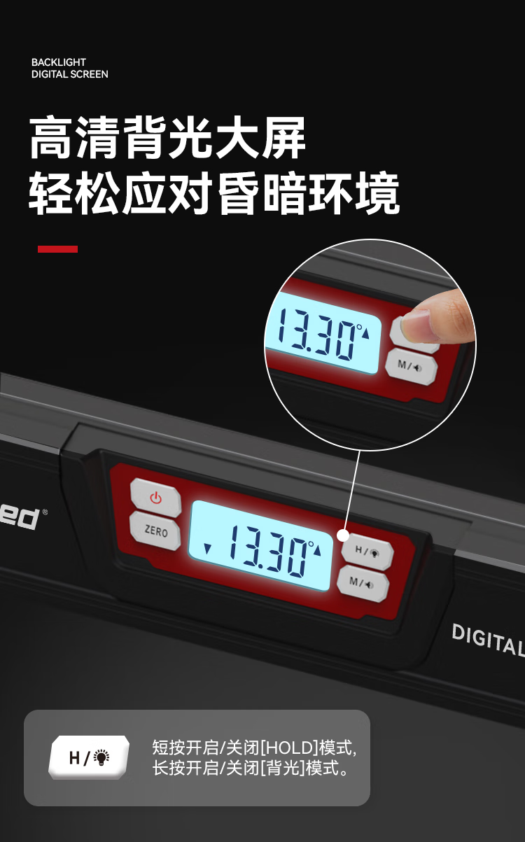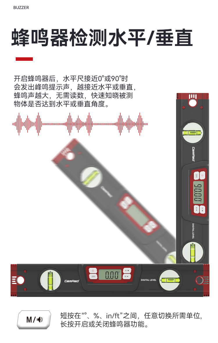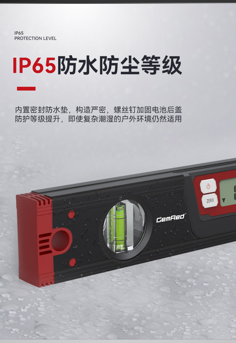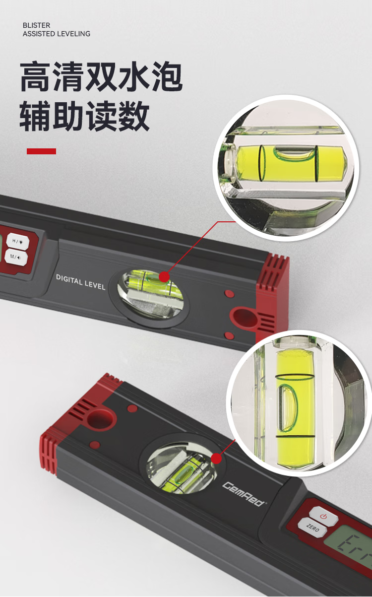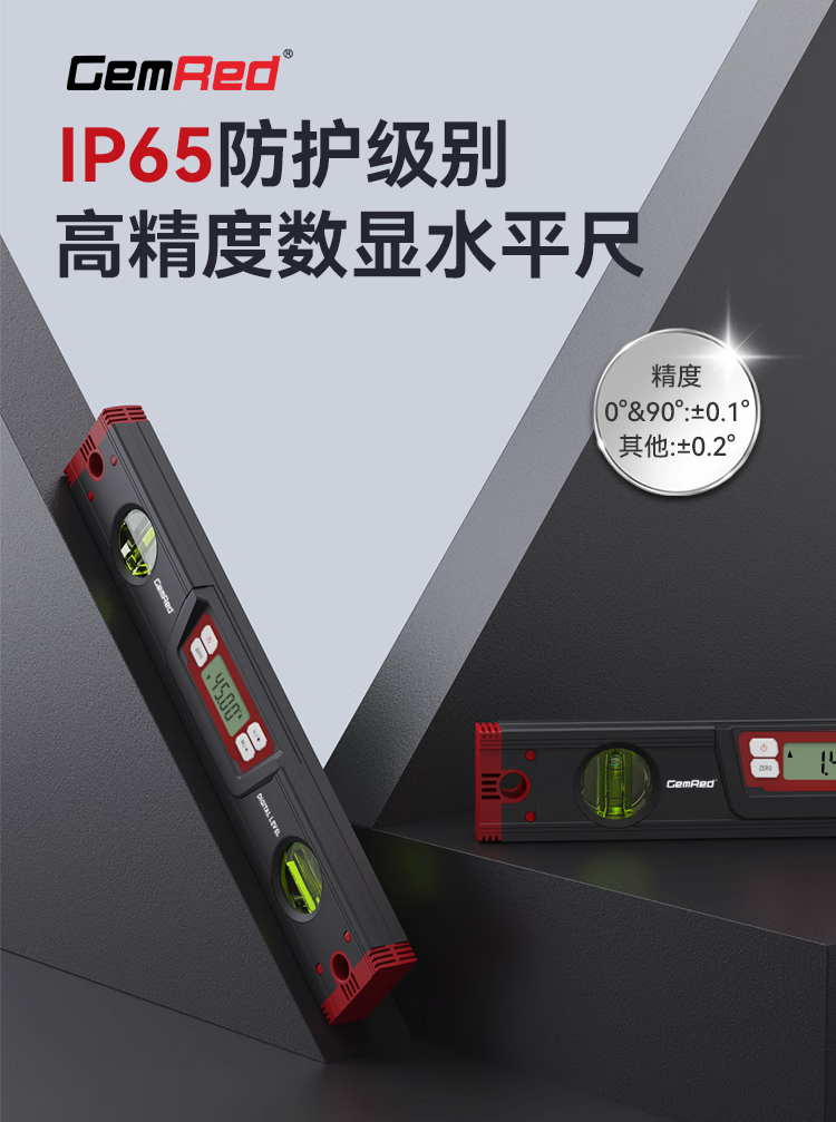 GemRed small digital display level IP65 slope level level angle measuring instrument aluminum alloy Anping ruler length 300mm-with tape buzzer with blister