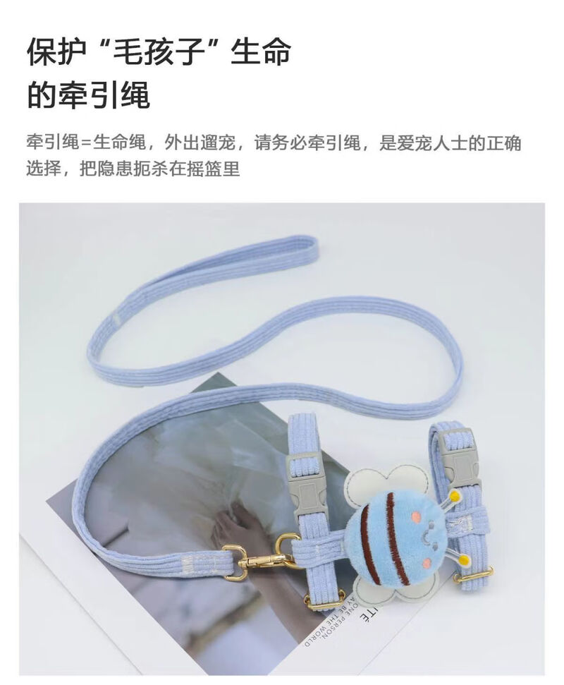 Cat leash to prevent break-away, cat leash for walking outside, cat chain, pet harness, cat leash, little bee pink S size