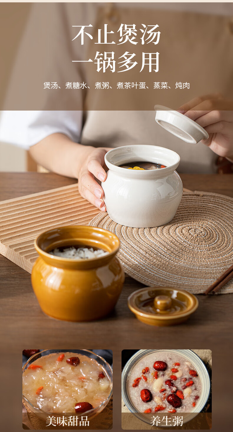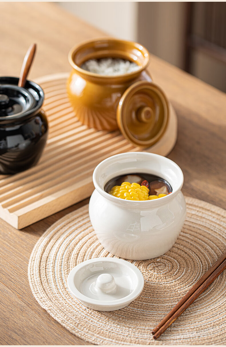 Haoxiang (HAOXIANG) earthenware pot stew pot for one person, steamed egg stew pot with lid, Chinese Shaxian snack ceramic soup pot, creamy white earthenware pot stew pot - with lid 1cm, no specifications