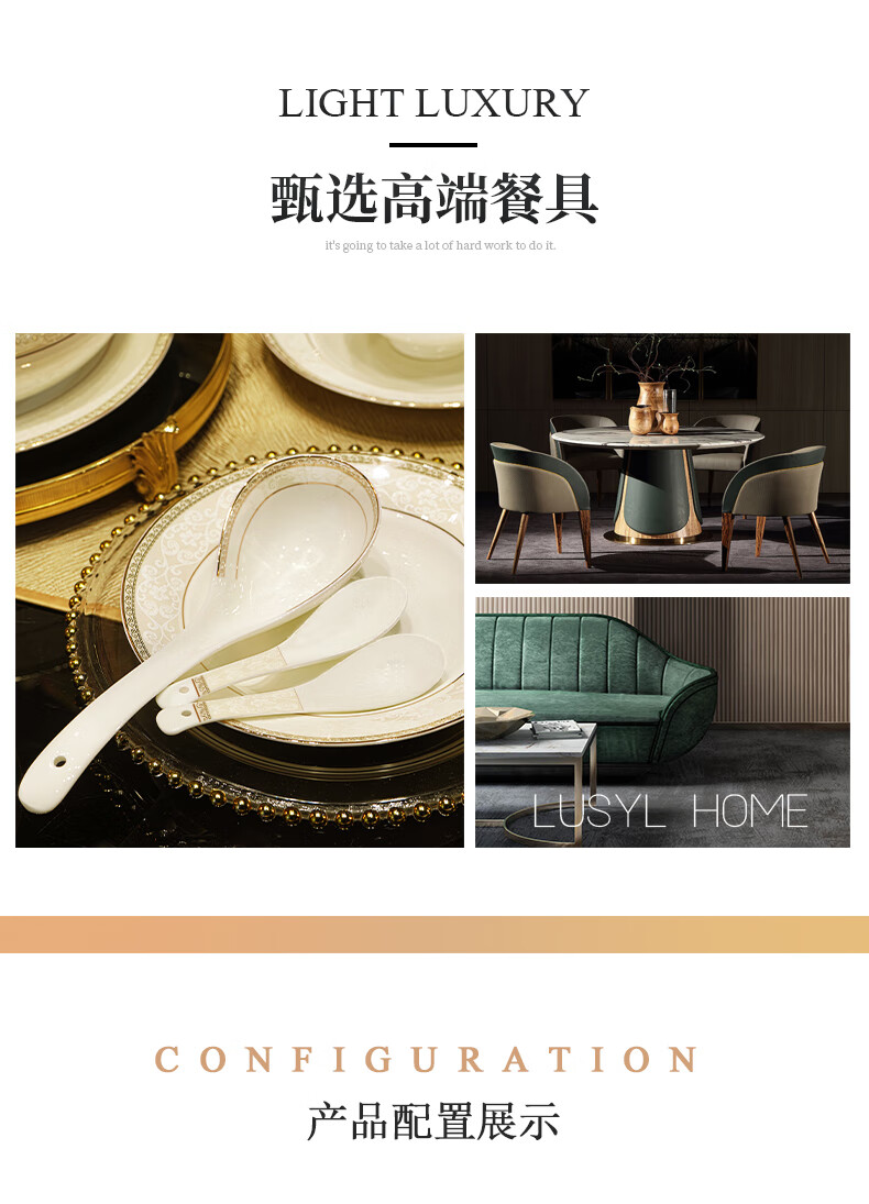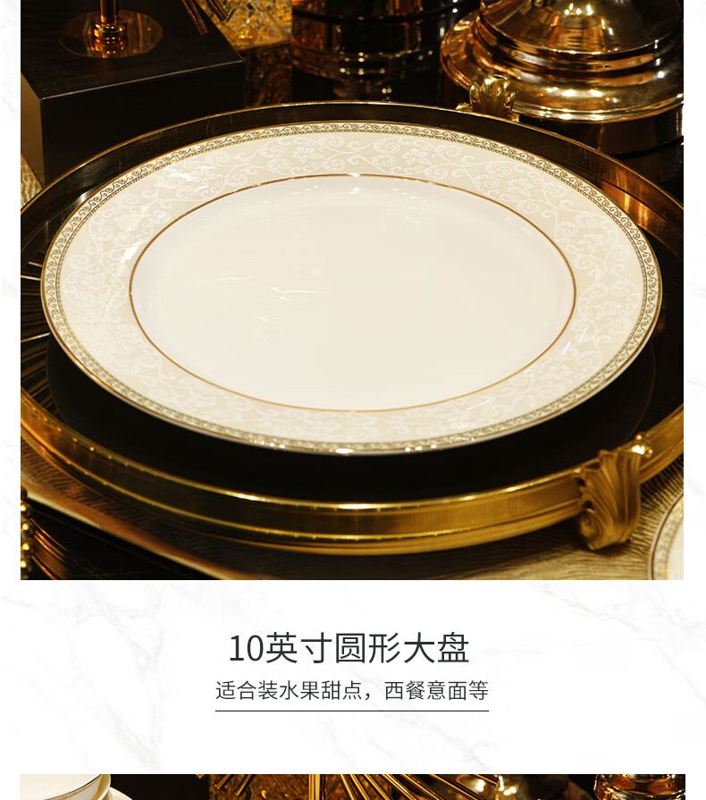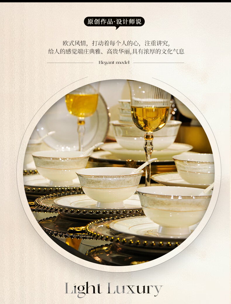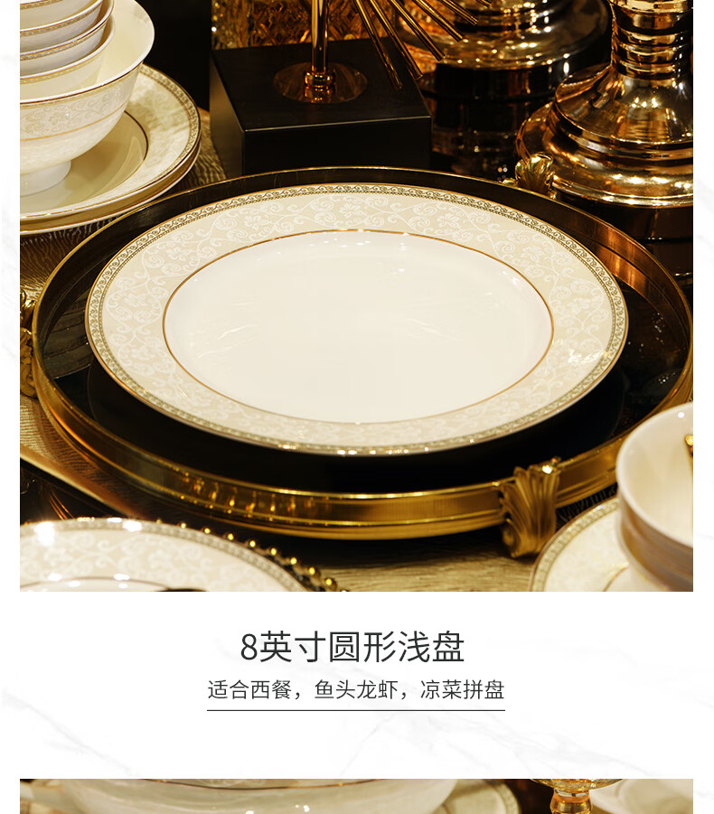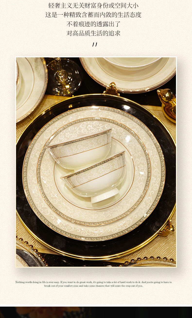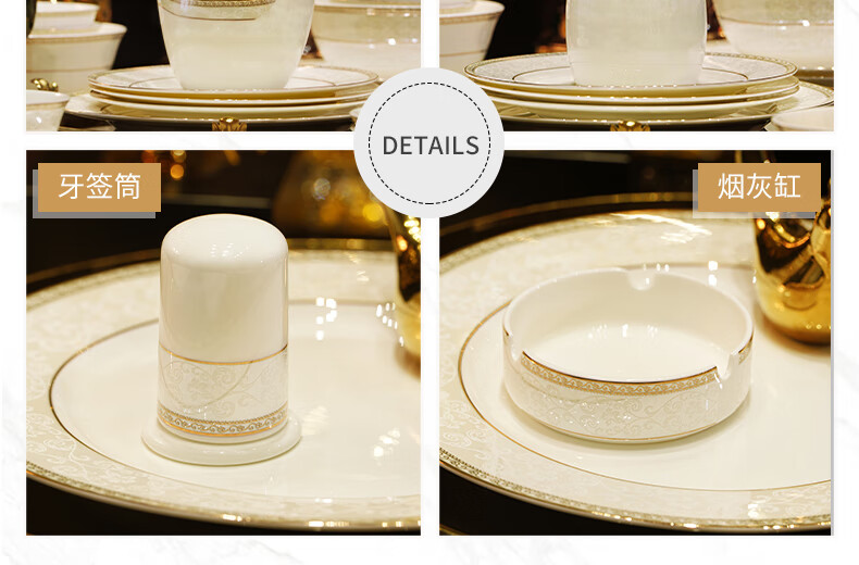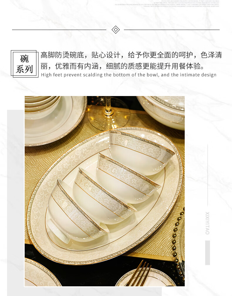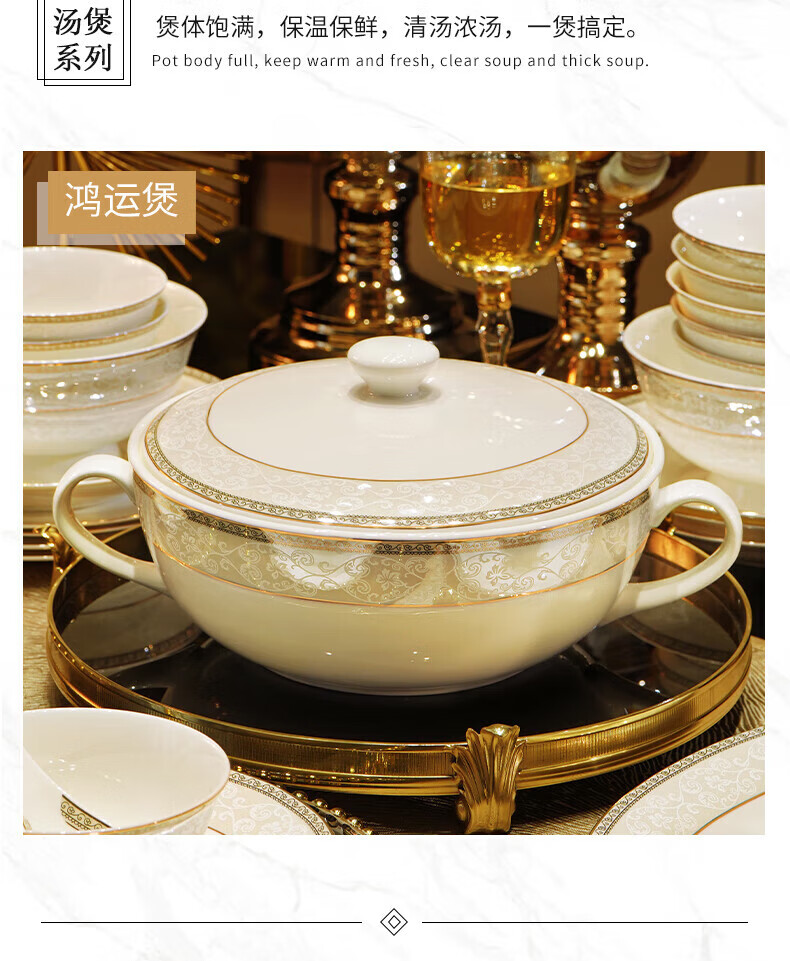 NINE CRANES Jingdezhen tableware set, housewarming gift, ceramic bowl and plate set, household light luxury porcelain bowl and plate set, suitable for microwave oven, 10-person accessory pot, 56-piece set
