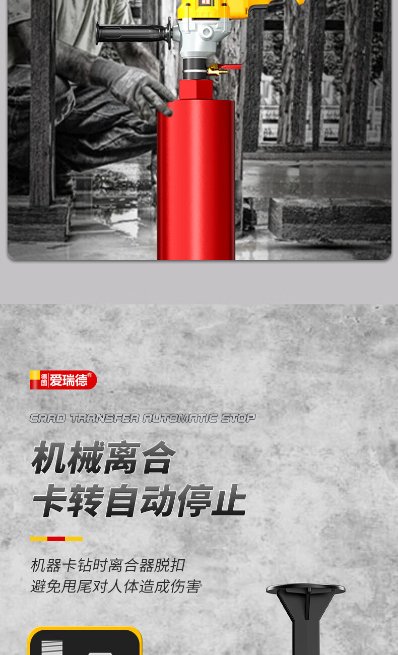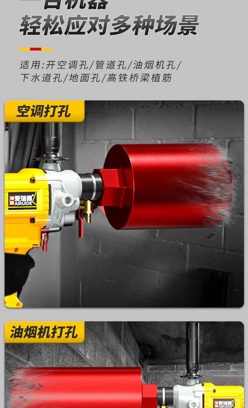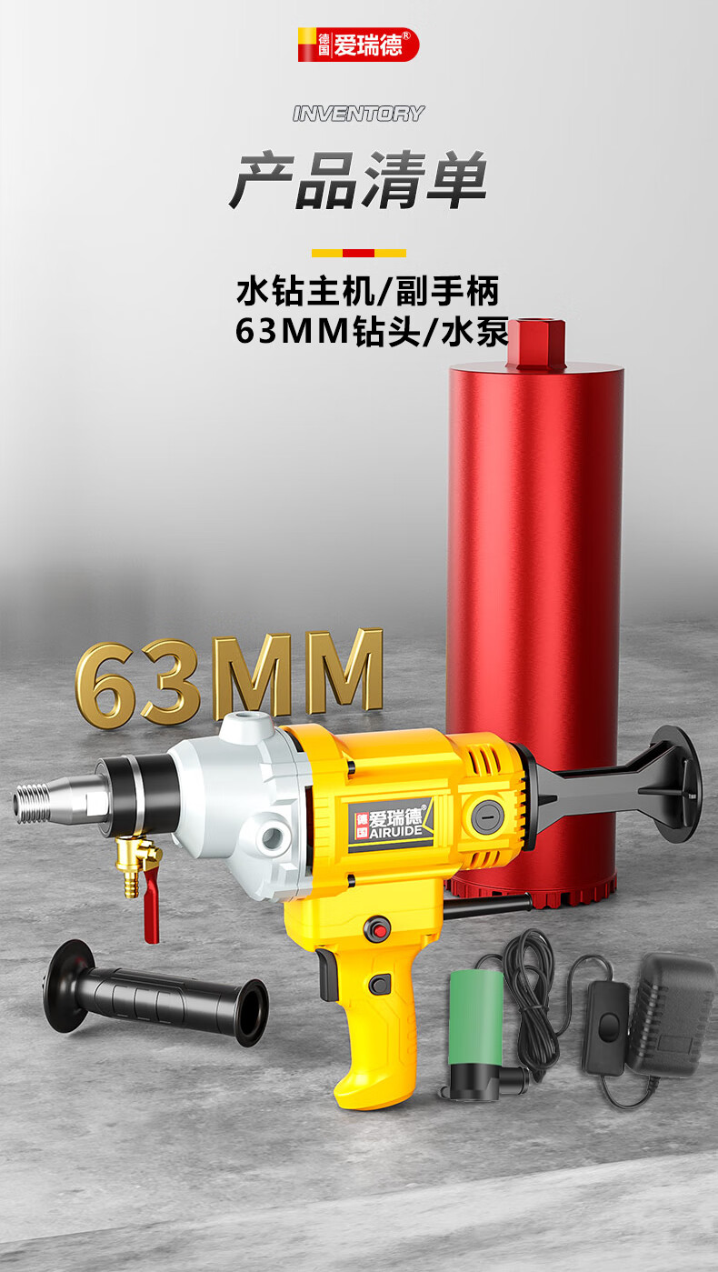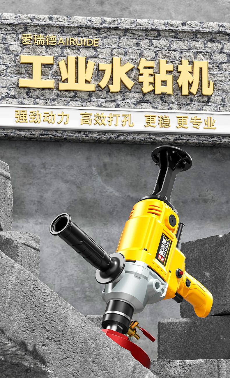 Aired German water drill drilling machine water electric drill air conditioning hole drilling new high-power desktop water mixer 2000W upgraded model + 63 drill bits + water pump