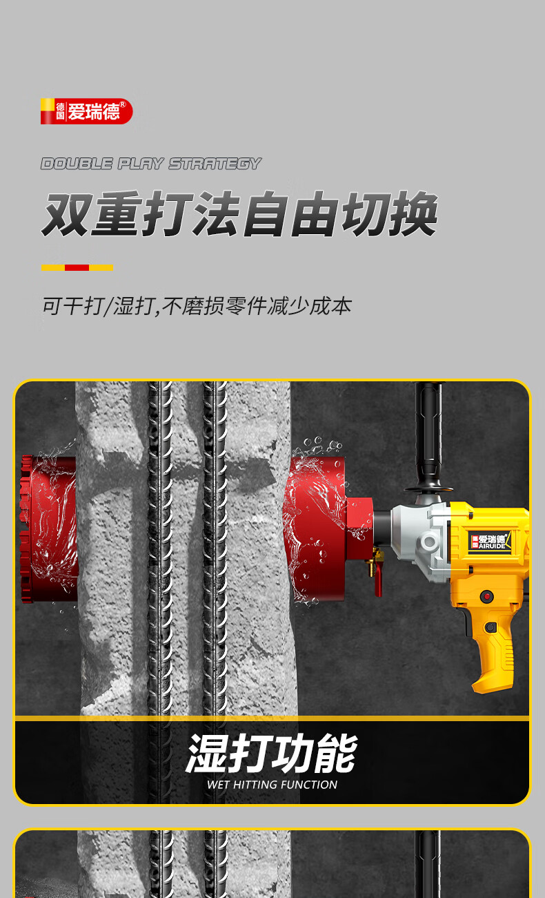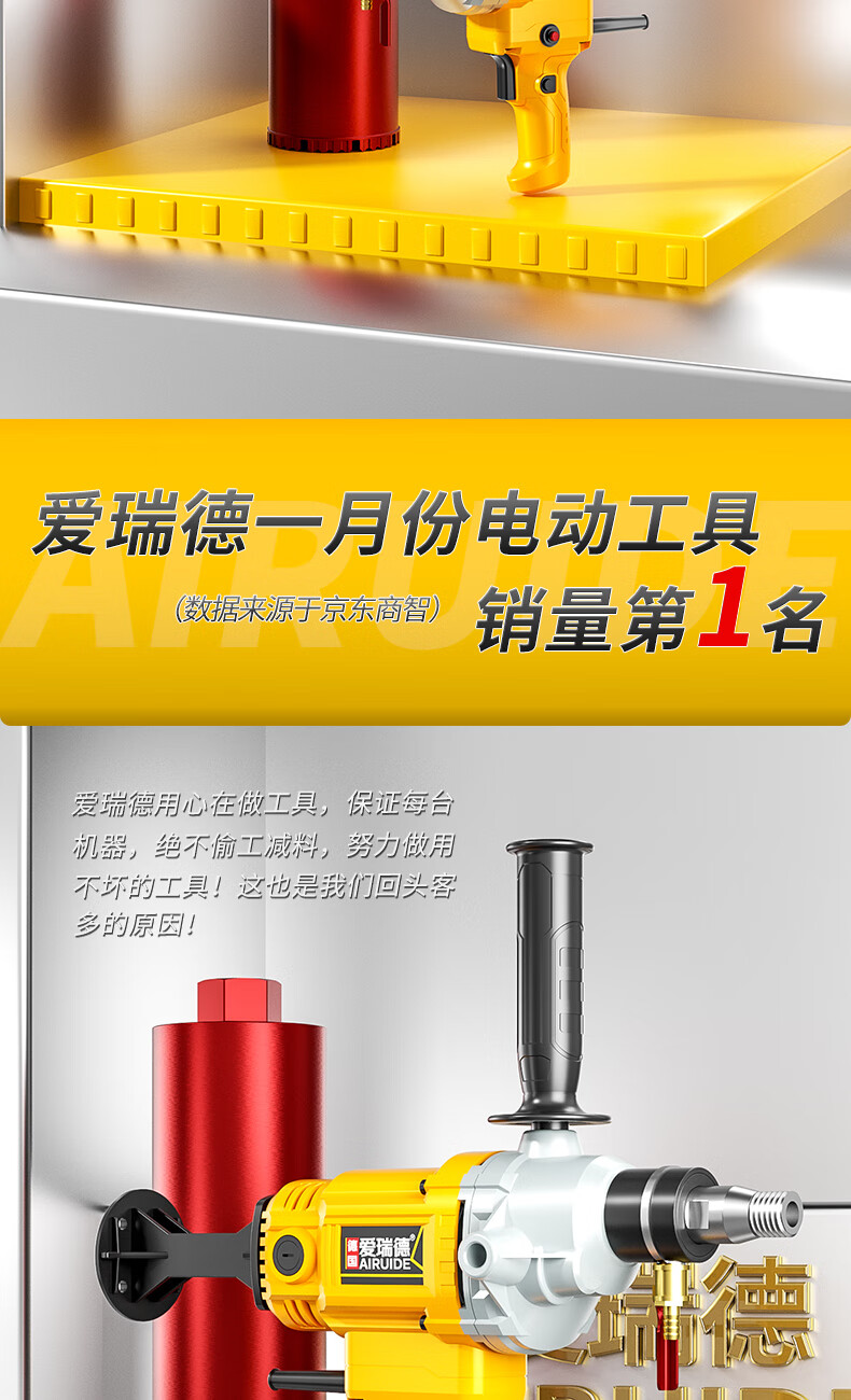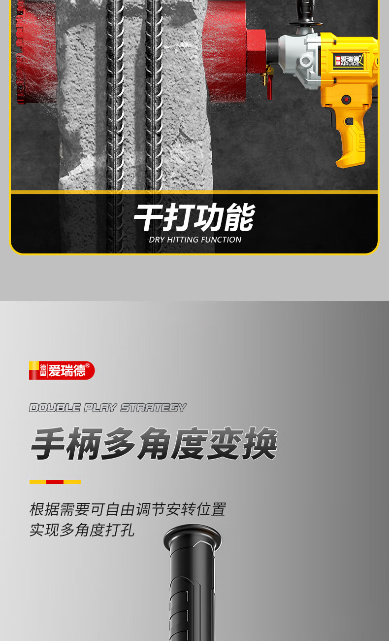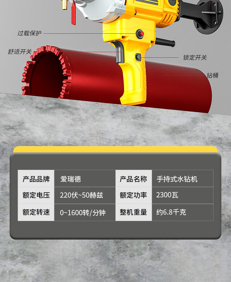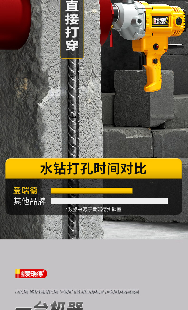 Aired German water drill drilling machine water electric drill air conditioning hole drilling new high-power desktop water mixer 2000W upgraded model + 63 drill bits + water pump