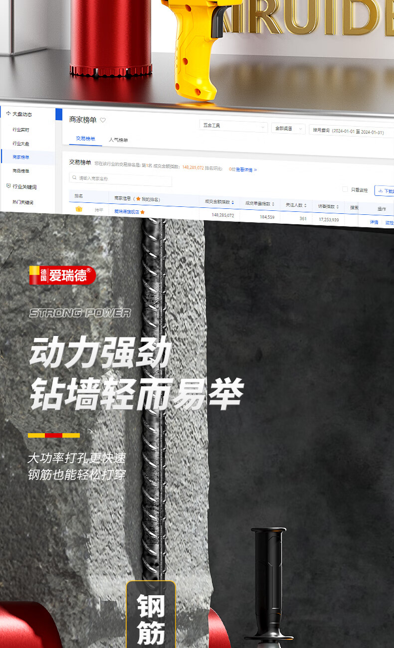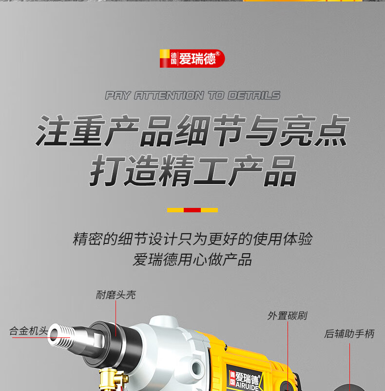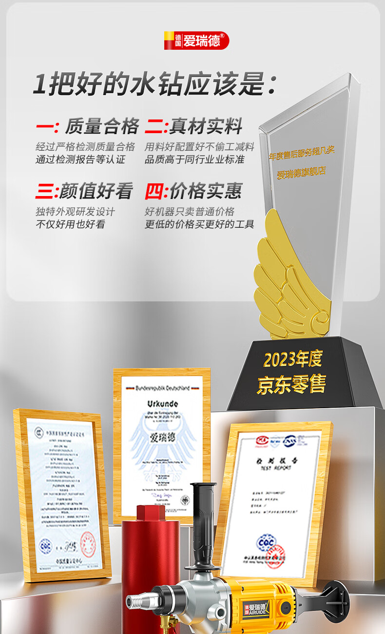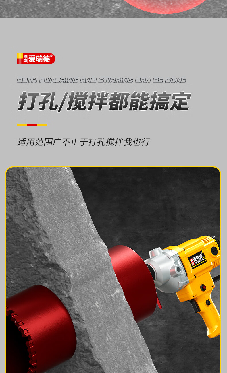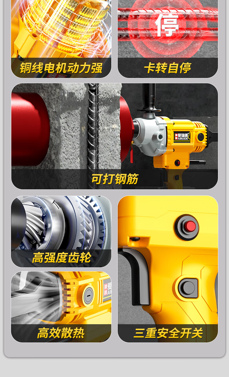 Aired German water drill drilling machine water electric drill air conditioning hole drilling new high-power desktop water mixer 2000W upgraded model + 63 drill bits + water pump