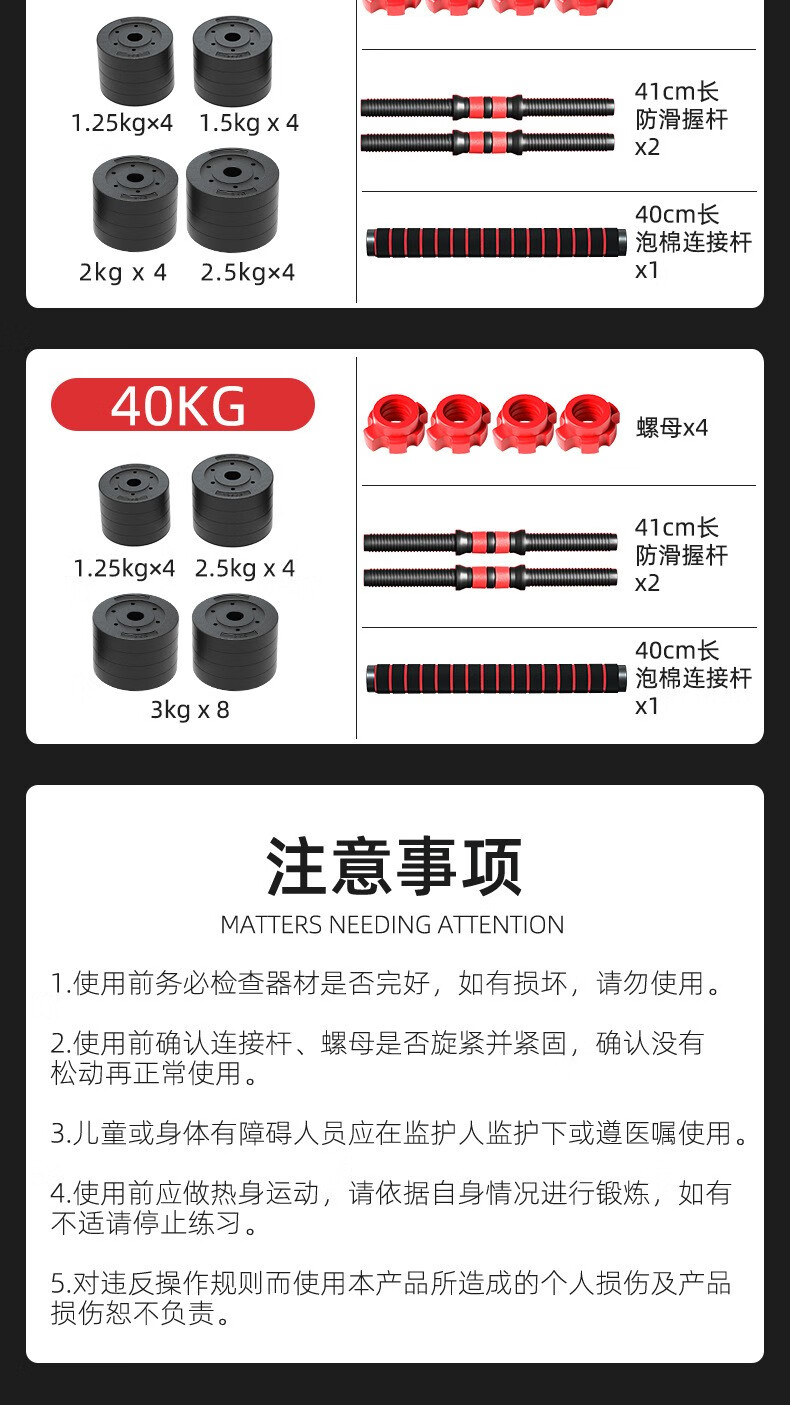 Manon Messiant Weifanjia dumbbell men's fitness home equipment adjustable weight women's kettlebell barbell dormitory combination set 50 10kg a pair of dual-use equipment