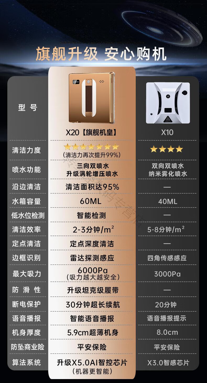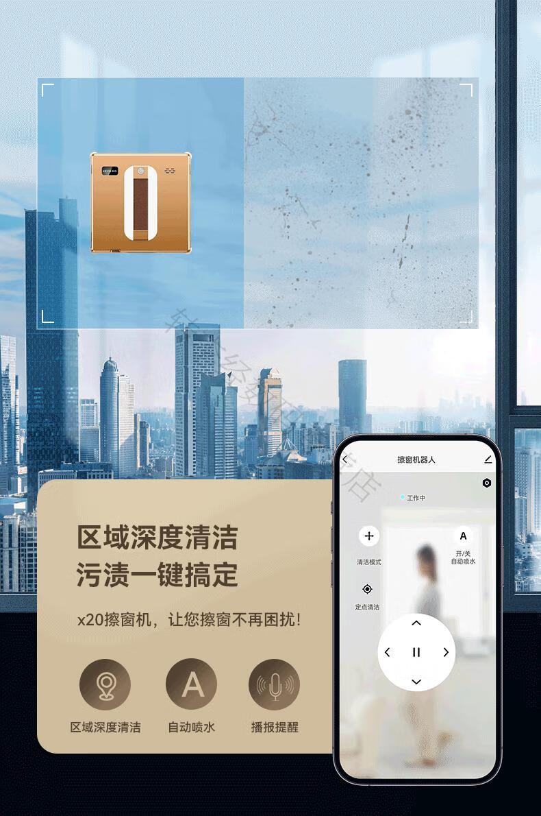 BMOI Kewo (ECOVACSI) X20 machine king water spray window cleaning robot fully automatic electric household high-rise window glass cleaning artifact window cleaning robot X20 flagship machine king intelligent three-way three-way water spray + customized storage box