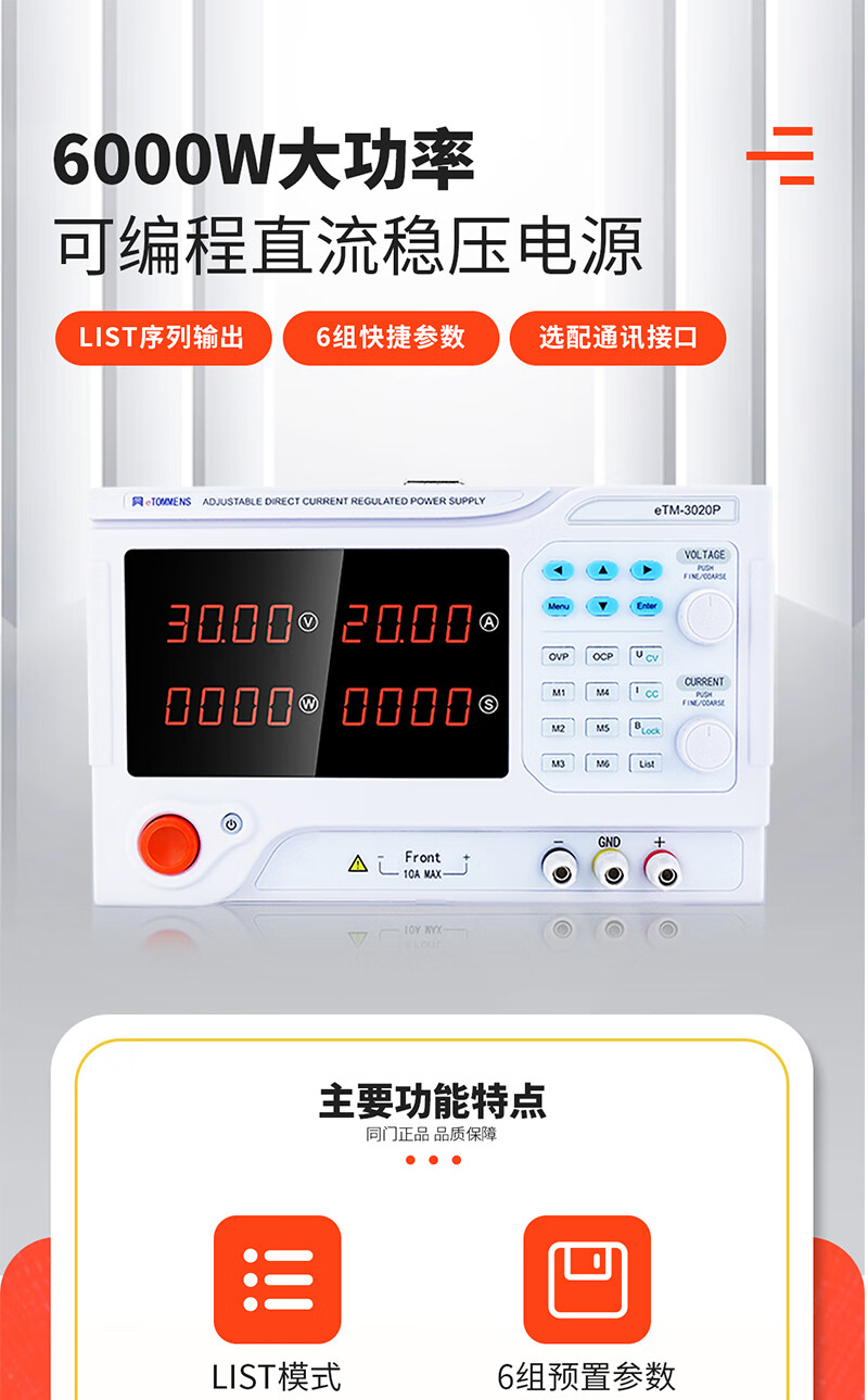 Adjustable DC regulated power supply with the same door, high-power program-controlled programming power supply, experimental lamp, aging motor test, electroplating eTM6010P (60V/10A) 600W