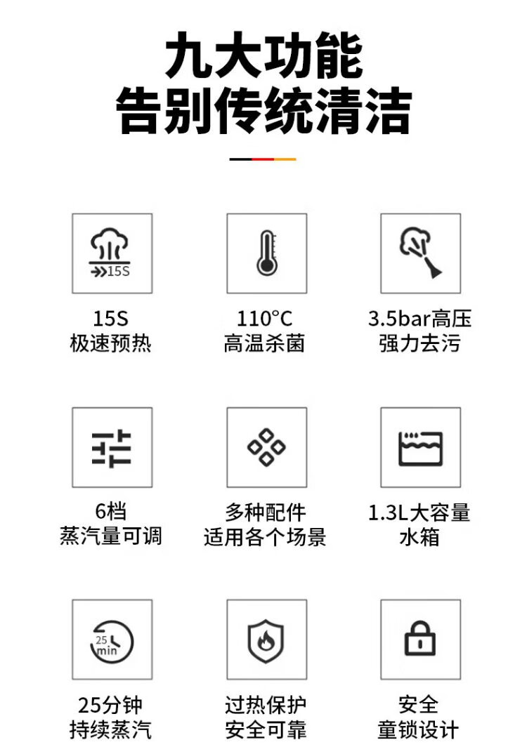 Ruizhi household appliances multi-functional full set of air-conditioned kitchen special cleaning all-in-one machine high pressure and high temperature steam cleaning machine disinfection car beauty film interior formaldehyde removal mop top version