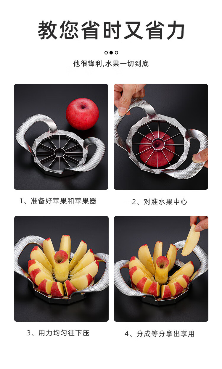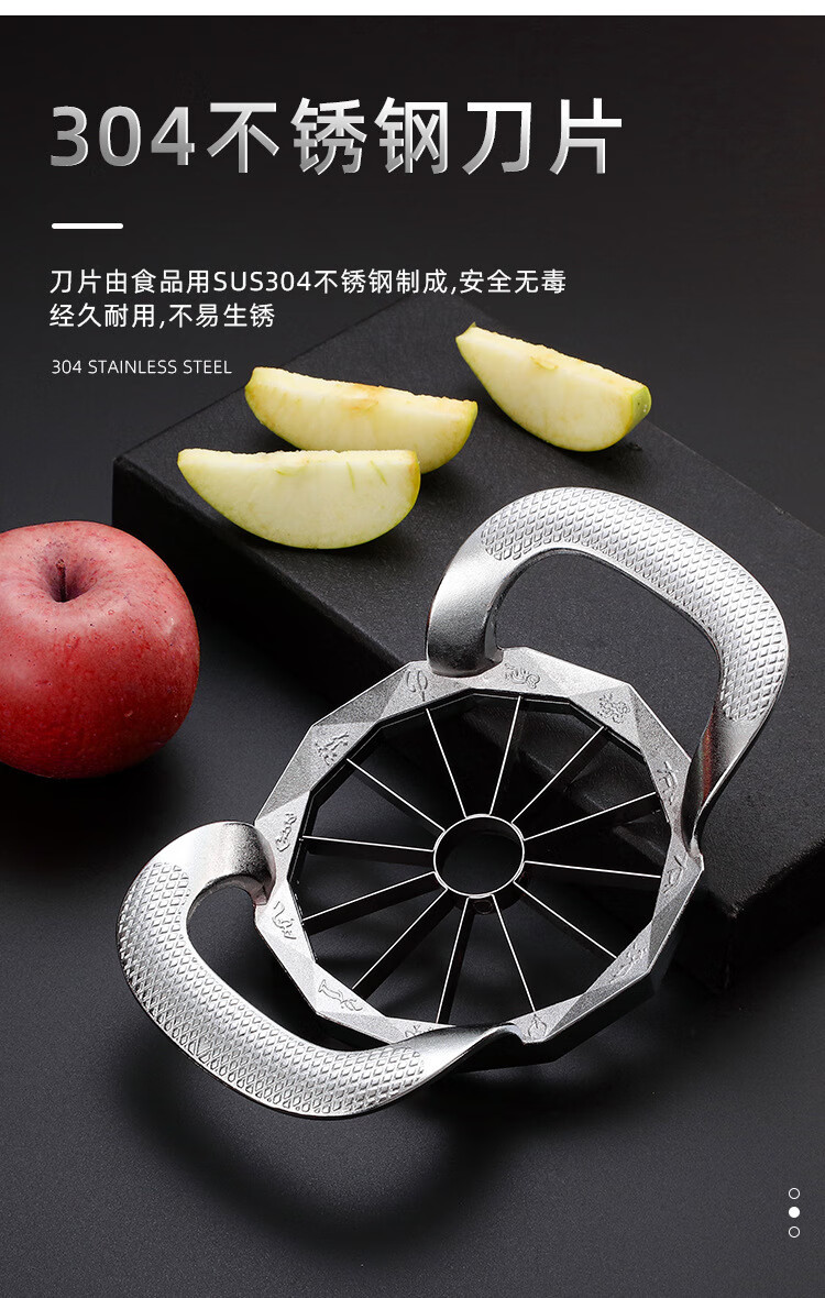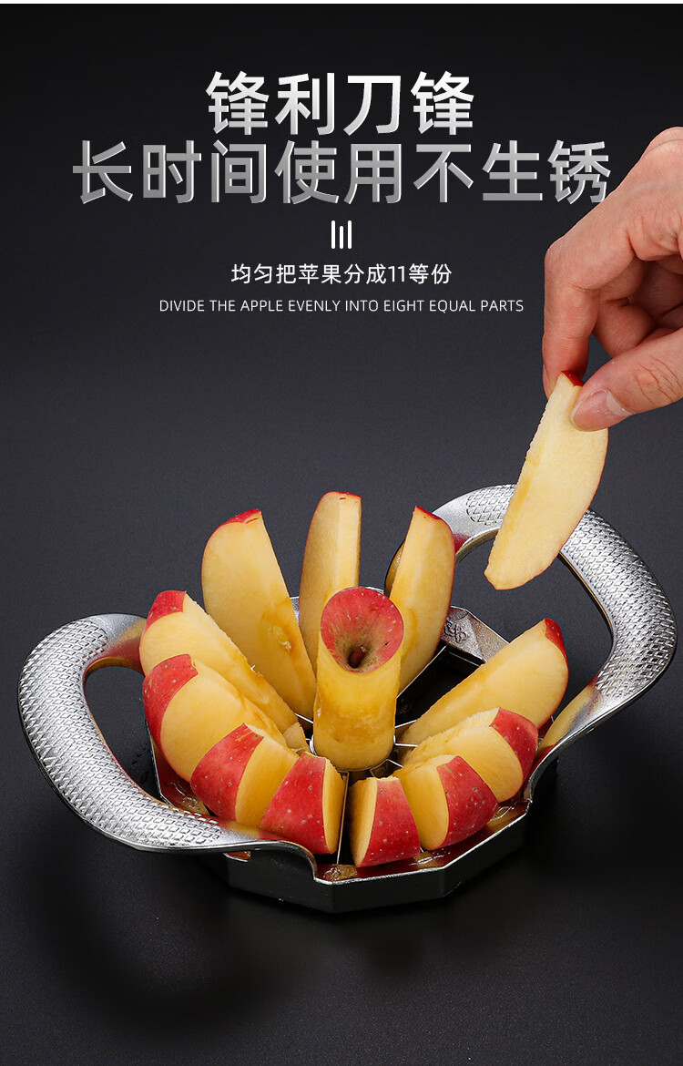Huili's customized stainless steel apple cutting tool, fruit cutting tool, large fruit splitting tool, fruit splitting, slicing, cutting and corer, apple cut into 8 silver pieces, no color box