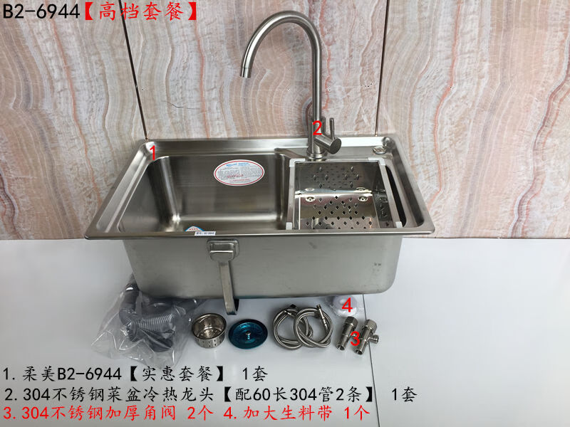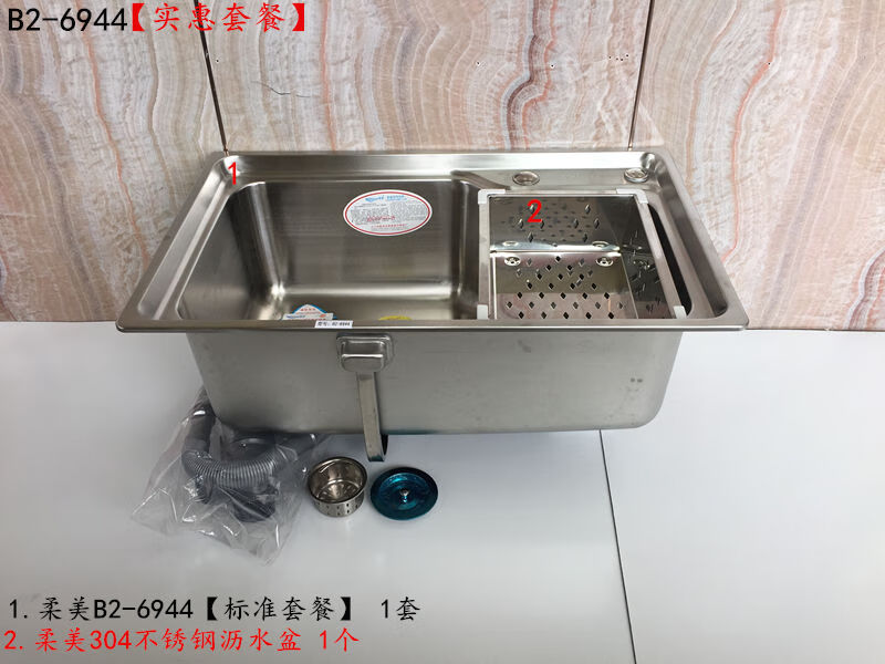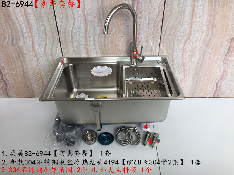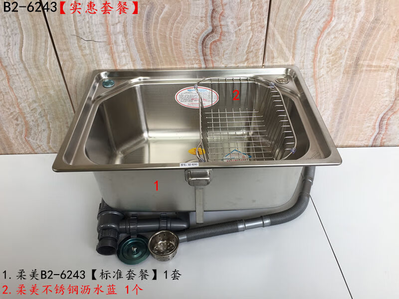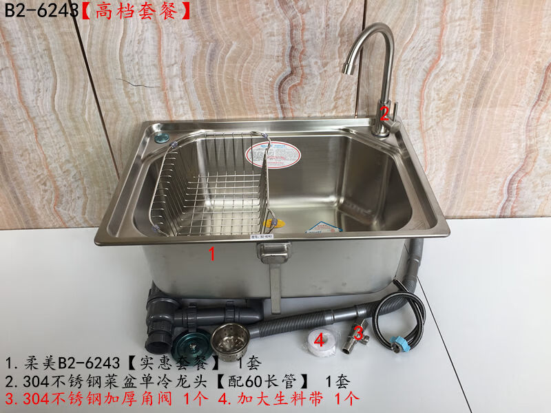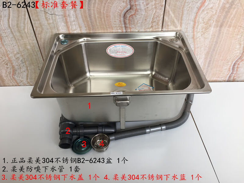 Soft 304 stainless steel kitchen sink large single bowl brushed dishwashing basin integrated thickened 6243 standard package