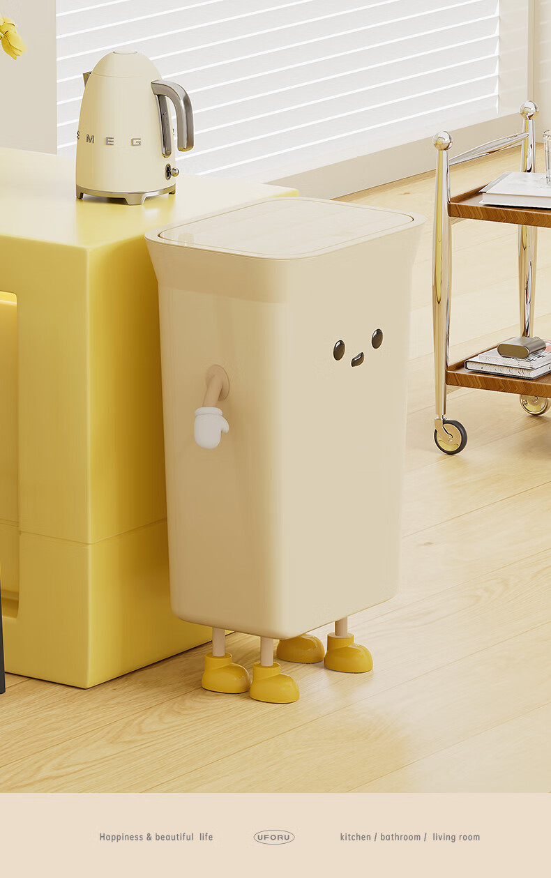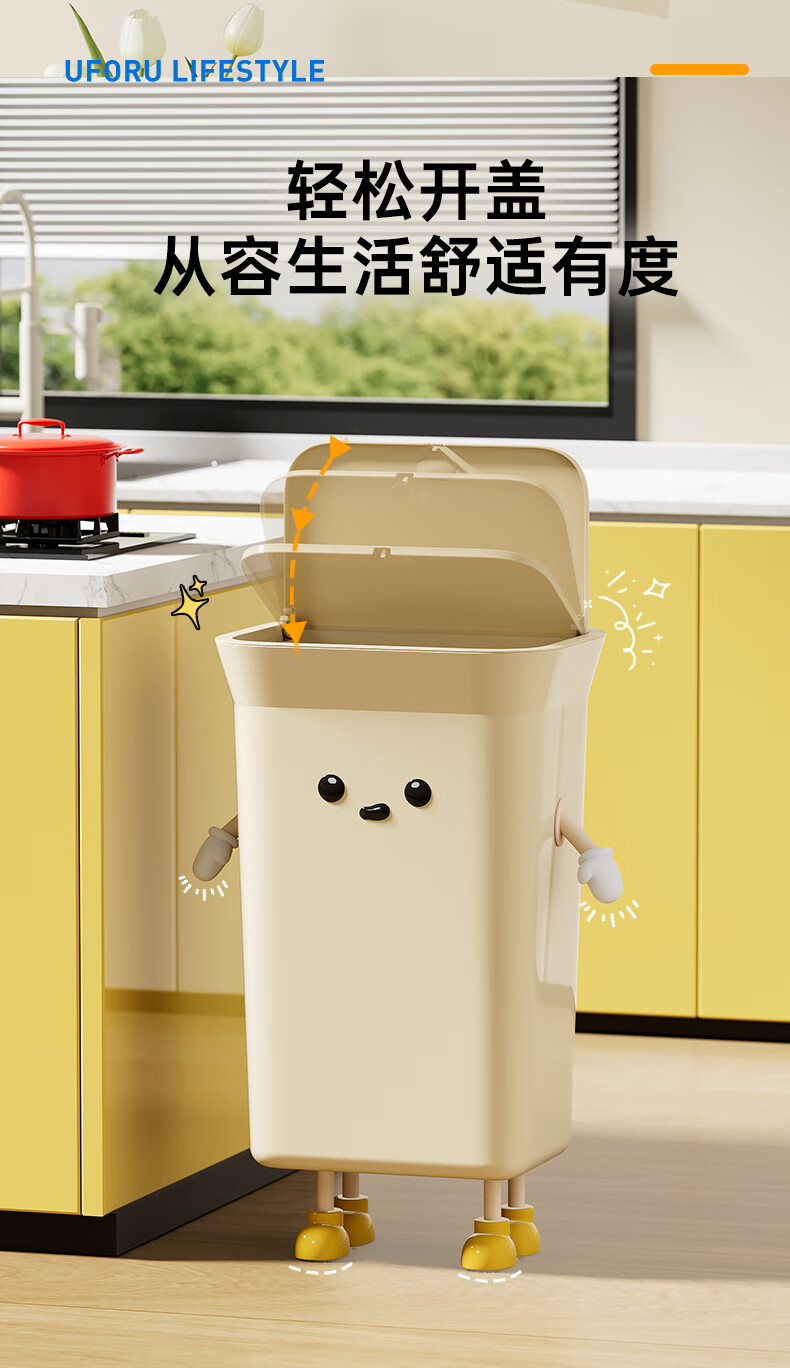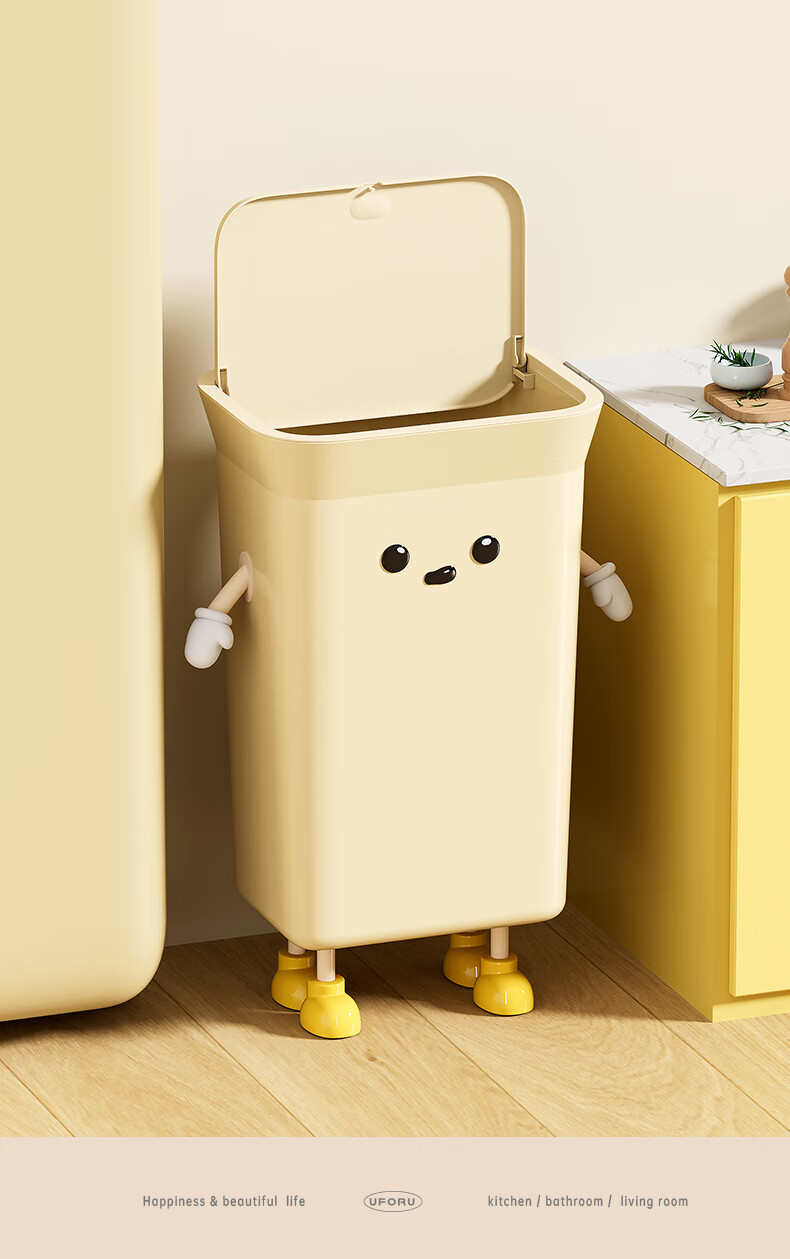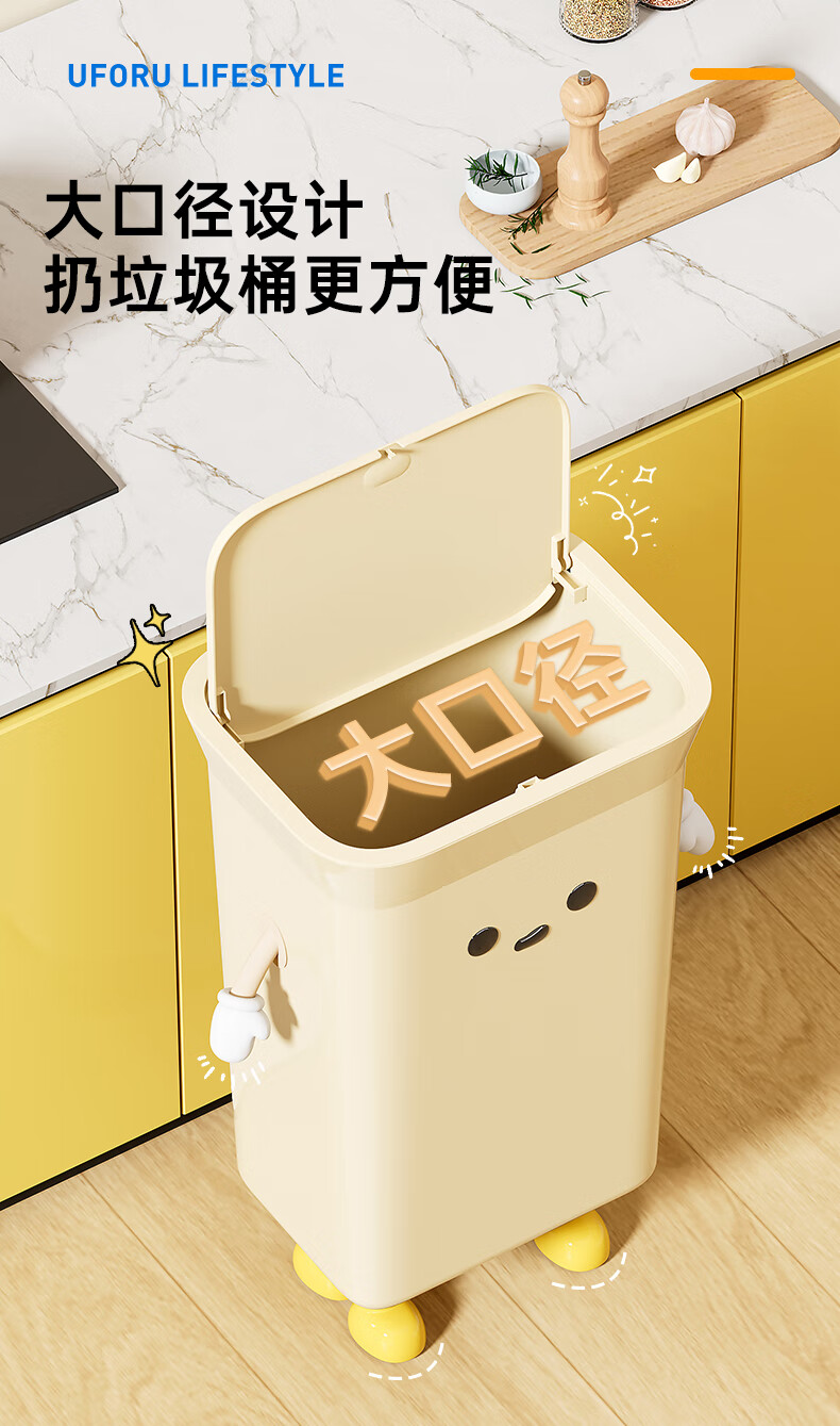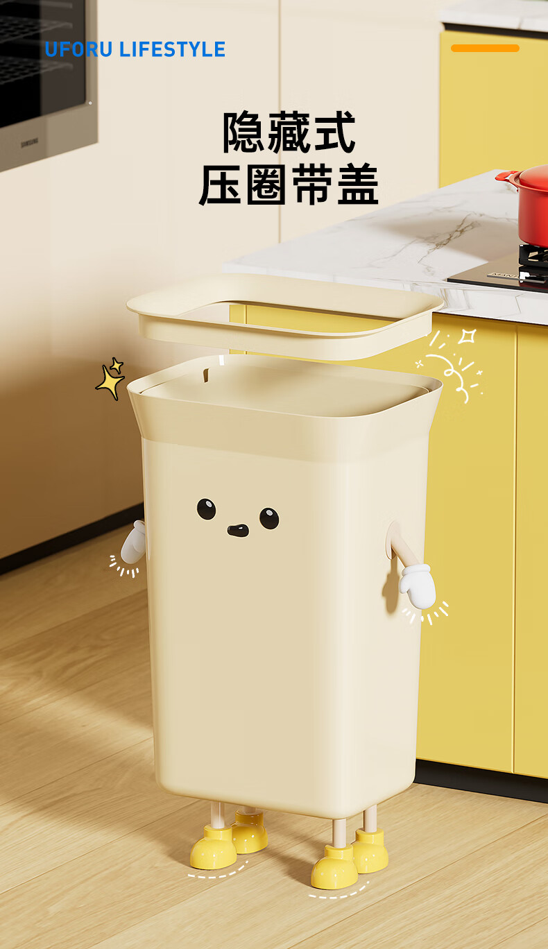 Cabinet star kitchen trash can special household large capacity extra large size living room commercial kitchen waste without bending high value creative creative IP cream white 35L pressure ring type