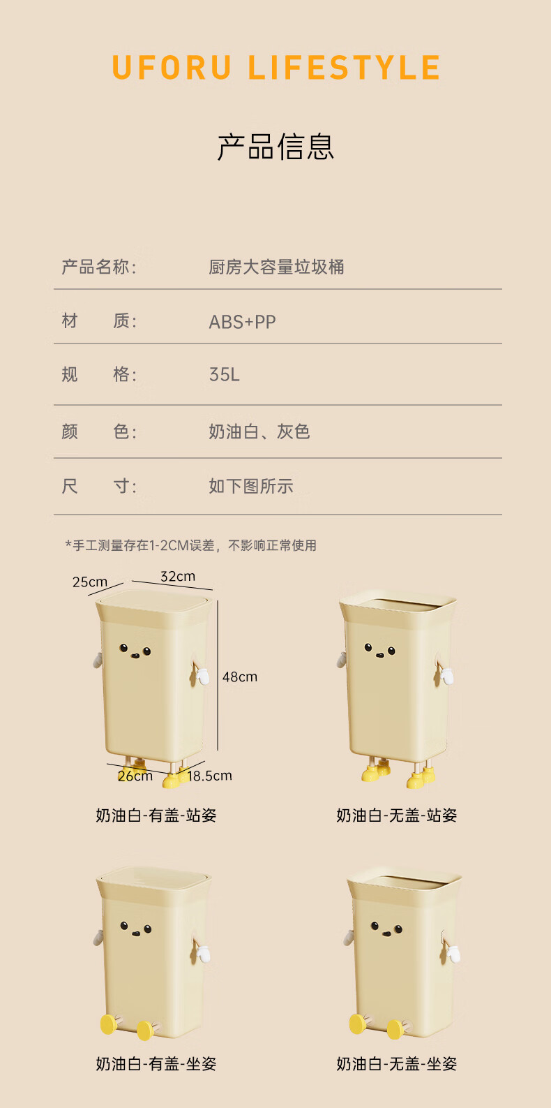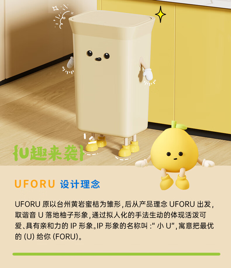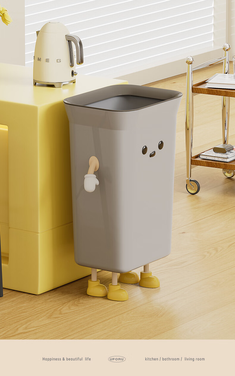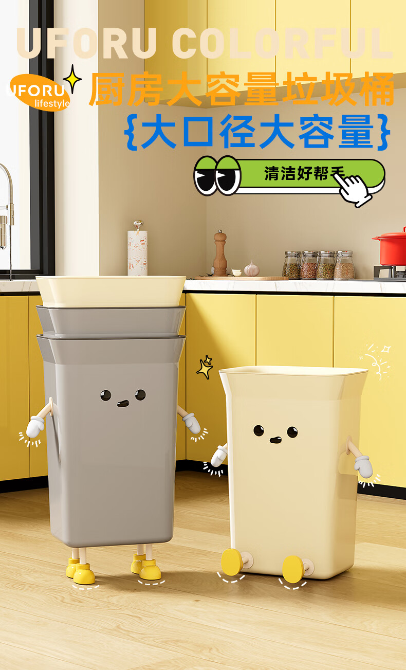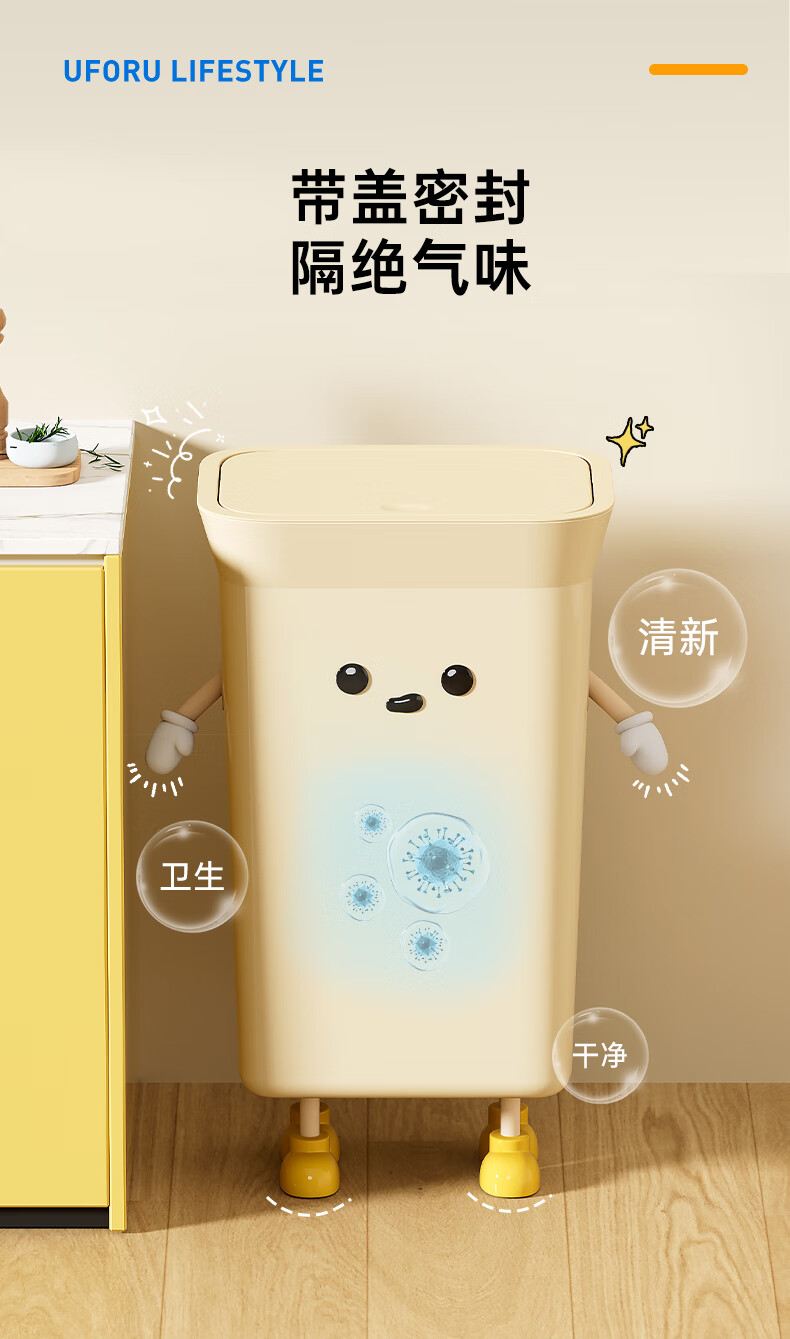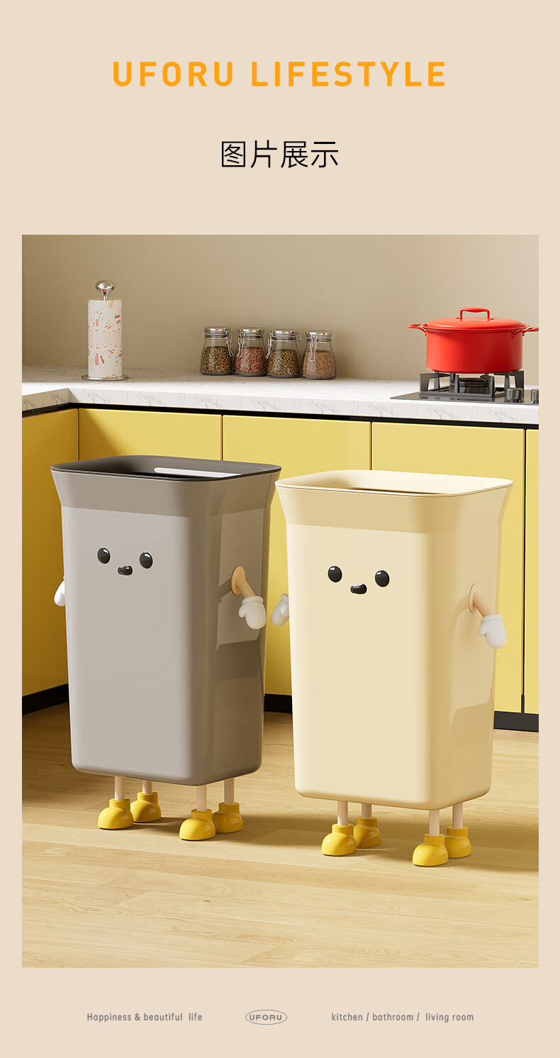 Cabinet star kitchen trash can special household large capacity extra large size living room commercial kitchen waste without bending high value creative creative IP cream white 35L pressure ring type