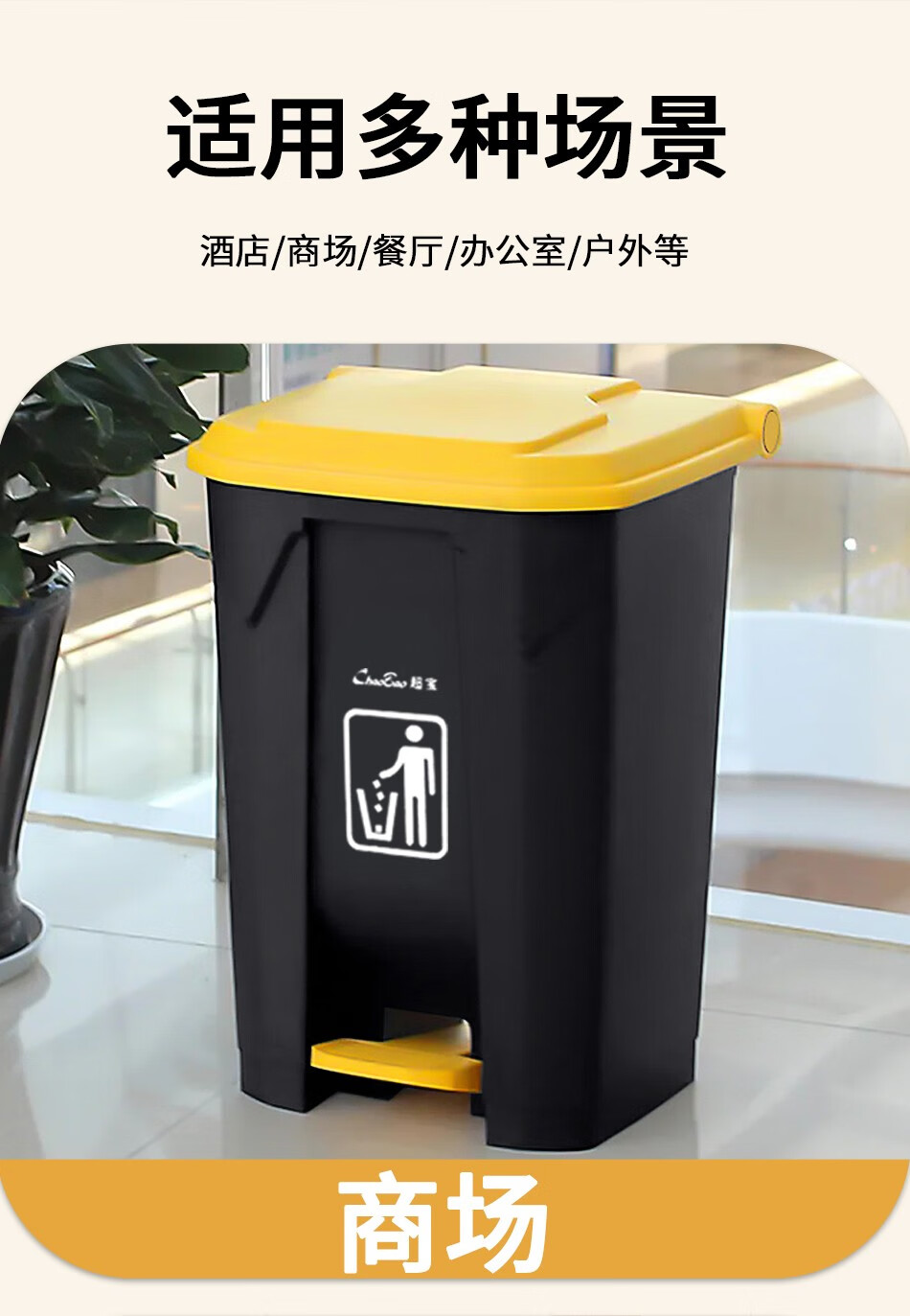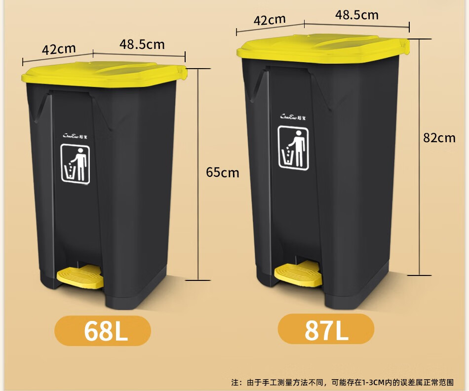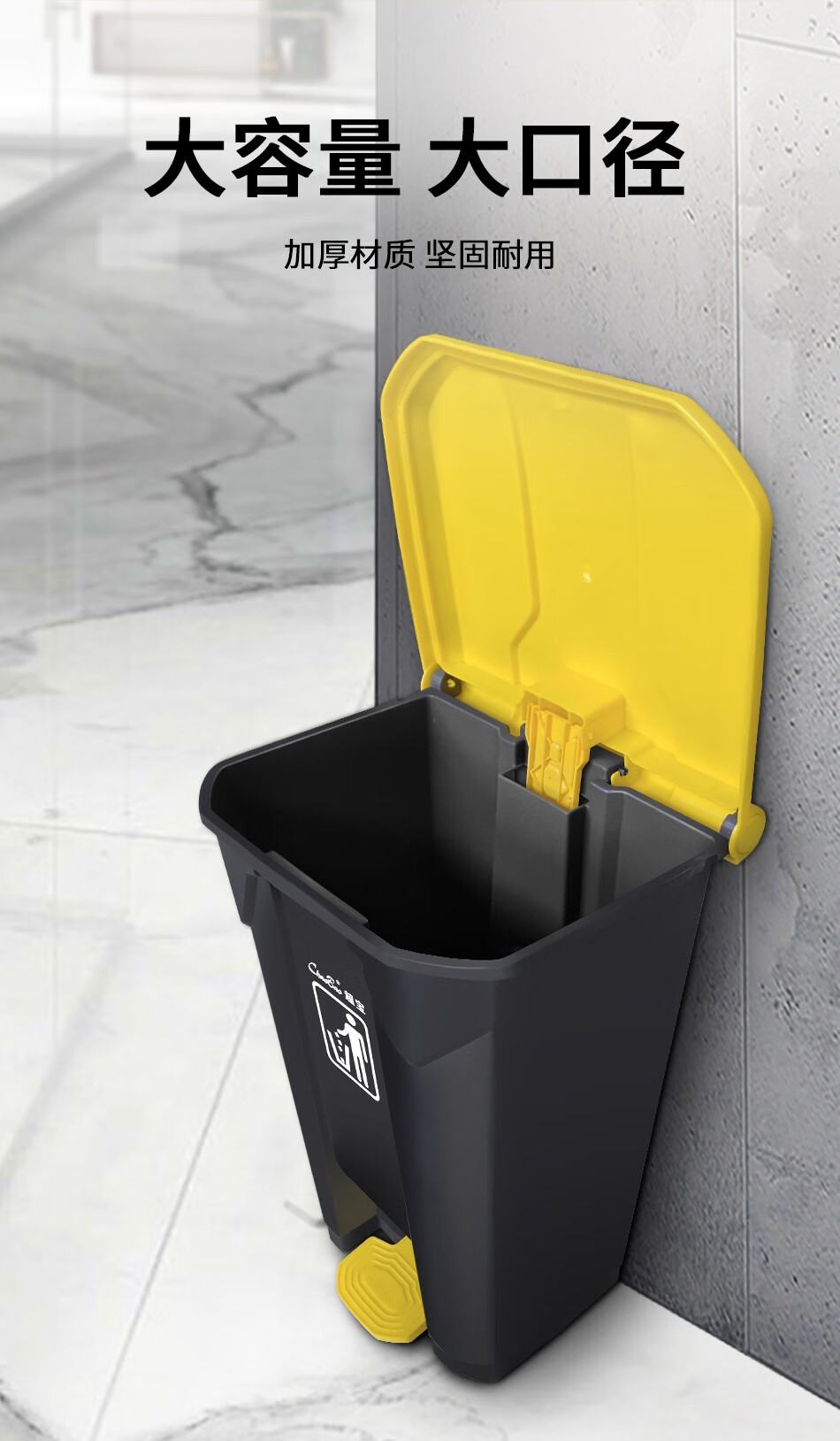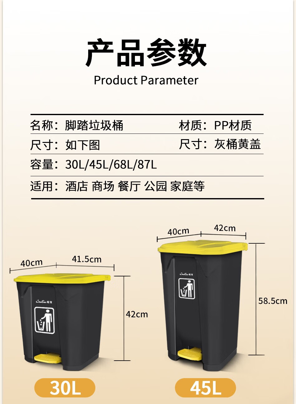 Baiyun Chaobao Clean B2-010 Yellow Gray Medical Waste Pedal Trash Can 45L Commercial Large Indoor and Outdoor Thickened Trash Can Property Shopping Mall Plastic Sanitary Trash Bin with Cover 30L Pedal Trash Can Yellow + Gray