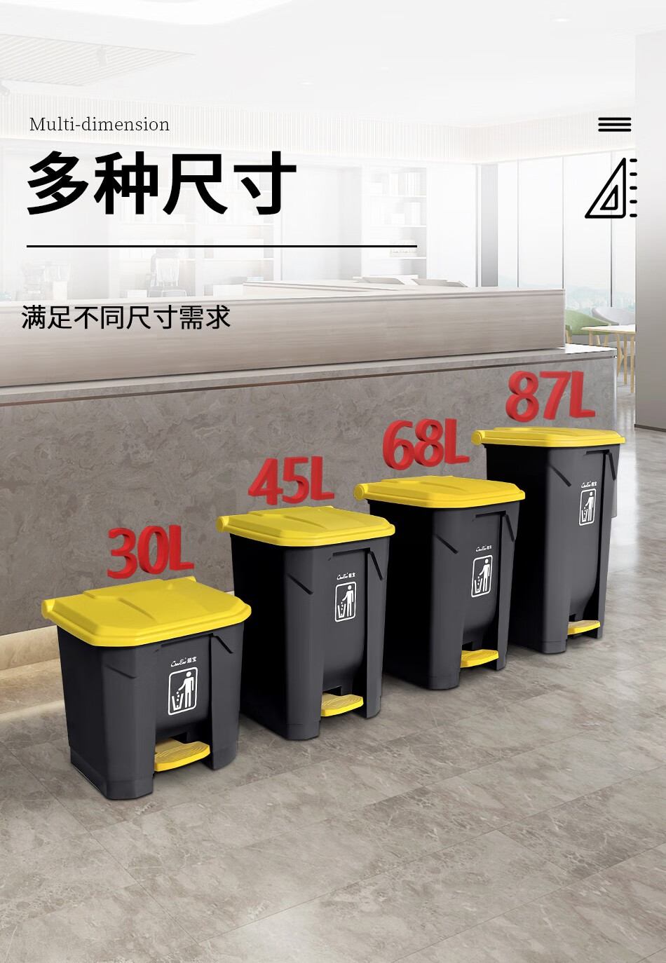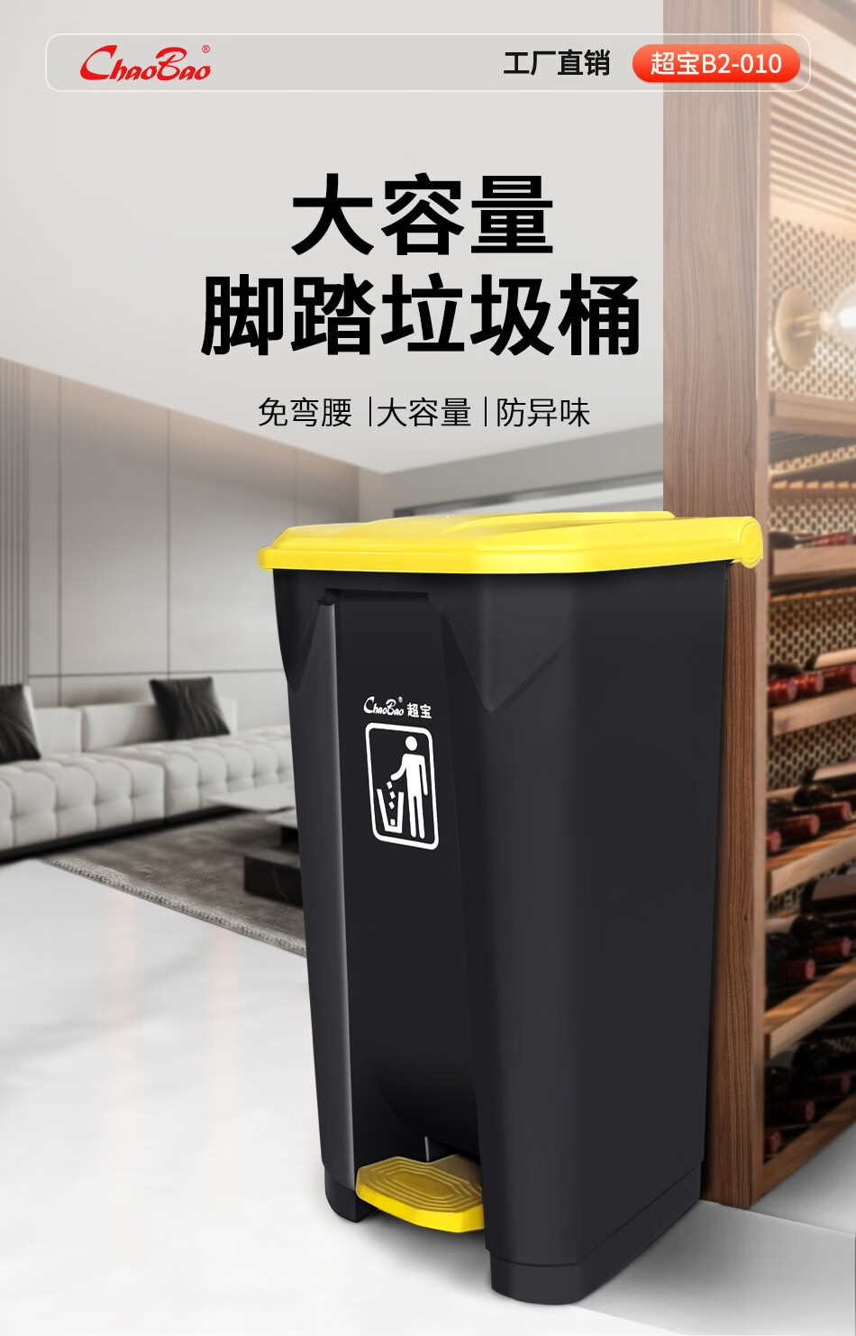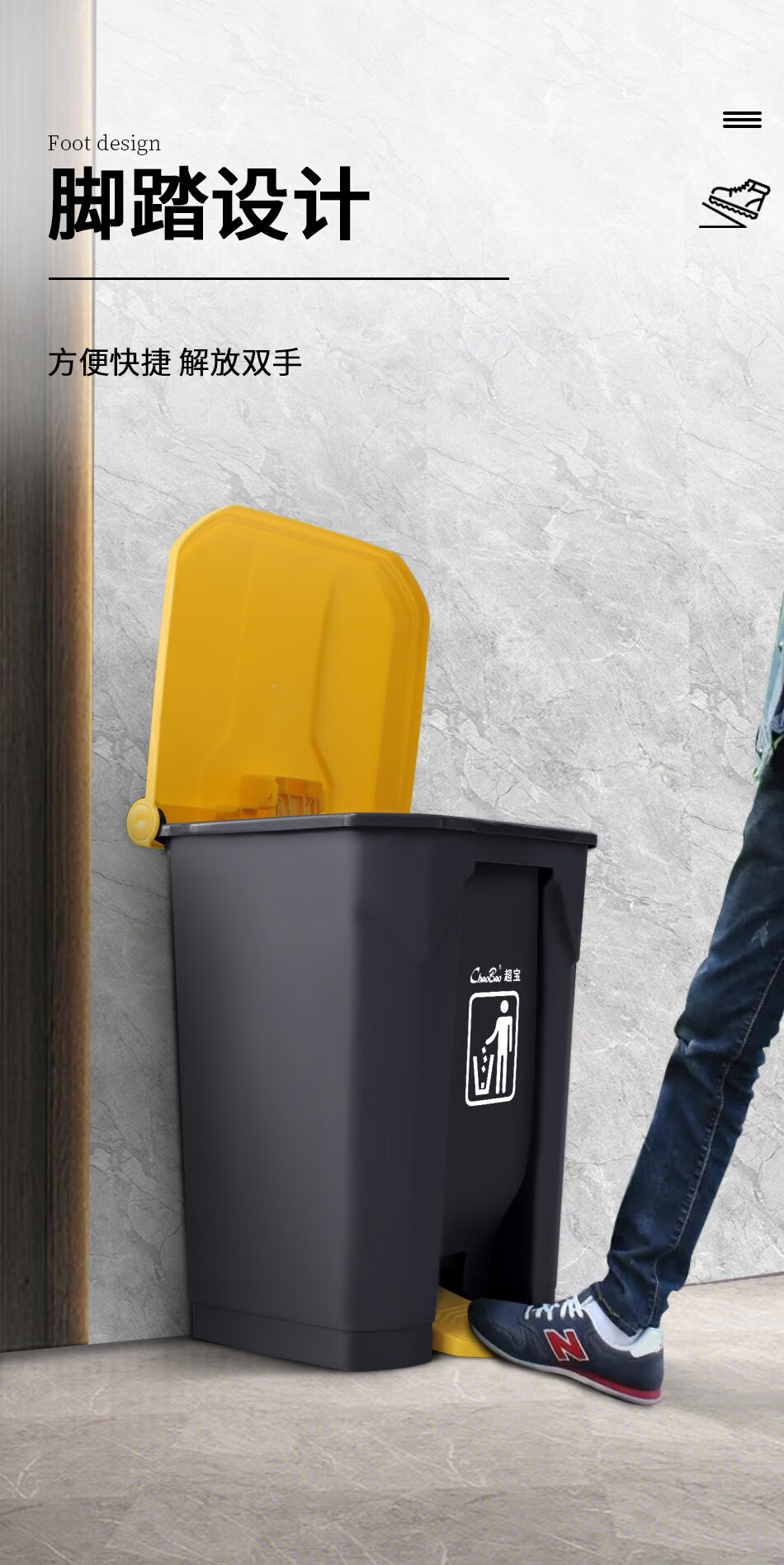 Baiyun Chaobao Clean B2-010 Yellow Gray Medical Waste Pedal Trash Can 45L Commercial Large Indoor and Outdoor Thickened Trash Can Property Shopping Mall Plastic Sanitary Trash Bin with Cover 30L Pedal Trash Can Yellow + Gray