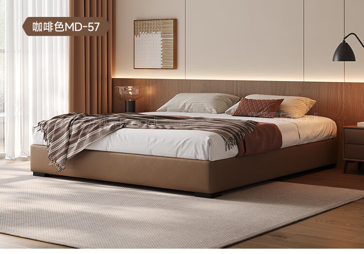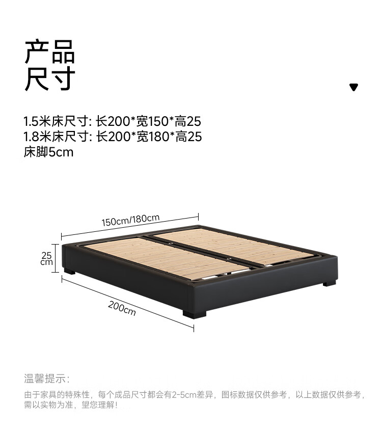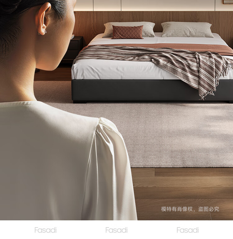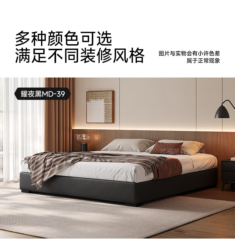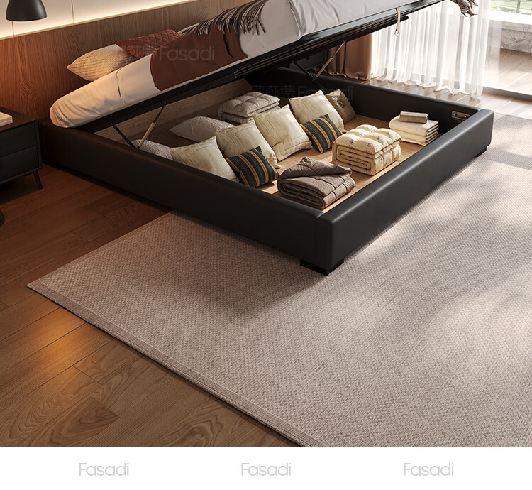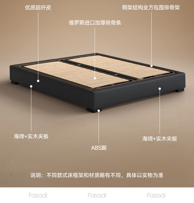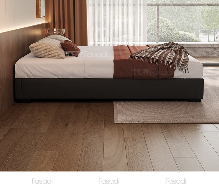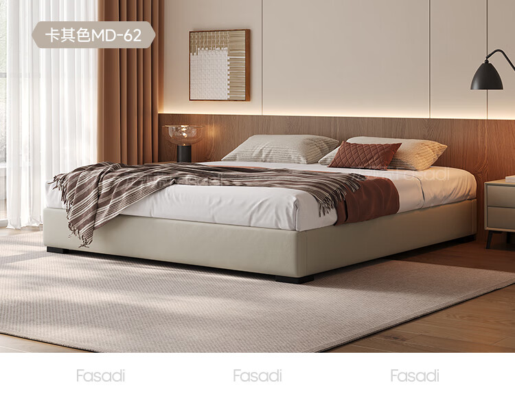 Fasati no bedside master bedroom small apartment floor-standing Italian minimalist leather bed light luxury modern simple backless bed single bed + coconut palm mattress + single cabinet (flagship version 20cm ribbed frame) 1.8*2m frame structure