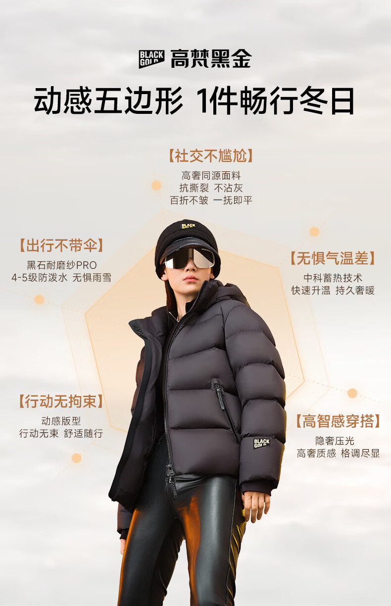Govan Black Gold Goose Down Jacket Function 4.0 Five Grid Unisex Short Puff Down Jacket Winter Jacket Couture Knight Black S
