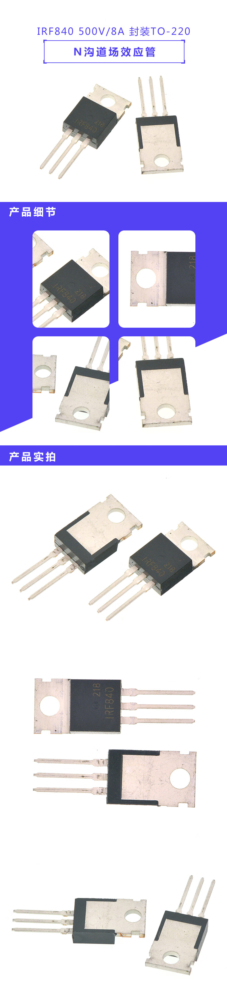 TaoTimeClub N-channel field effect transistor IRF840 8A/500V TO-220 No specifications No specifications