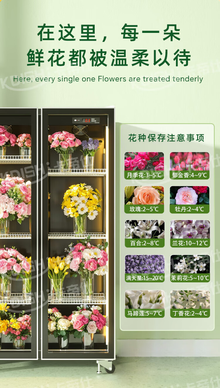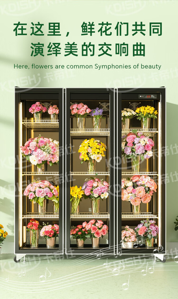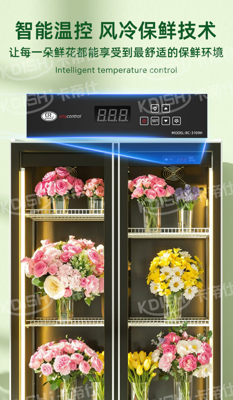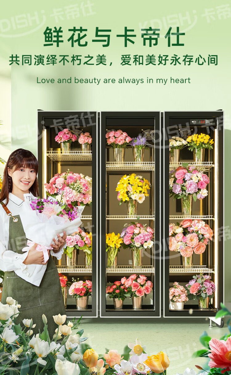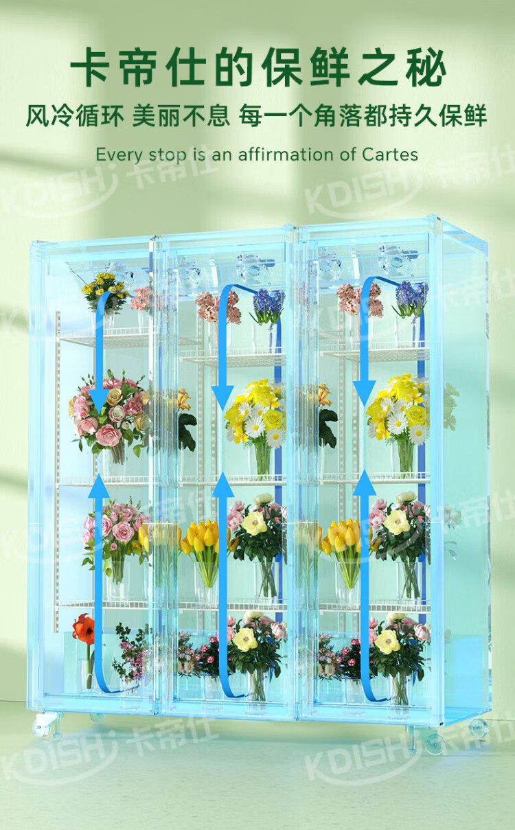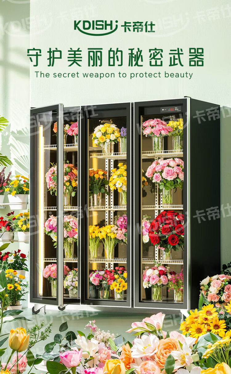 Kadis flower fresh cabinet commercial large-capacity air-cooled flower cabinet fresh-keeping refrigerator flower freezer flower refrigerated fresh-keeping cabinet flower freezer display cabinet air-cooled and frost-free high-end model oversized three-door no drainage required three-light switching
