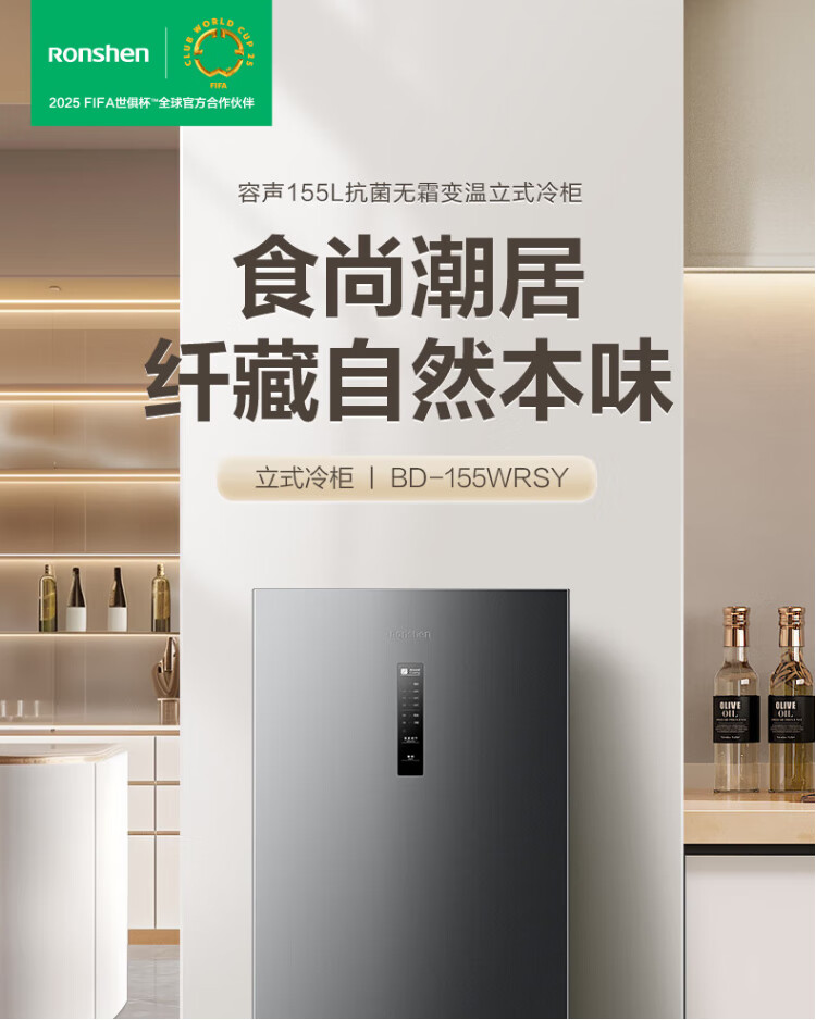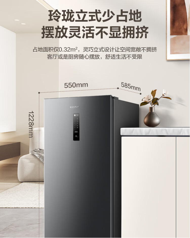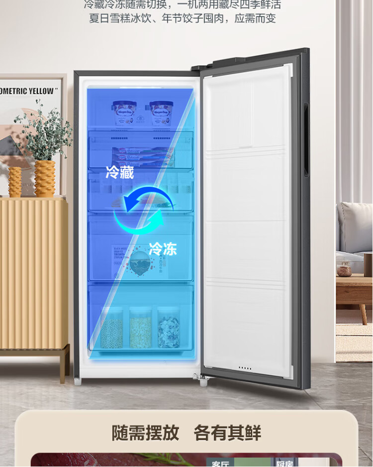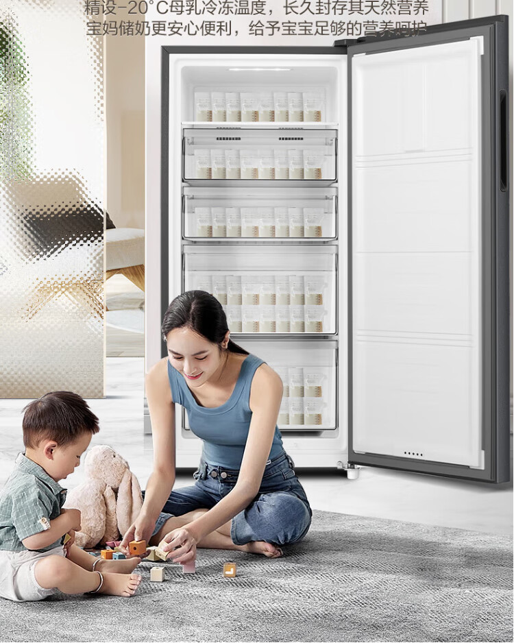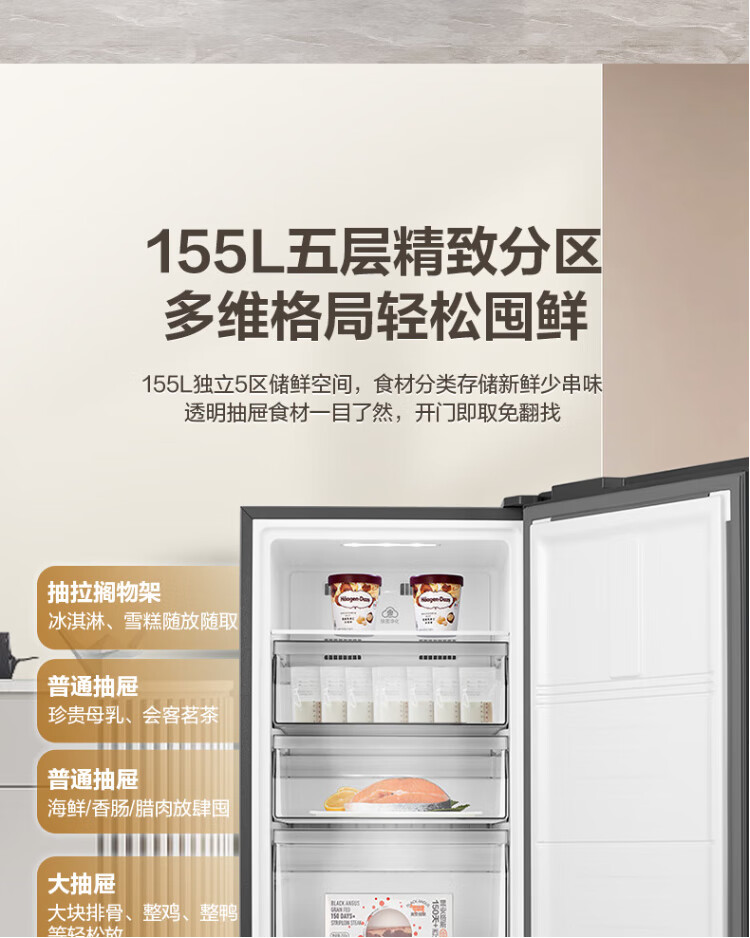 Rongsheng 155L air-cooled frost-free vertical freezer household first-class energy efficiency computer temperature-controlled refrigeration freezer drawer-type freezer stocking small refrigerator BD-155WRSY trade-in 155L