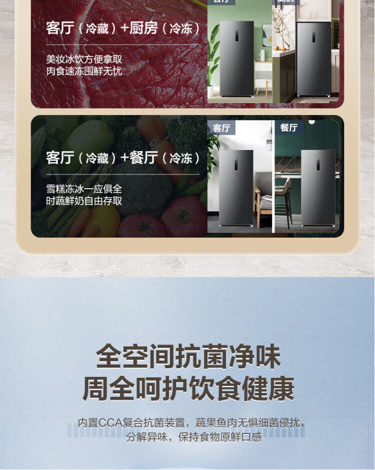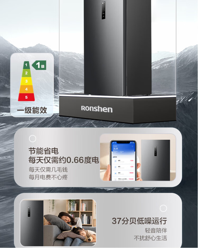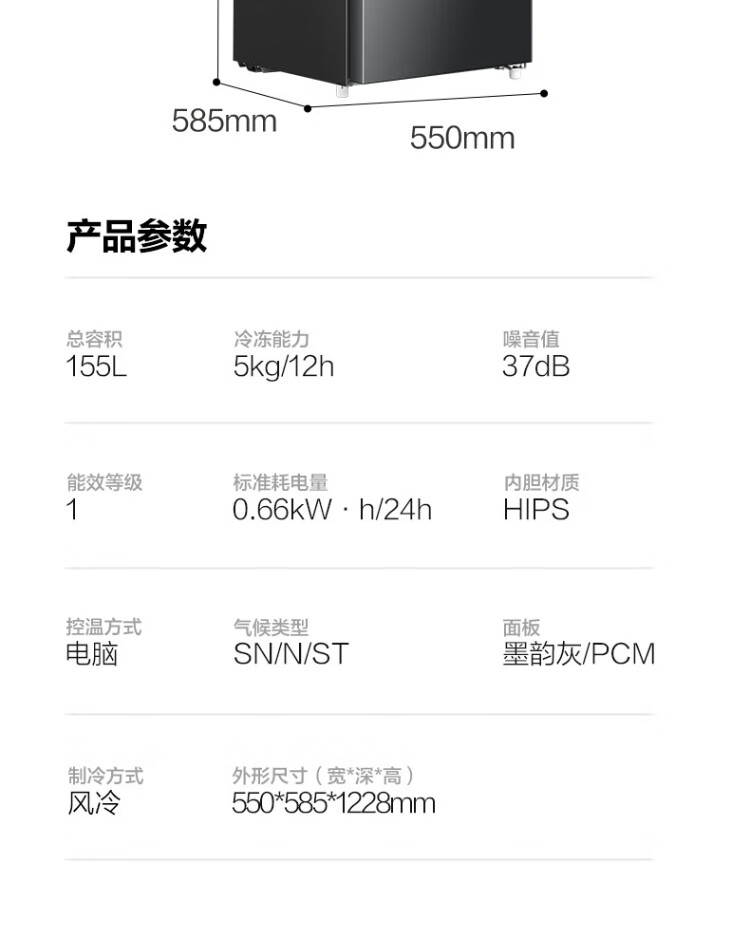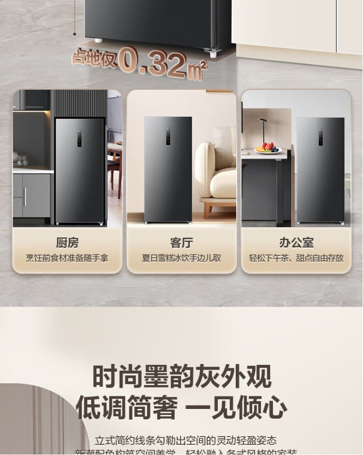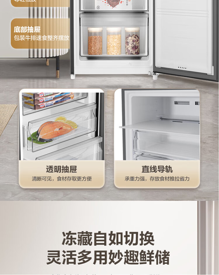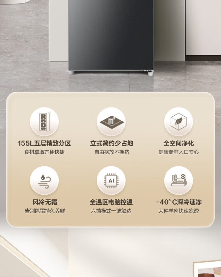 Rongsheng 155L air-cooled frost-free vertical freezer household first-class energy efficiency computer temperature-controlled refrigeration freezer drawer-type freezer stocking small refrigerator BD-155WRSY trade-in 155L