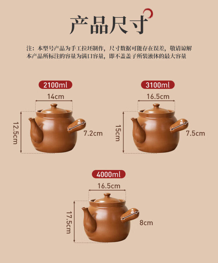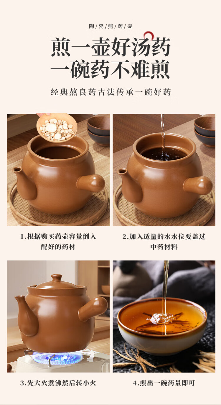Quanpinwu Chinese medicine pot decoction pot casserole Chinese medicine old-fashioned uncoated household special open flame ceramic medicine jar for boiling medicine suitable for 600g medicinal materials 4L high temperature anti-crack丨Damage reissue