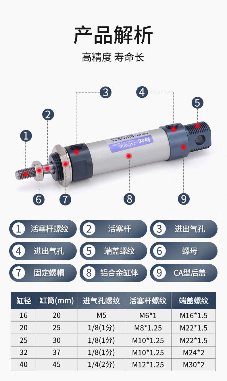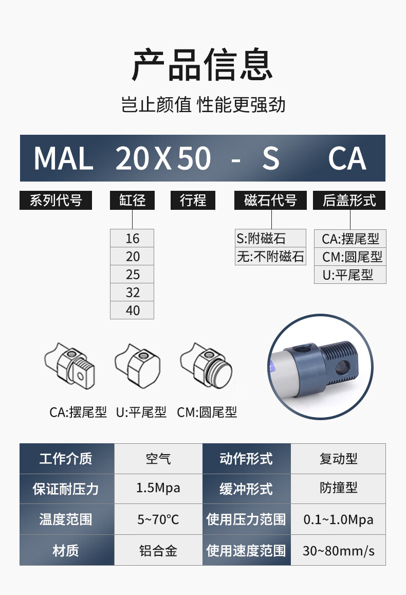 JINGGONG MAL aluminum alloy mini cylinder small pneumatic 20/25/32/40x25x50x75x100x200x300 MAL16*25