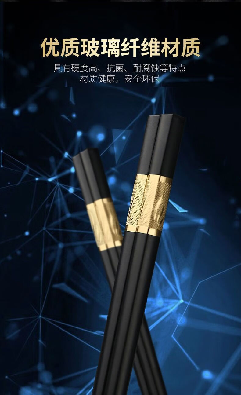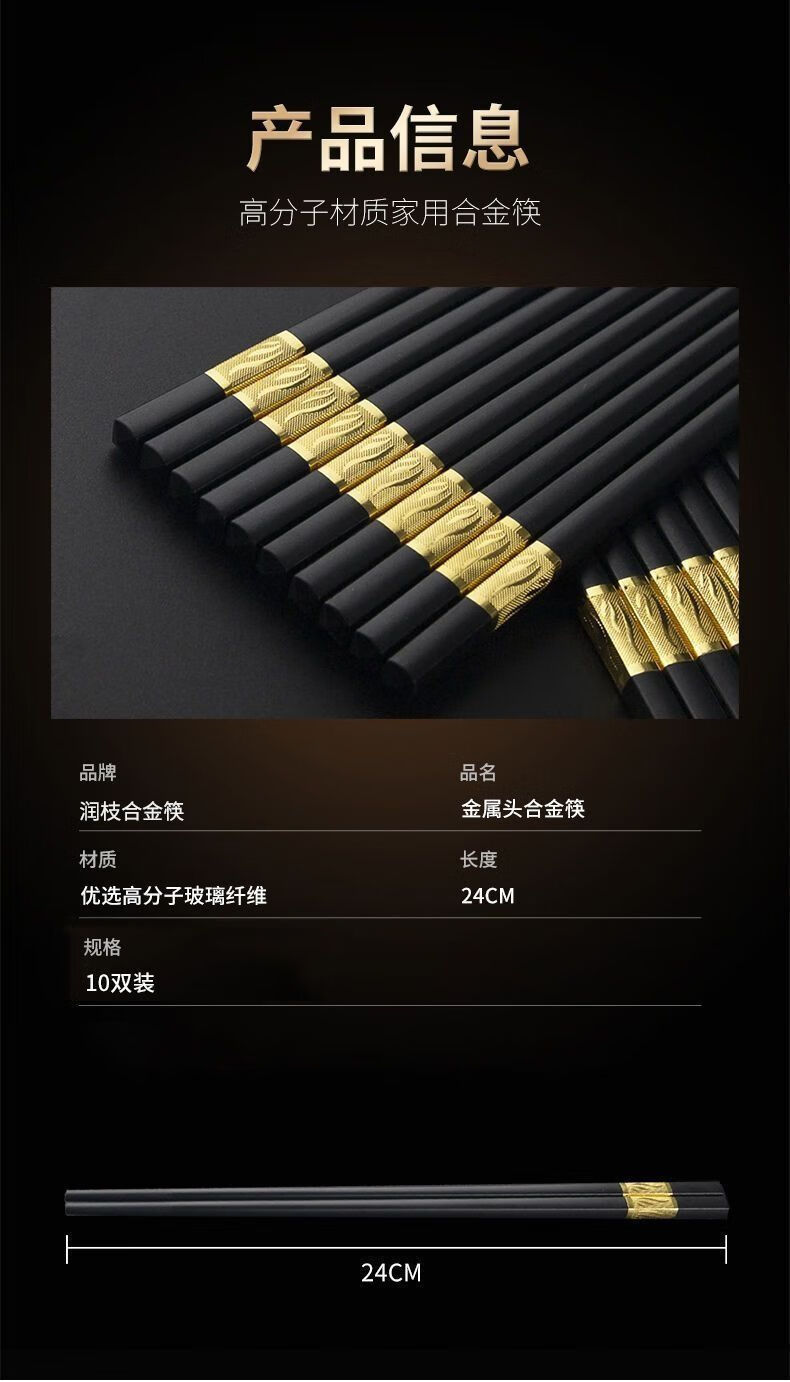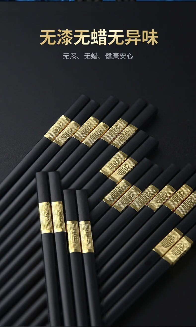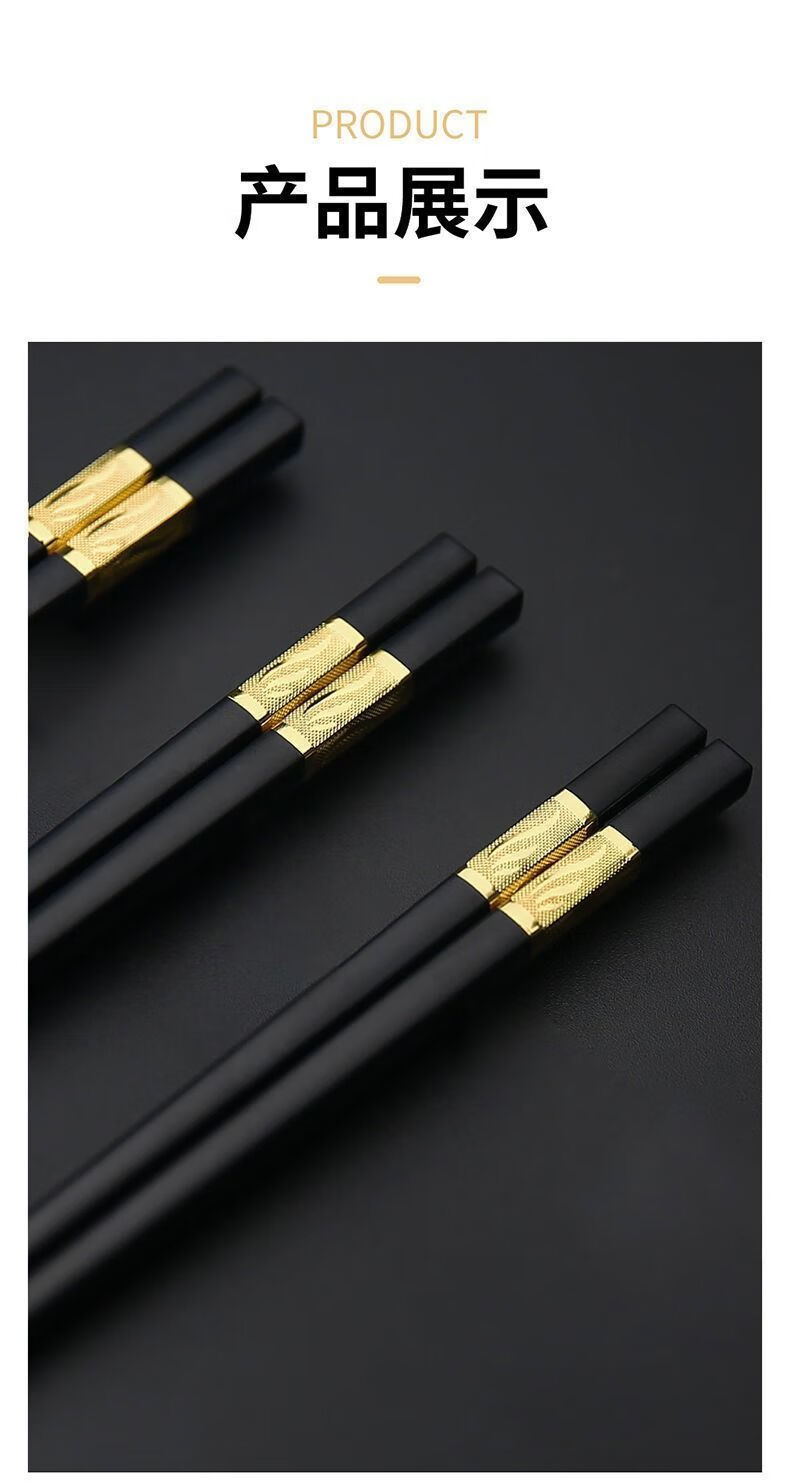 High temperature resistant and non-mouldy chopsticks for home use, mildew-proof, anti-slip, paint-free alloy, high temperature resistance, new style family pack, gold, three-leaf, 10 pairs, 20 pieces