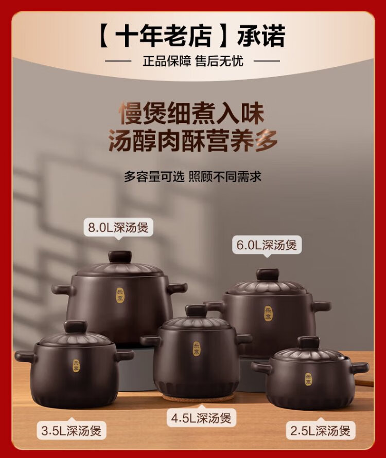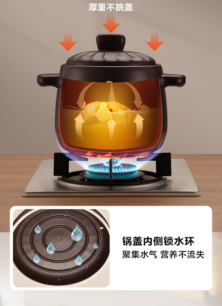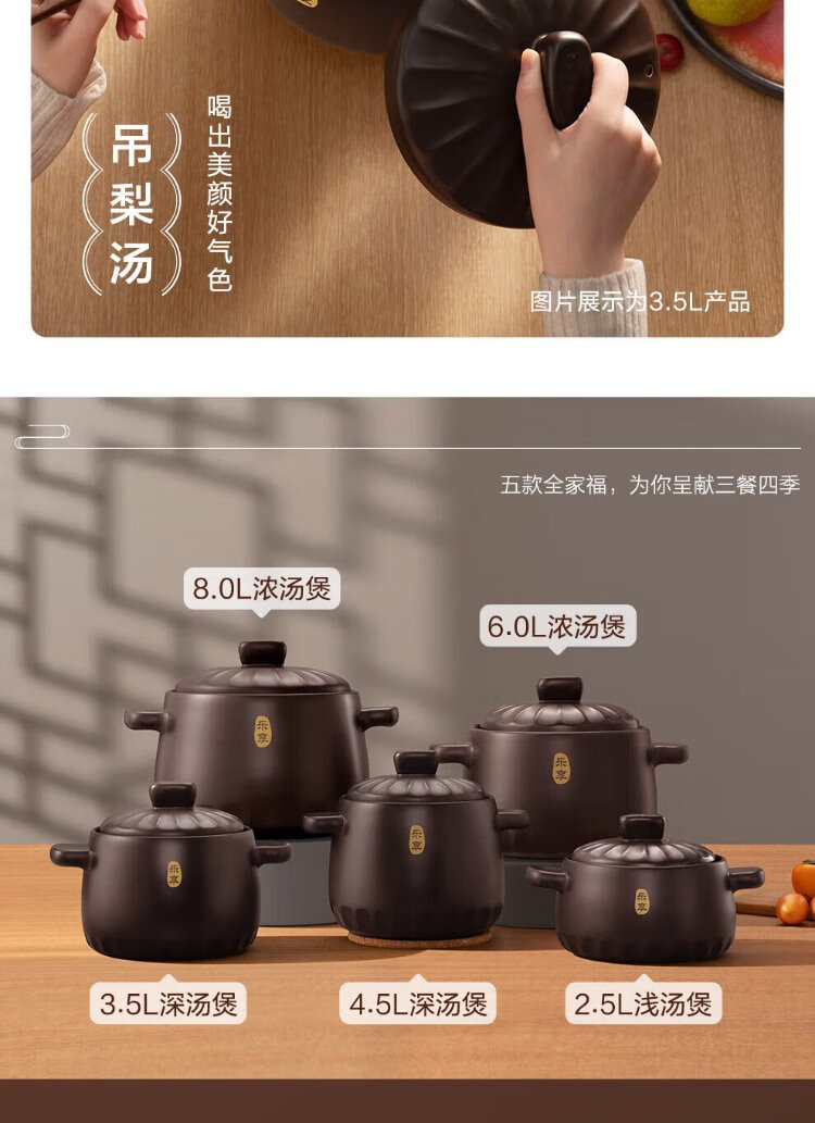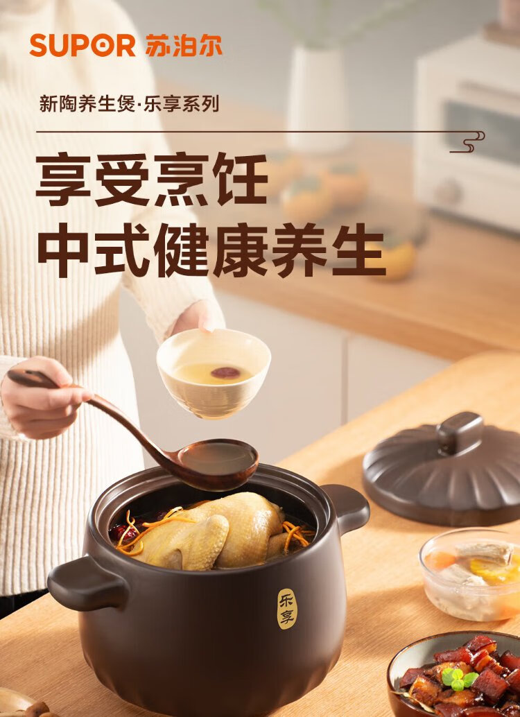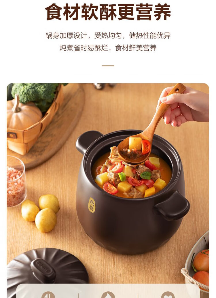 SUPOR ceramic casserole pot for stew and soup, large capacity ceramic pot for cooking porridge and rice, special for gas, suitable for 5-8 people丨 6L