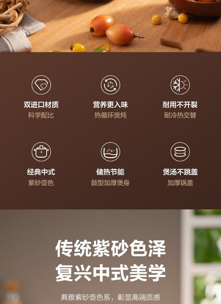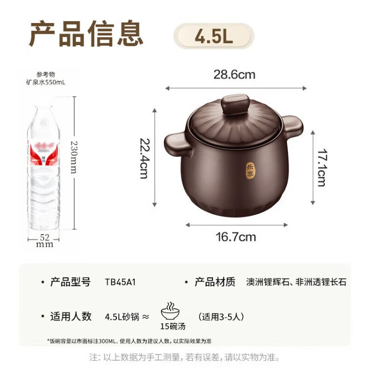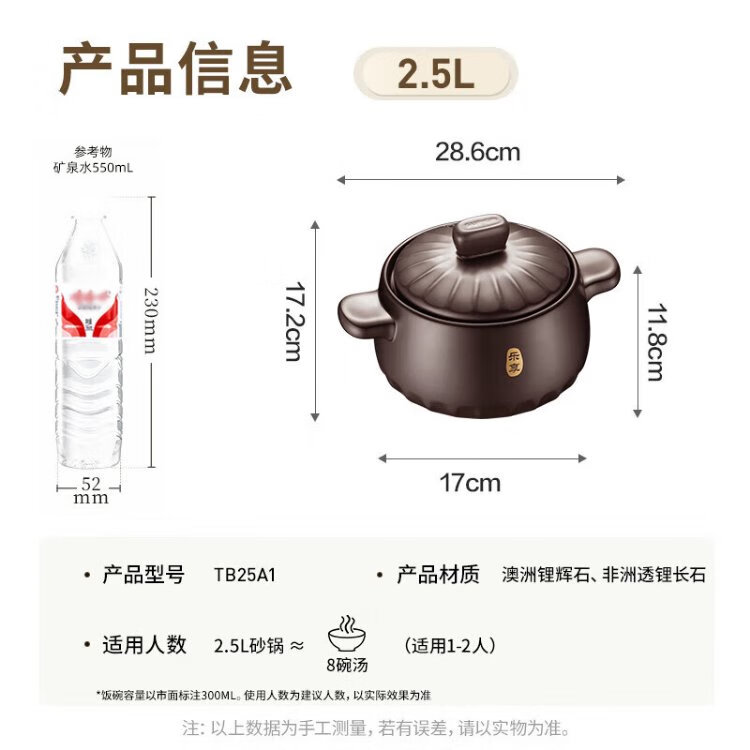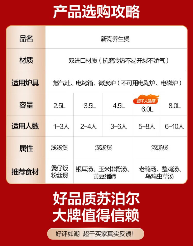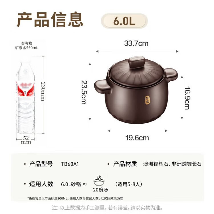 SUPOR ceramic casserole pot for stew and soup, large capacity ceramic pot for cooking porridge and rice, special for gas, suitable for 5-8 people丨 6L
