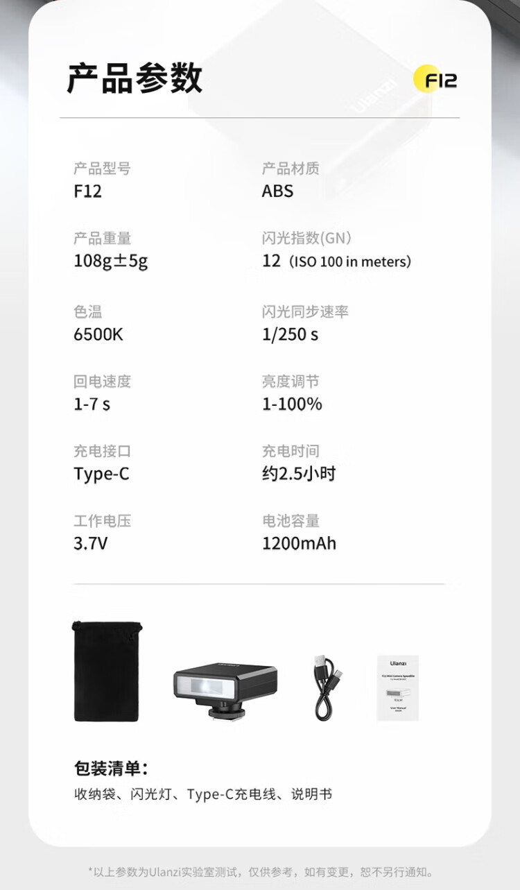 Ulanzi Ulanzi F12 hot shoe camera flash compatible with Canon Nikon Sony Fuji Panasonic SLR mirrorless camera universal external mini portable hot shoe light white F12 hot shoe flash