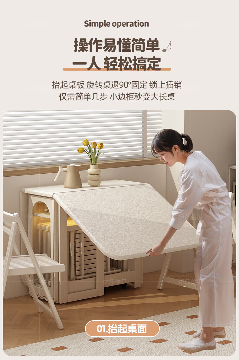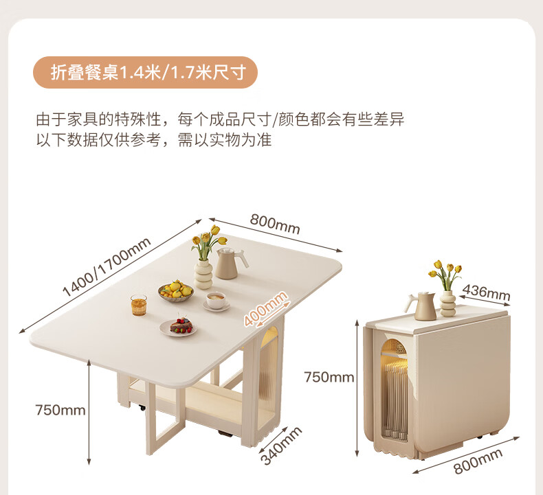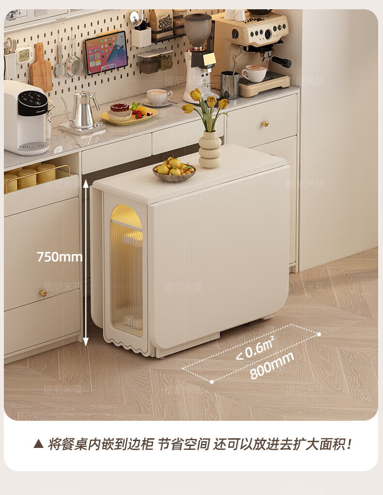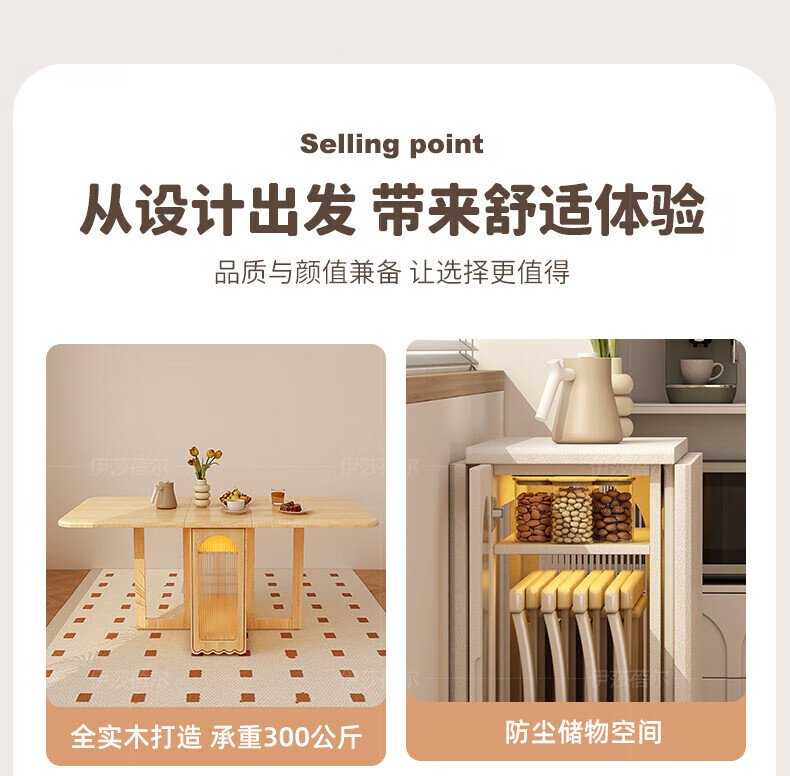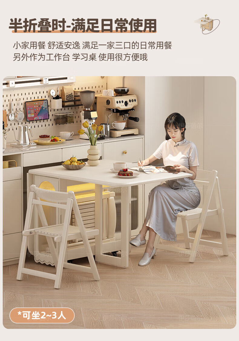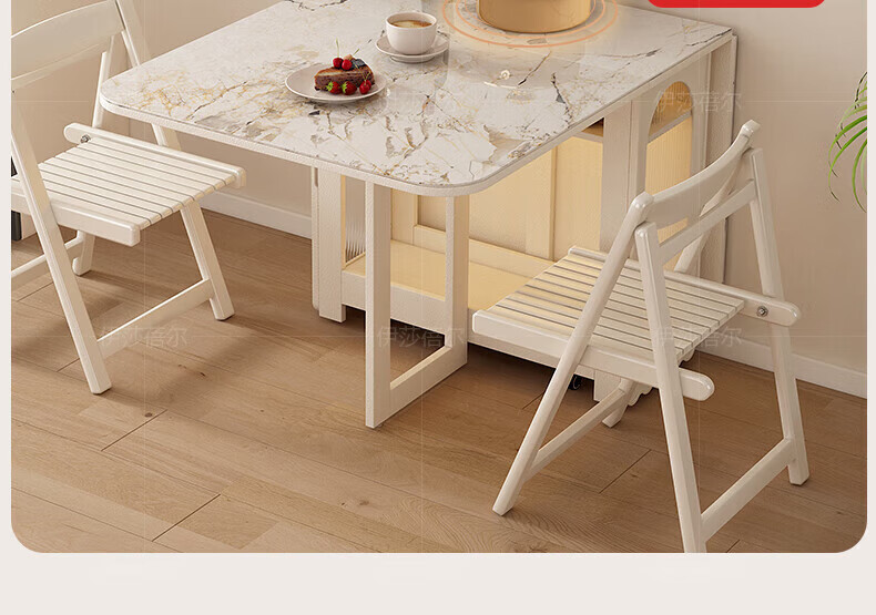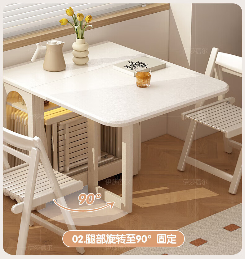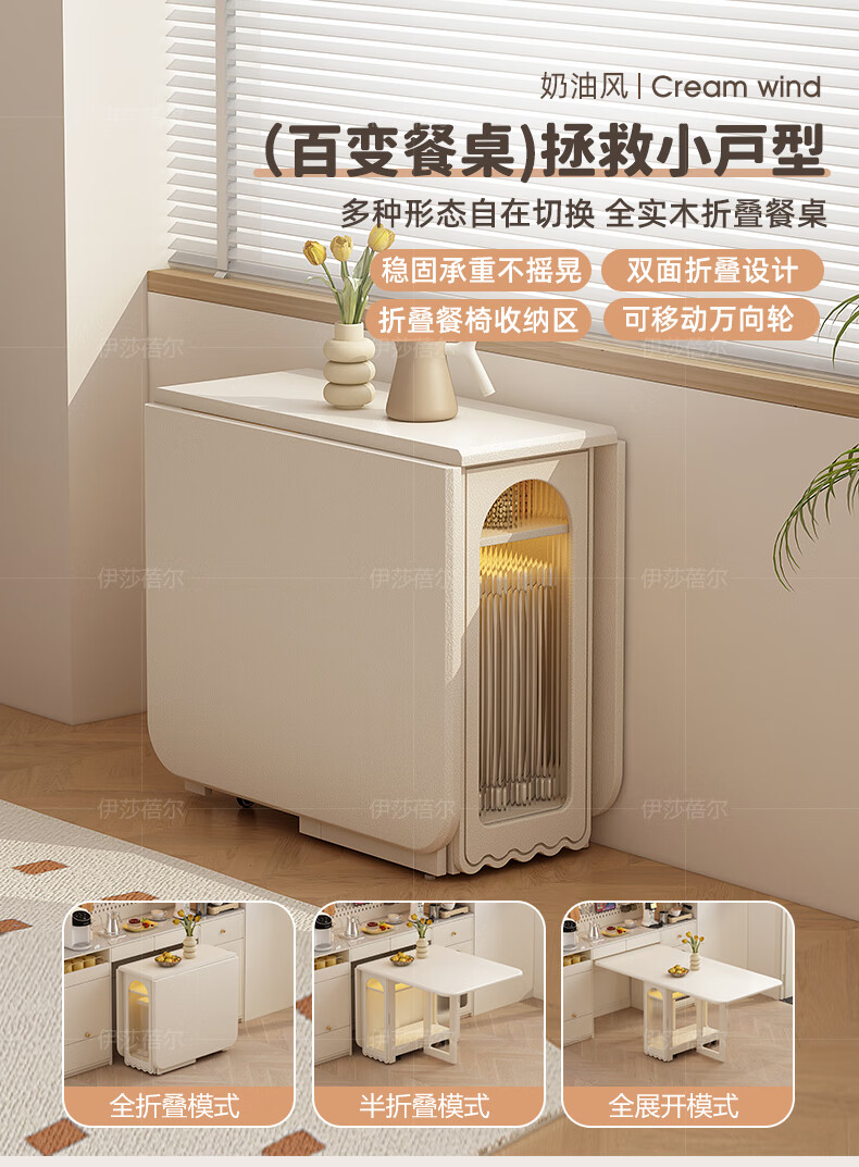Isabel white solid wood folding dining table integrated sideboard small apartment cream style retractable dining table multifunctional removable 1.2m all solid wood dining table