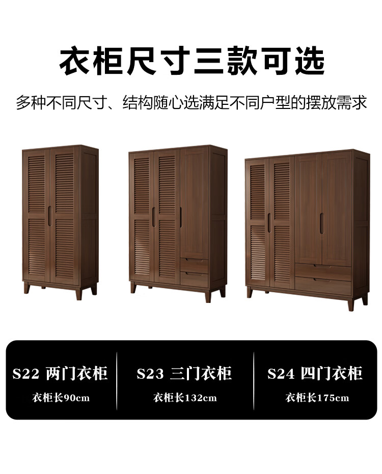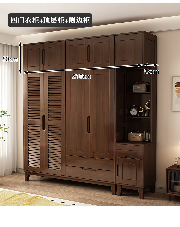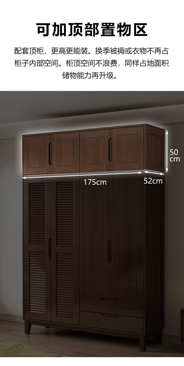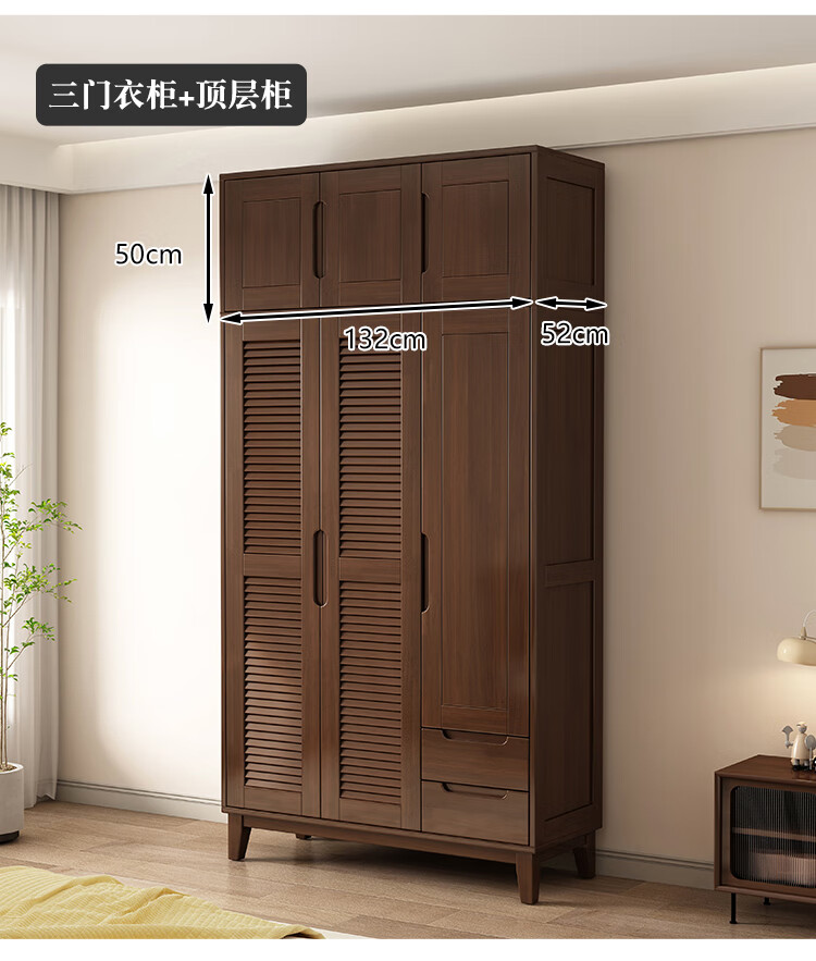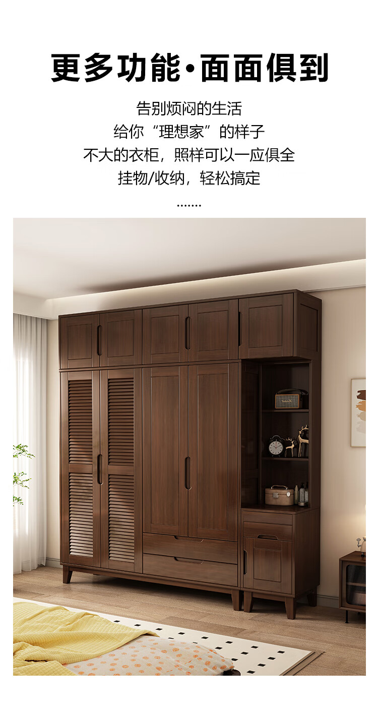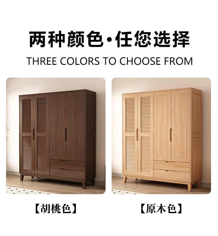 Siguyuan Nordic all solid wood wardrobe hundred-page grille can add top cabinets home bedroom simple two or three doors with drawer storage wardrobe walnut color all solid wood four door wardrobe delivery to home package installation