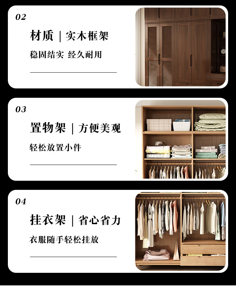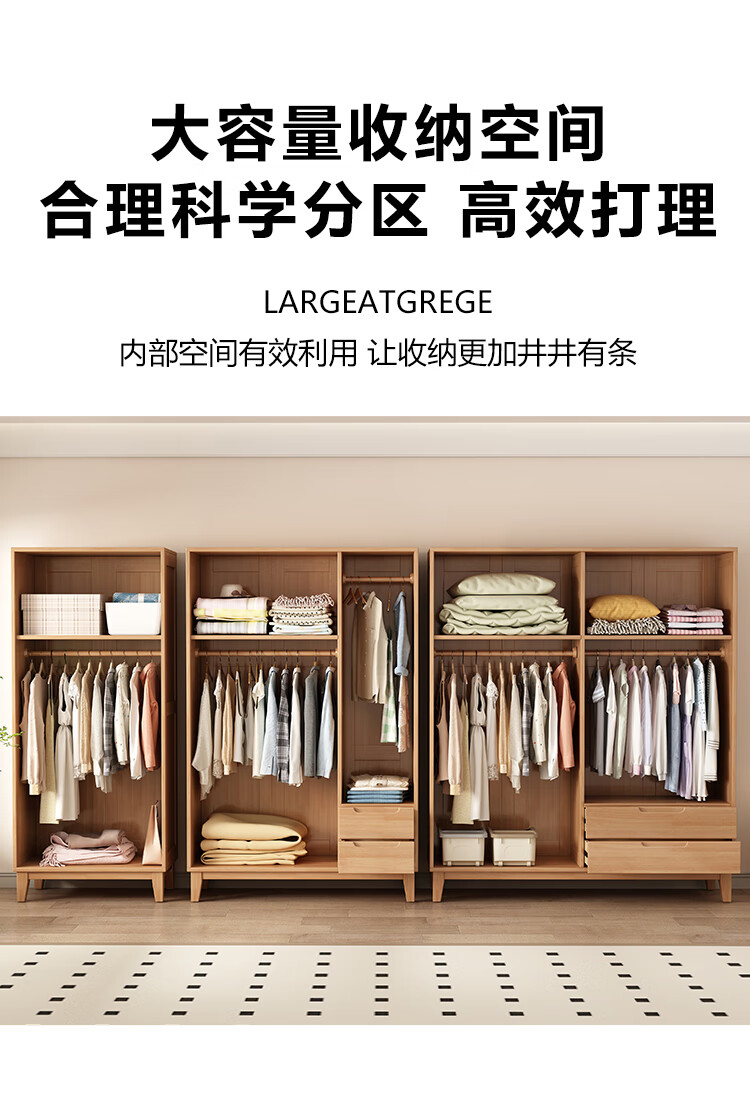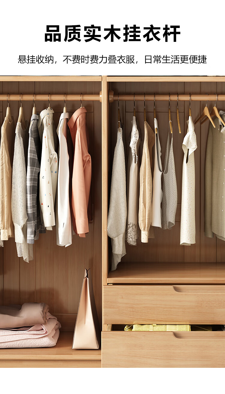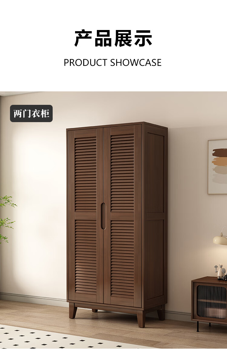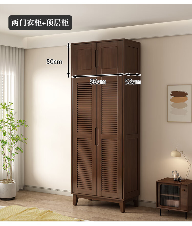 Siguyuan Nordic all solid wood wardrobe hundred-page grille can add top cabinets home bedroom simple two or three doors with drawer storage wardrobe walnut color all solid wood four door wardrobe delivery to home package installation